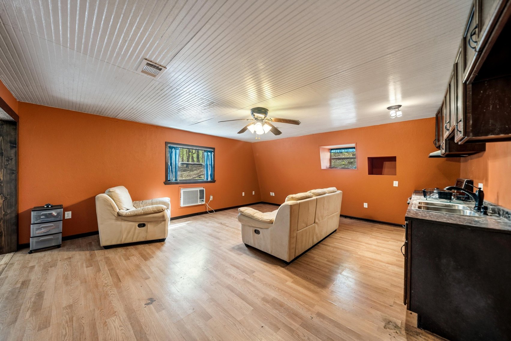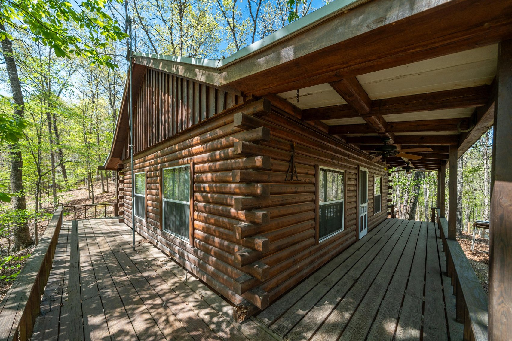 REAL ESTATE DESCRIPTION: If you are Looking for a Secluded Getaway in the Ozark Mountains, this is it! ~ This Property Offers a Surveyed 35± Acres and Two Separate, 2 Bedroom/ 1 Bath Dwellings ~ The Log Cabin was Constructed in 1997 with 864± Sq. Ft. and Offers an Open Kitchen/Living Area, Bathroom/Laundry Room, Wood Floors, and 3/4 Surround Porch to take in the Wonderful Ozark Mountain Views ~ There is a Separate Bedroom Access Down the Exterior Stairs as well as a Storm Cellar ~ The Second Dwelling is a 1,020± Sq. Ft. Metal Home Built in 2012 with a Full Kitchen and Dining Room, 2 Bedrooms and a Full Bath and Laundry Room ~ Fully Enclosed Shop has Lots of Storage and Work Bench Space ~ 30 Ft. Carport Area for Gatherings & Parking Extra Equipment ~ This Property Offers Rural Water & Electric Service, Gated Access, and a Fenced Area for Animals ~ The Cabin Offers Seclusion Perfect for a Hunting Cabin, Short-Term Rental, or Residence! ~ Remember, this Great Property is Selling ONLINE ONLY through the Wilson Auctioneers Bidding App ~ Offers Made Prior to the Auction Ending Day are Welcome!
