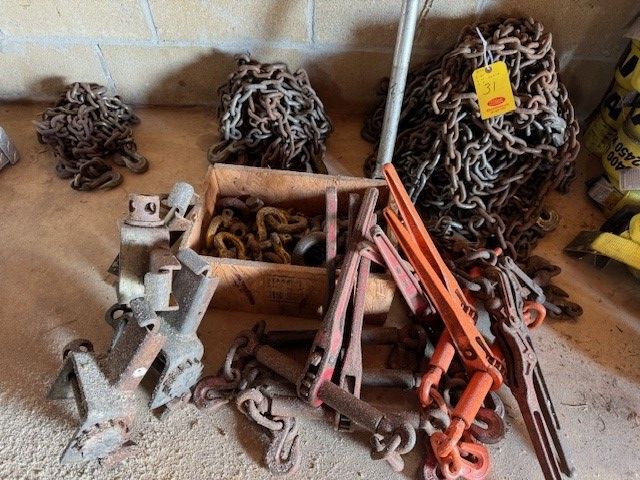31 3/8" chains (8-20'; 4-10'; 4-5'); tie-downs; ratchets