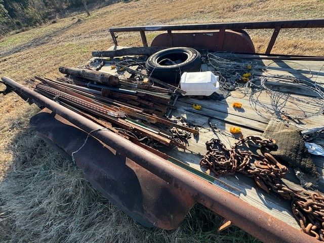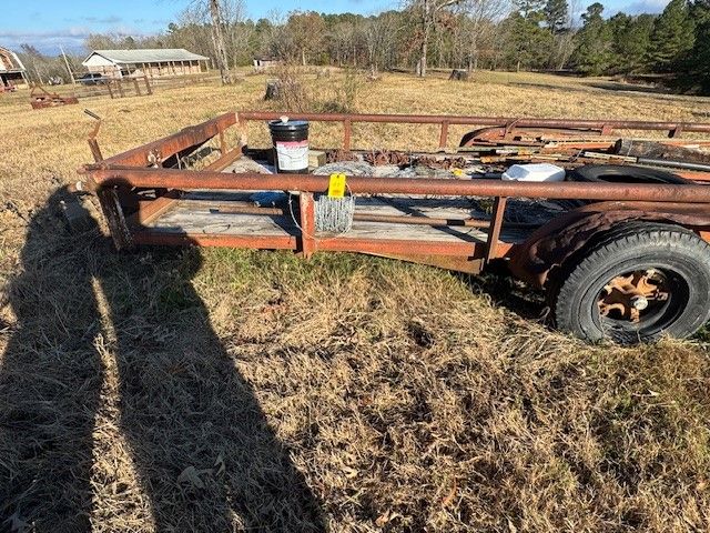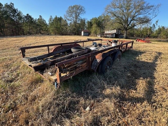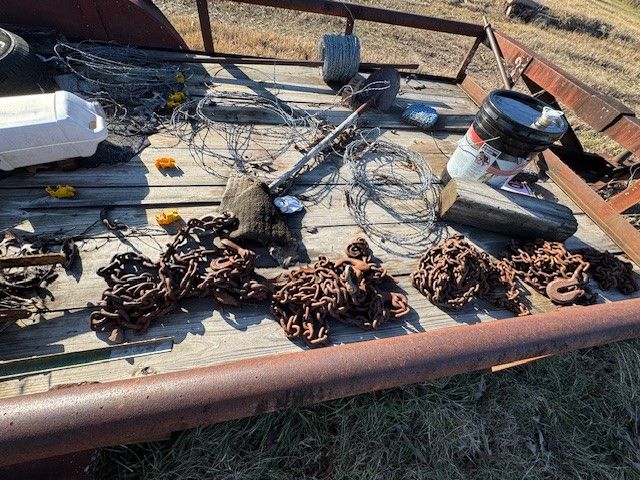 48 16' Tandem Axle trailer (needs tires); t posts; chains; barbed wire