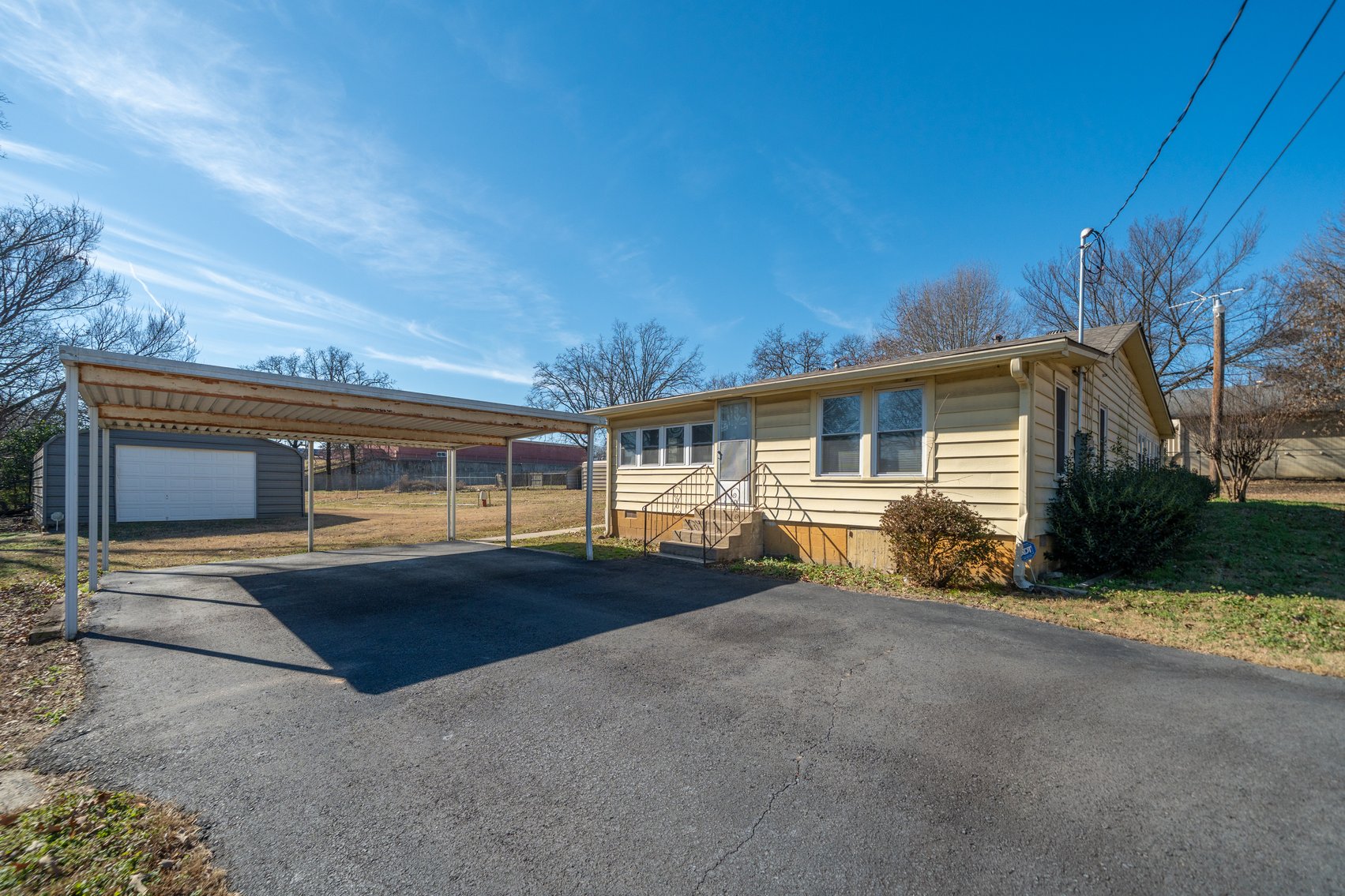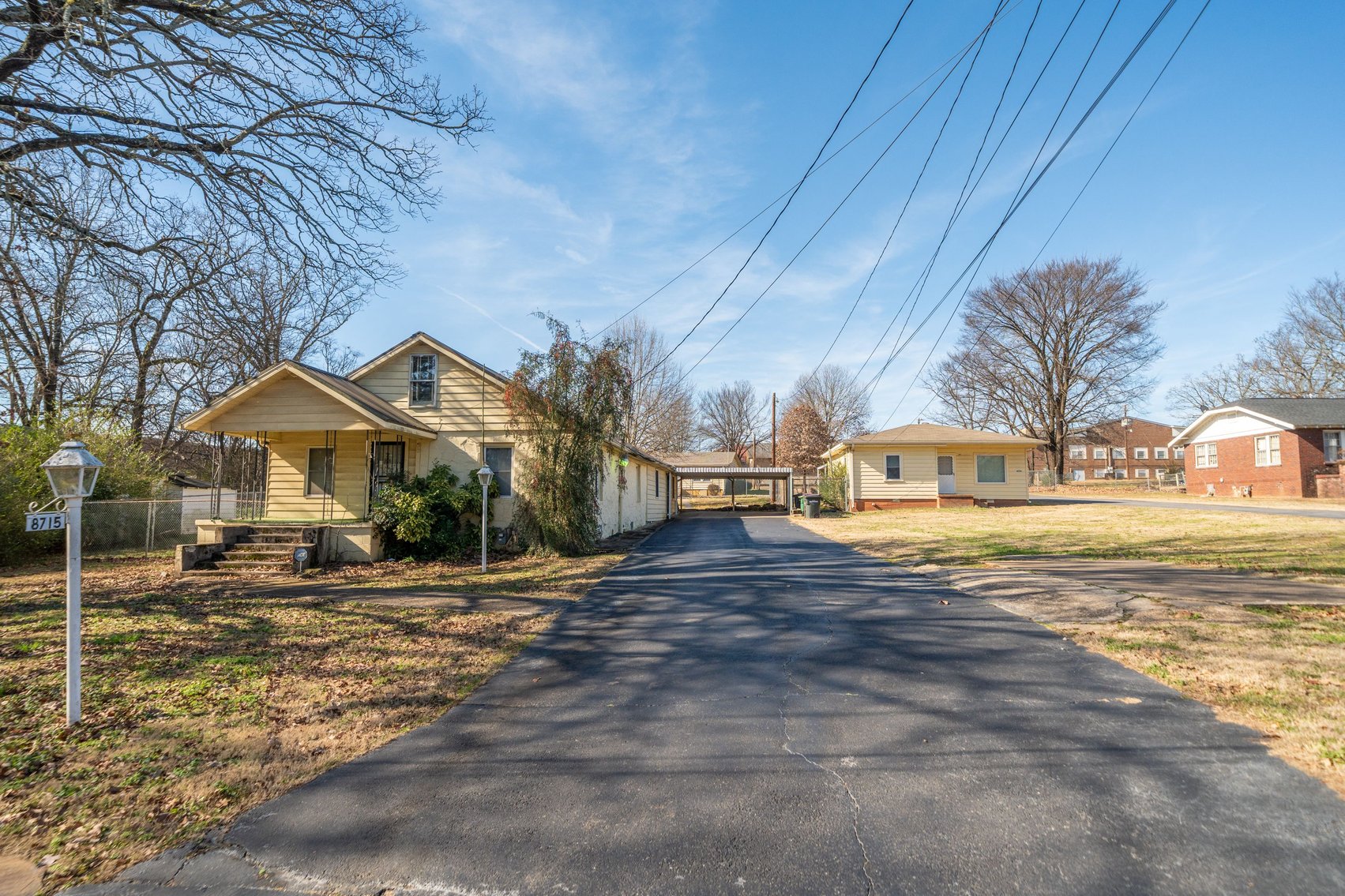 (TRACT 2) 8723 Teetwood Road is a 2 Bedroom/ 1 Bath Home with 822± SF, a 1-Car Carport, a Detached Metal Storage Building & was last Rented for $500.00 Per Month ~ NOTE: If 8723 Teetwood Rd. sells Separately from the other Two Homes an Easement will be Reserved along the Existing Asphalt Driveway for Access to 8715½ Teetwood Rd.