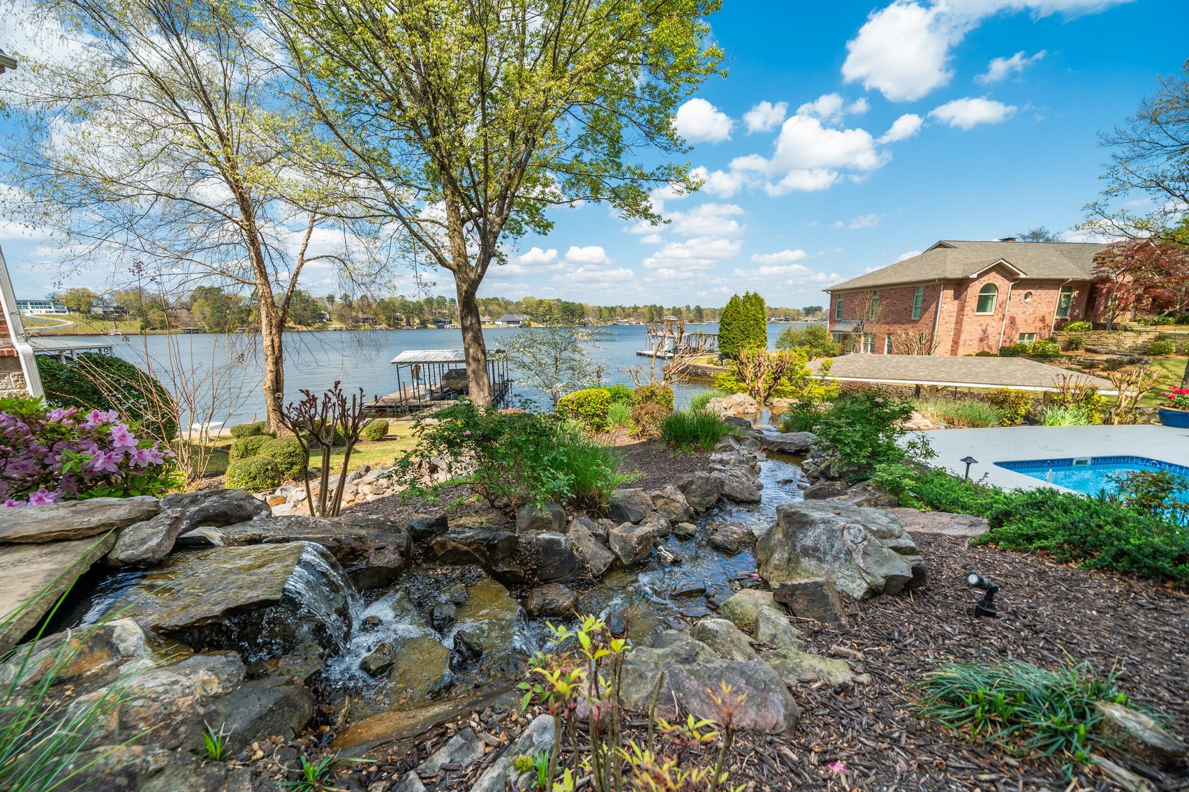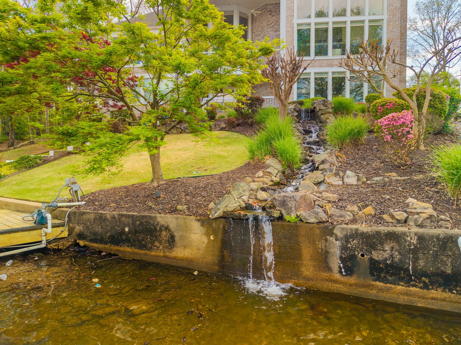 - Lake-Fed Waterfall Water Feature Automatic Sprinkler System