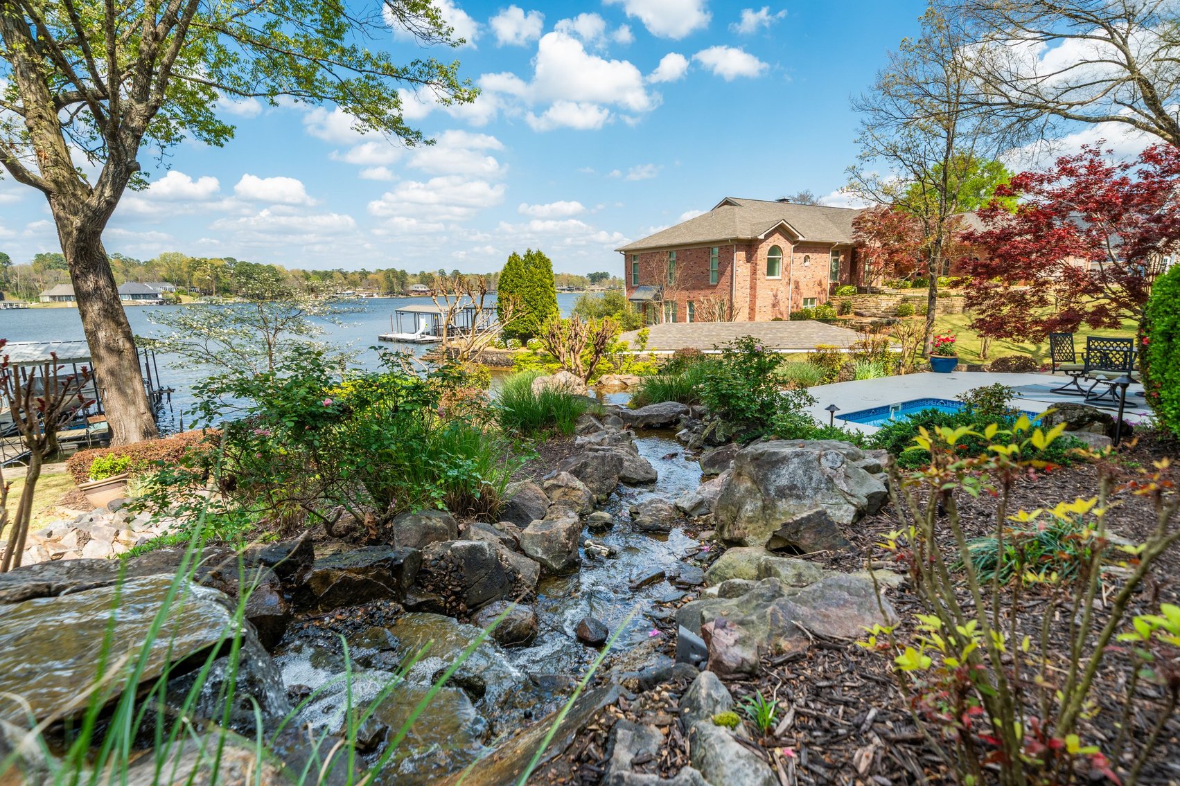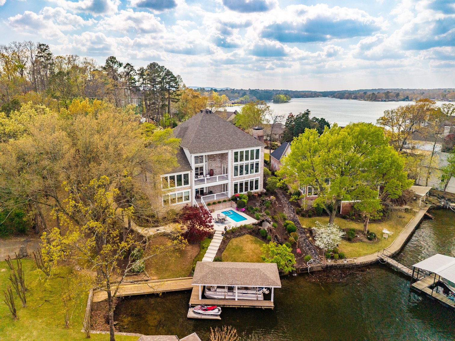 Updated & Furnished 7,260± Sq. Ft., 6BR/ 4.5 BA Home in "Driftwood Estates" Subdivision w/Covered Boat Dock, In-Ground Pool & 3-Car Garage in Lakeside School District ~