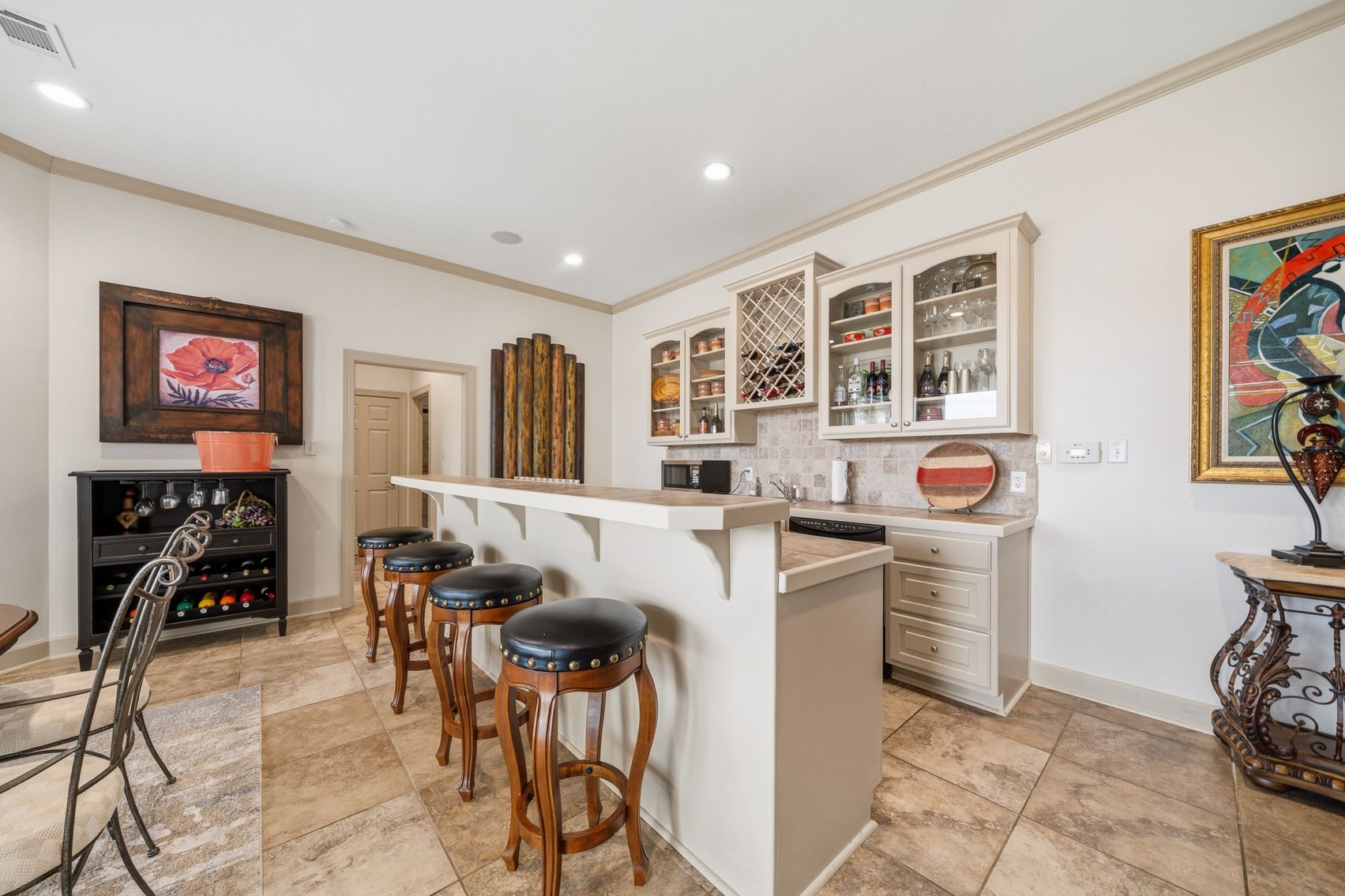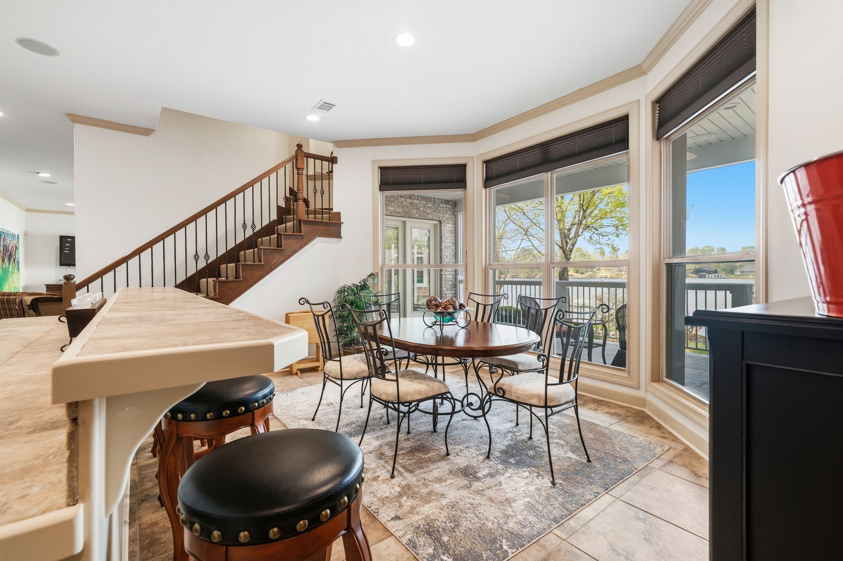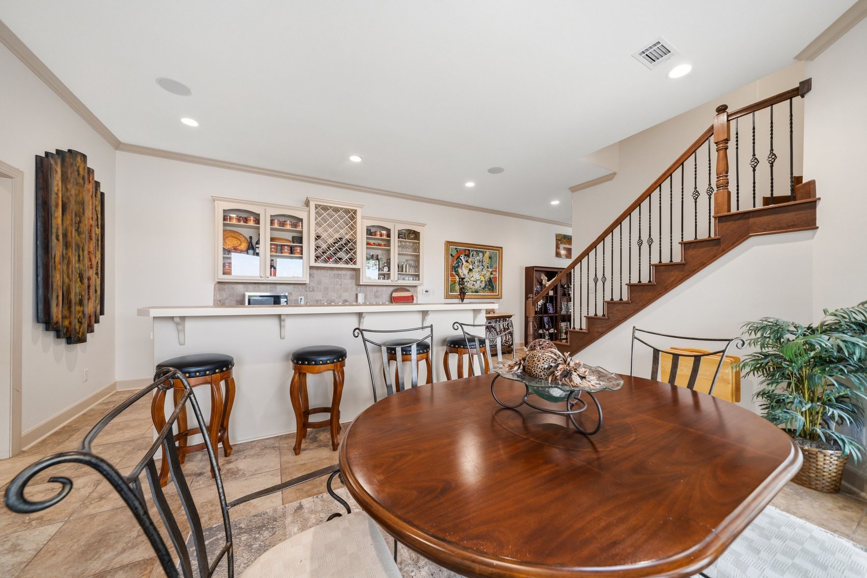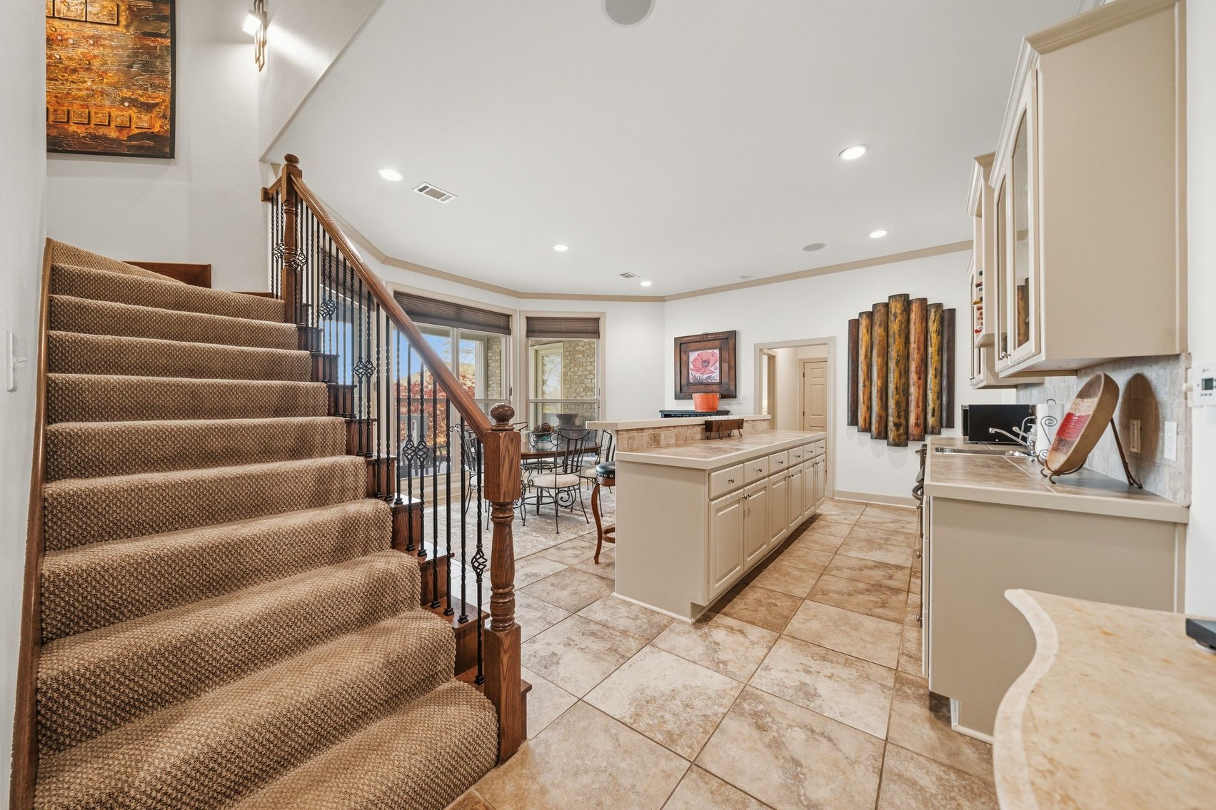 - Elegant Chef's Eat-in Kitchen w/Top of the Line S/S Appliances, Custom Cabinetry, Breakfast Bar & Kitchen Island