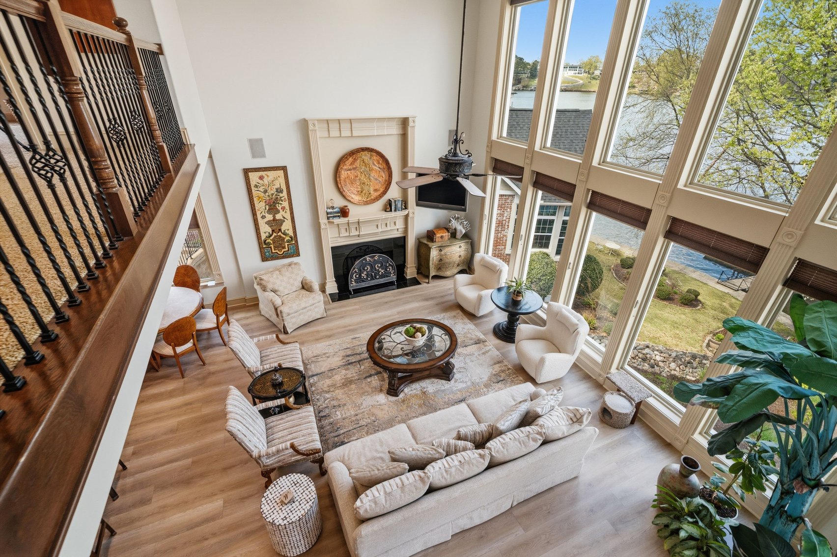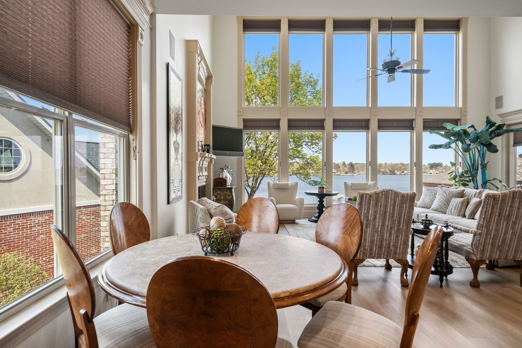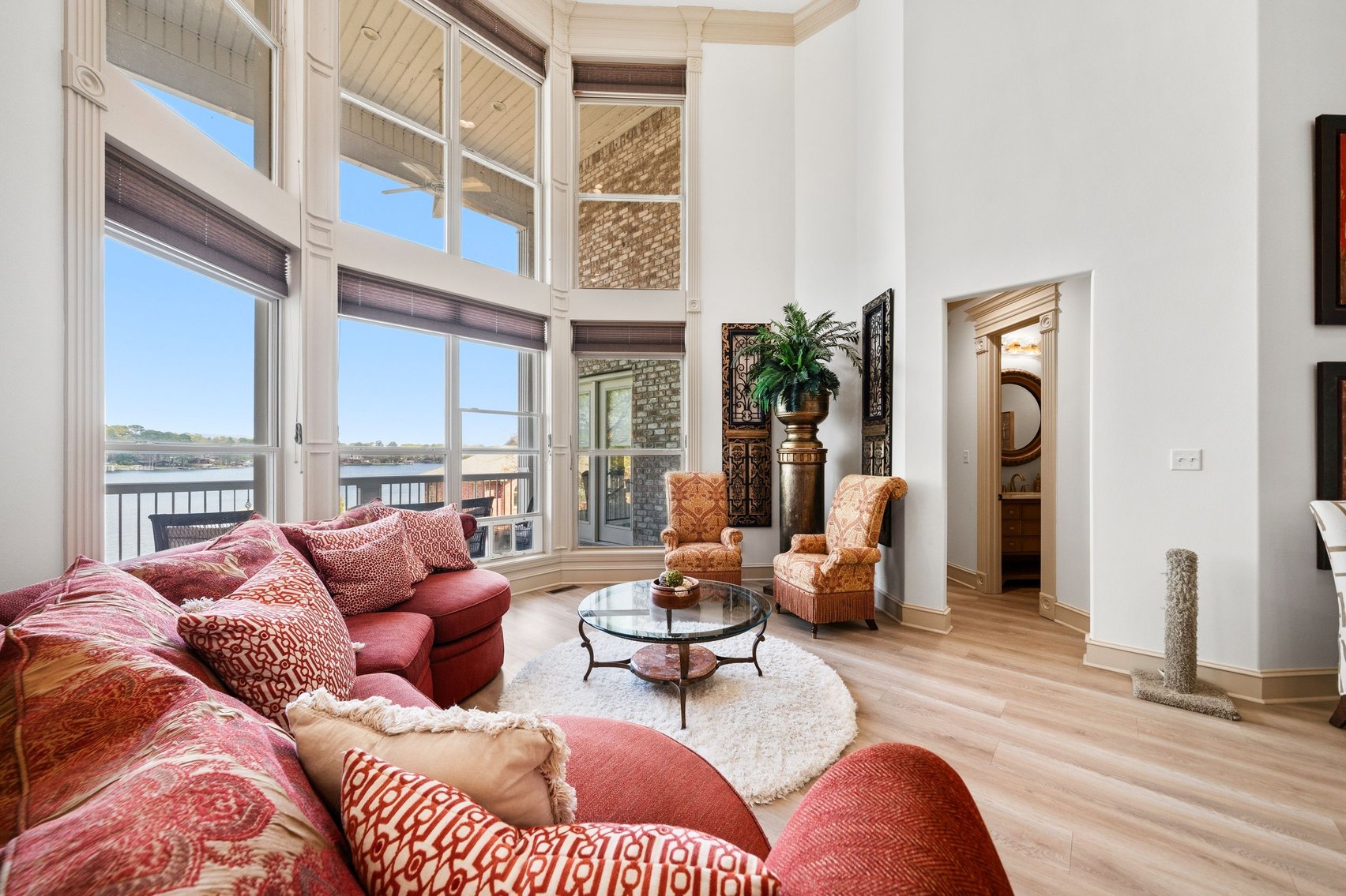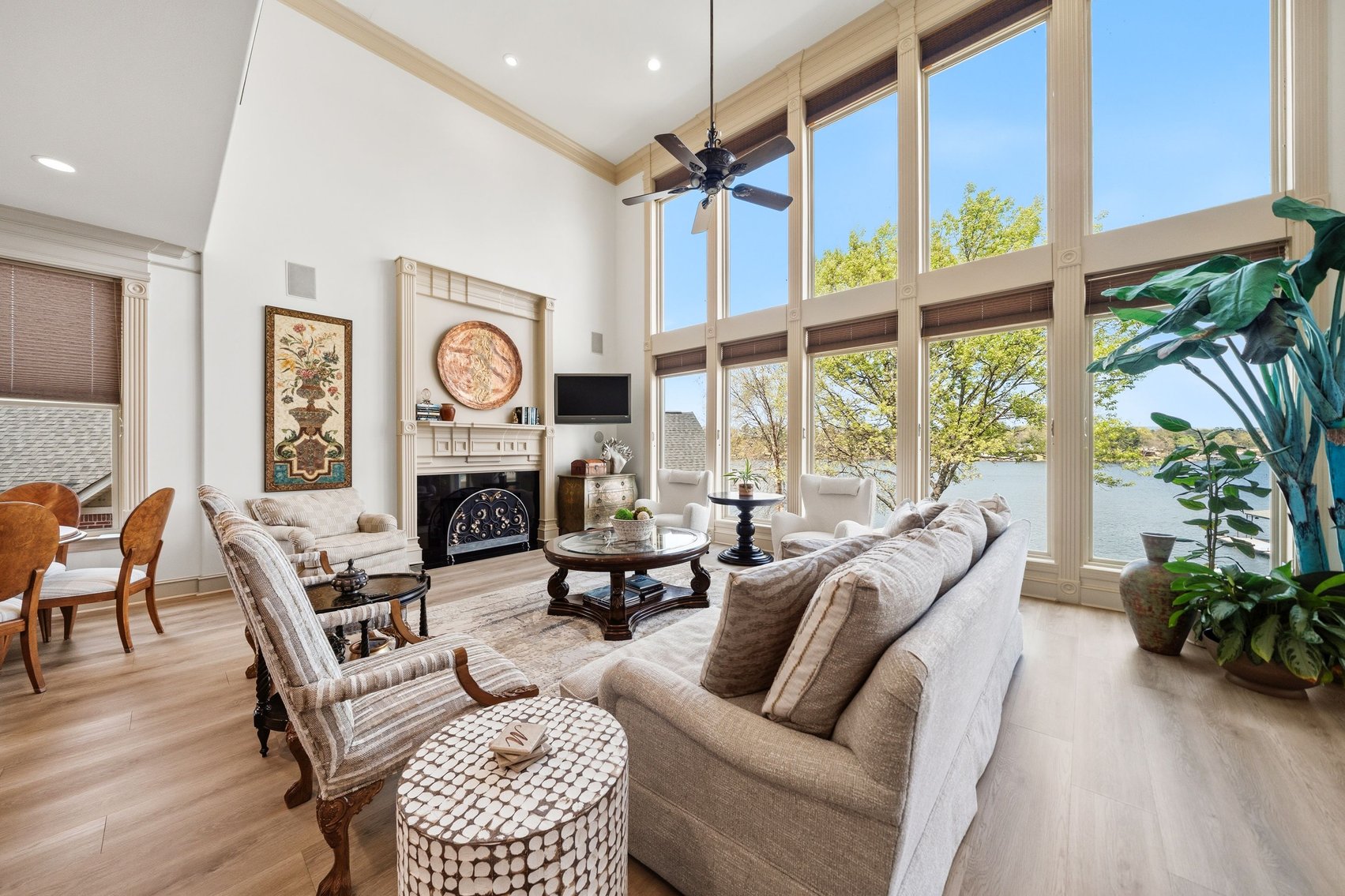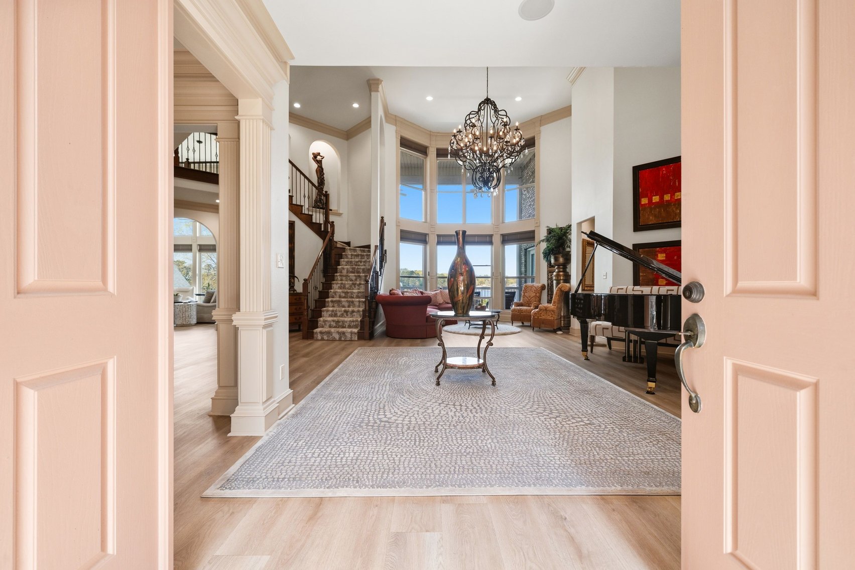 - Spacious, Inviting Living Room w/Sitting Area Overlooking the Lake, High Vaulted Ceiling, Impressive Chandelier & Classic Black Baby Grand Piano