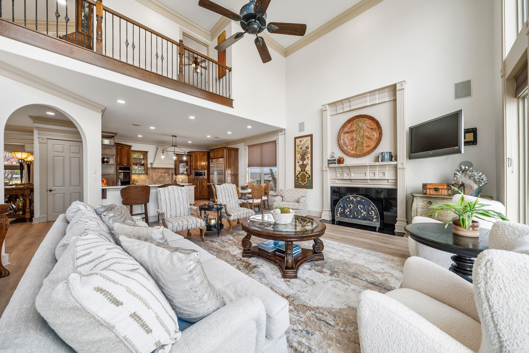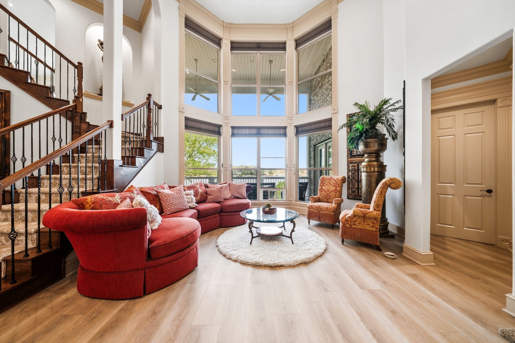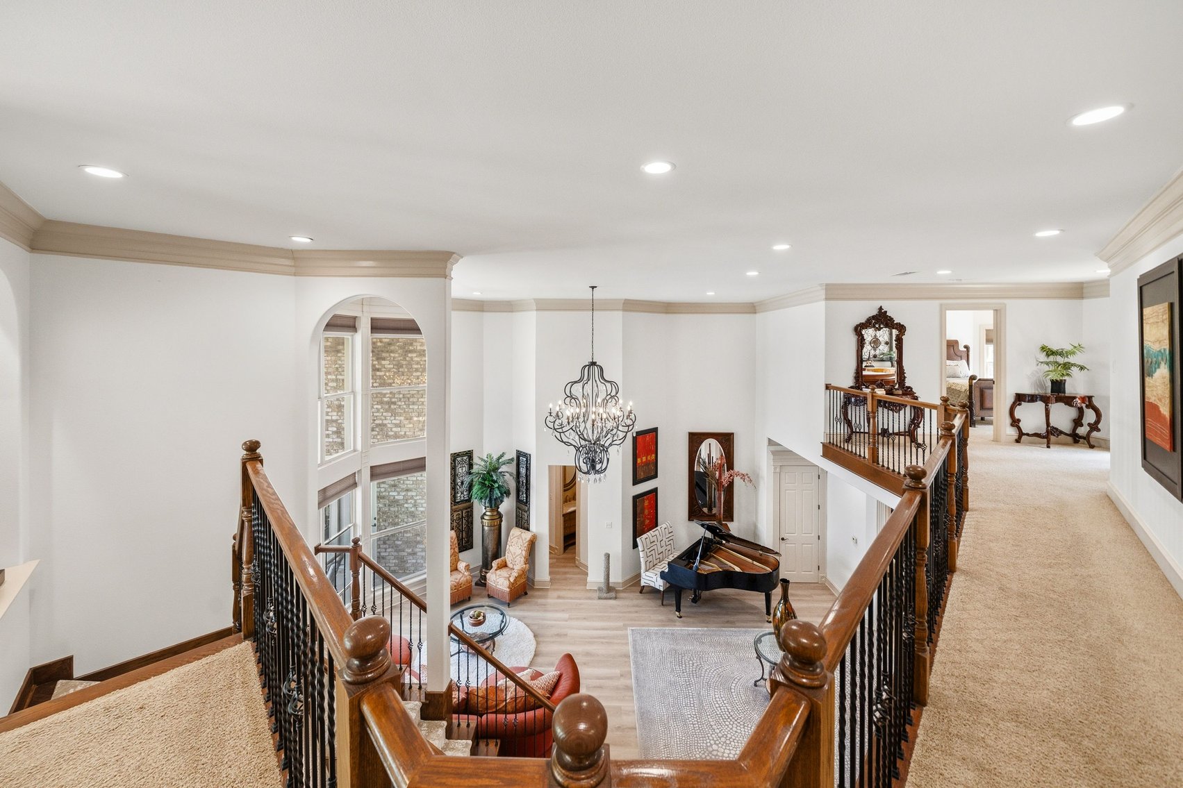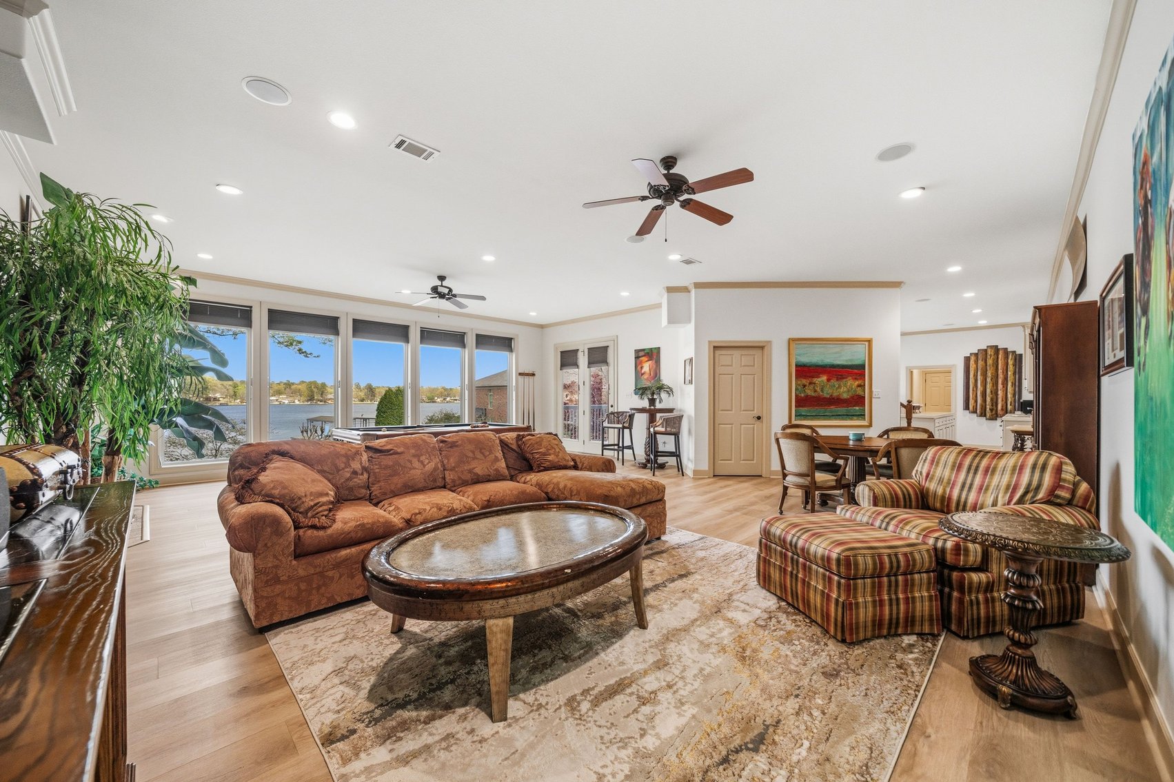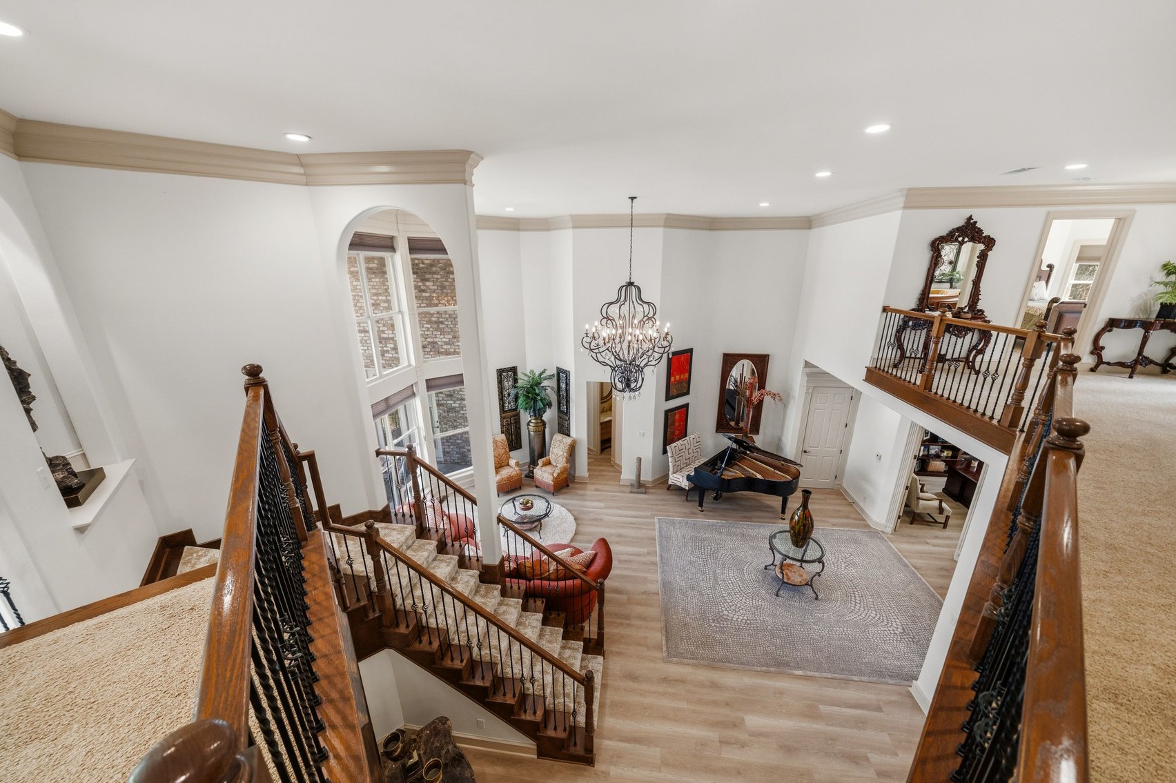 - Spacious, Inviting Living Room w/Sitting Area Overlooking the Lake, High Vaulted Ceiling, Impressive Chandelier & Classic Black Baby Grand Piano