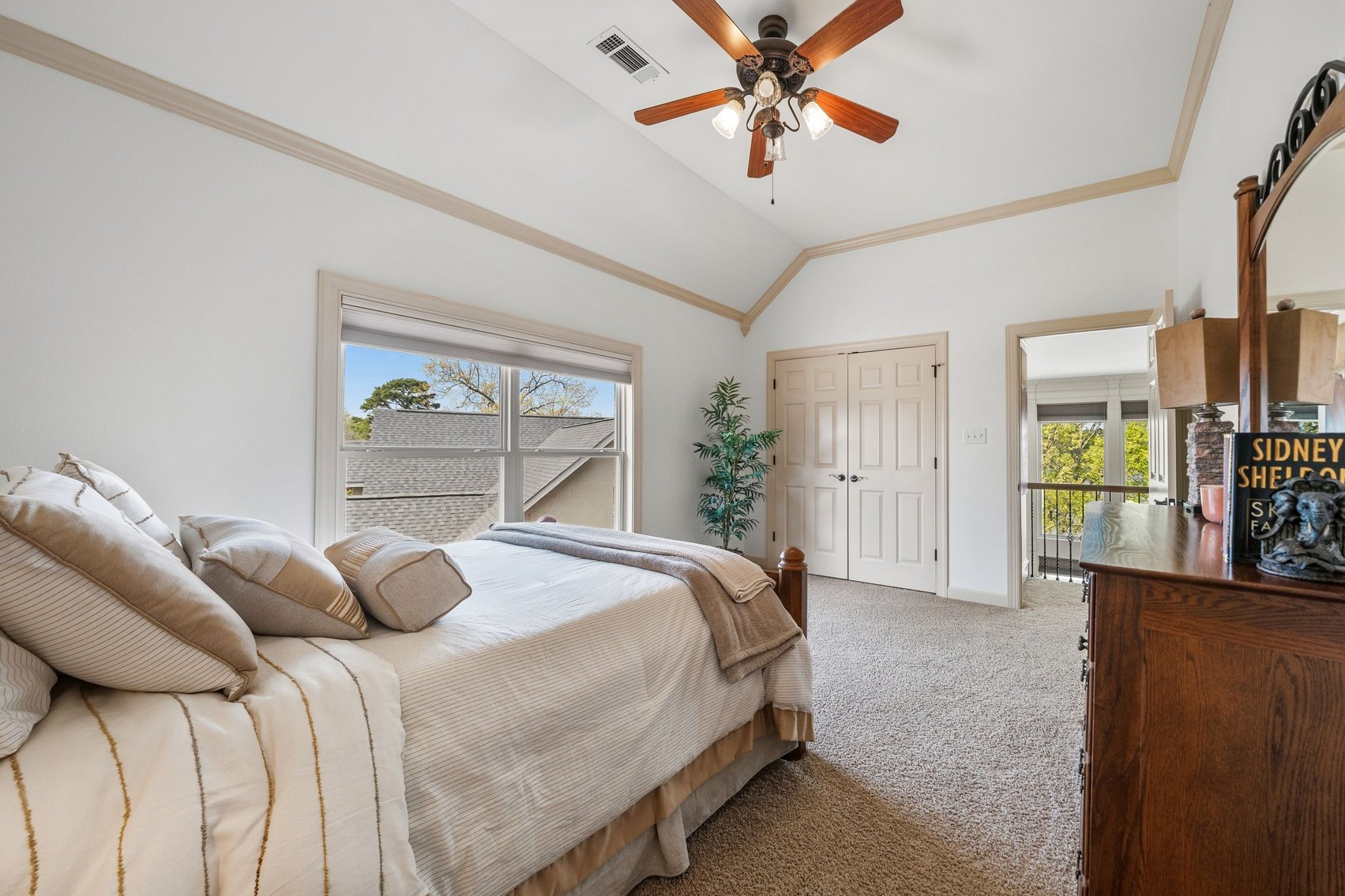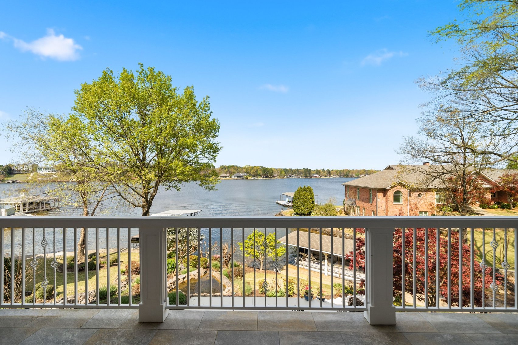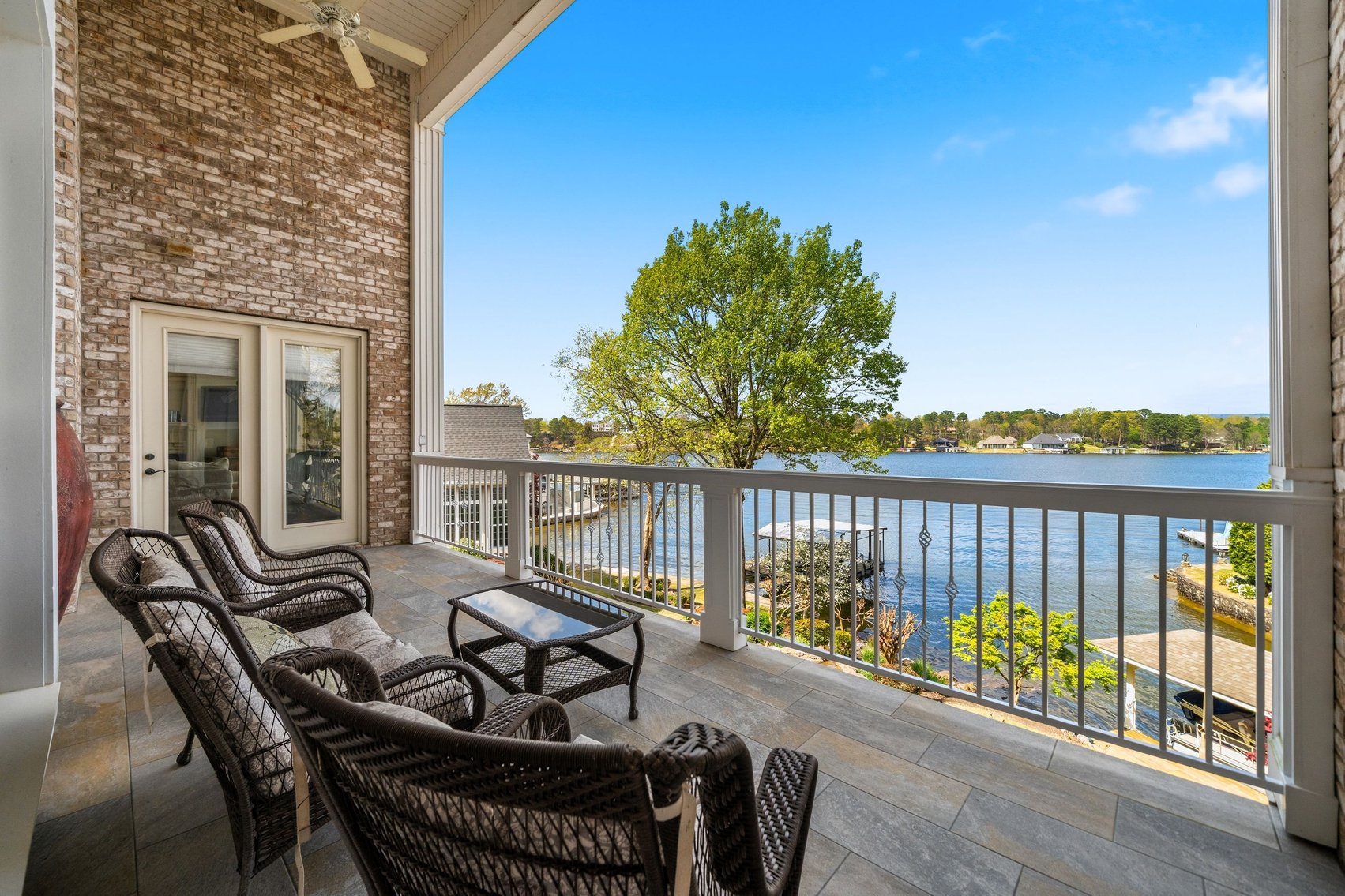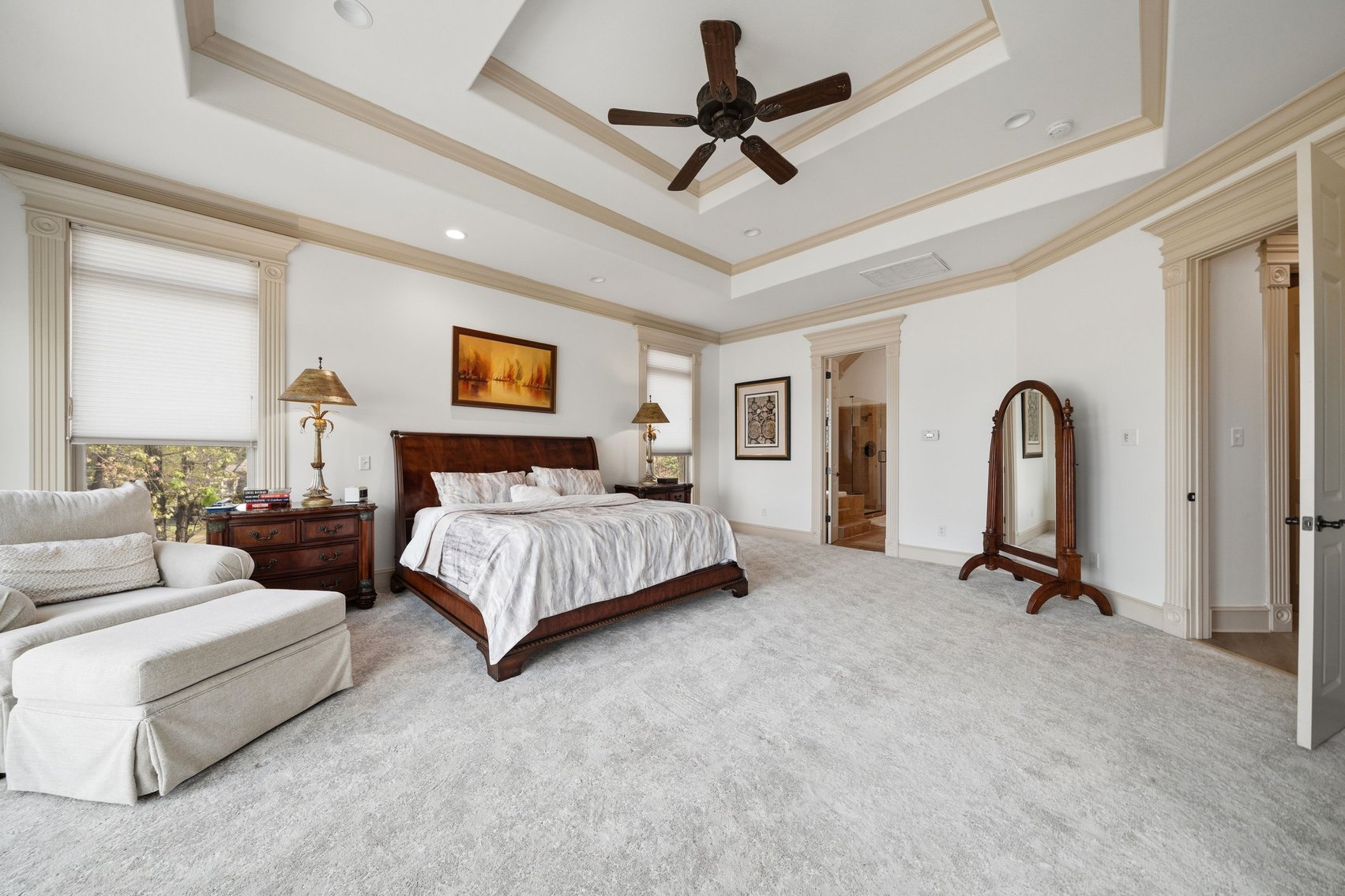 - Impressive Master Suite w/Tray Ceiling, Incredible Lake View & Private Bathroom w/Soaking Tub, Separate Tiled Shower, Dual Sink Vanity, Vanity Desk, Laundry Closet & Huge Walk-in Closet