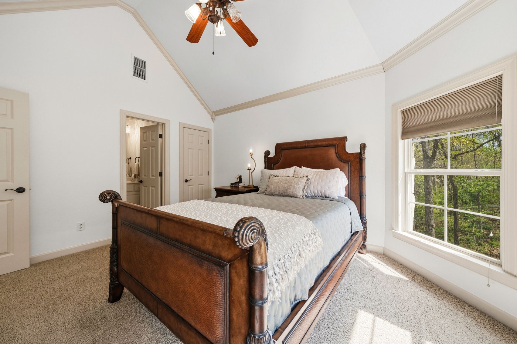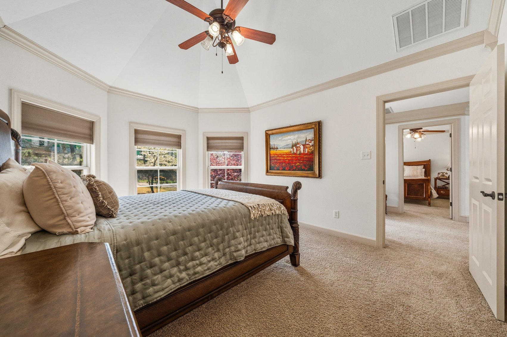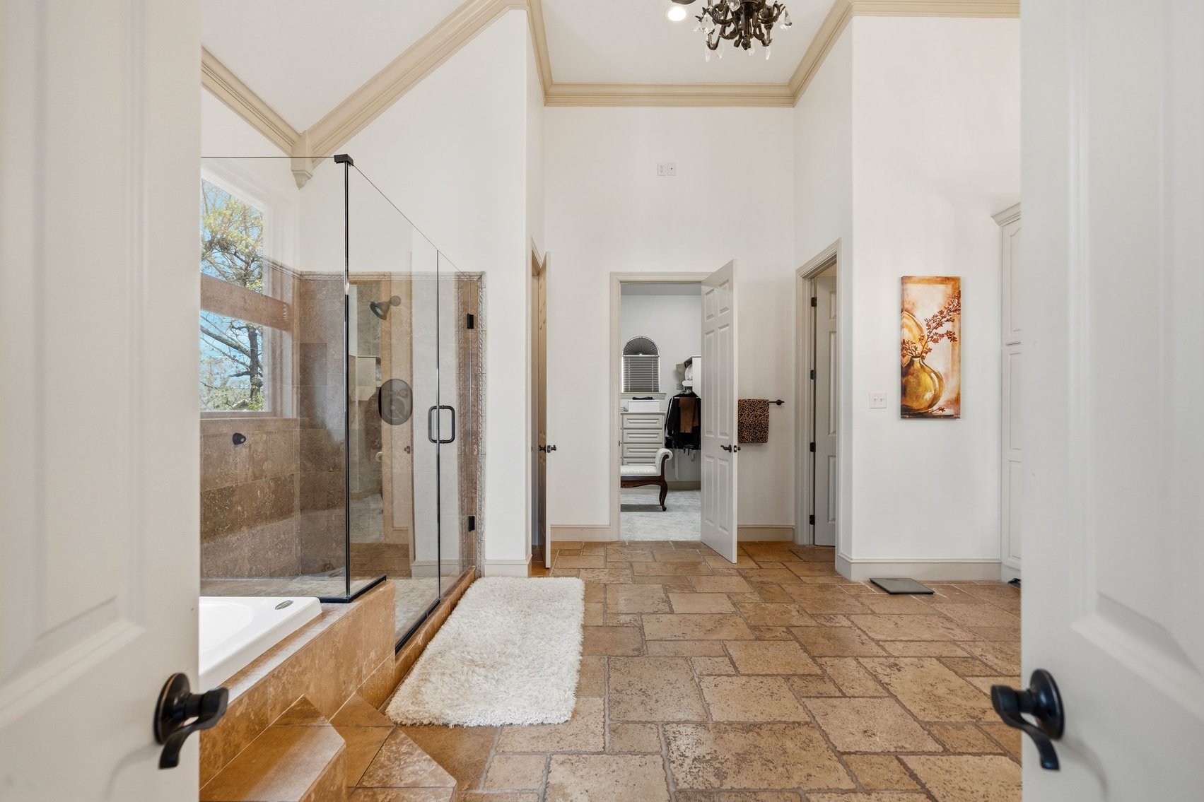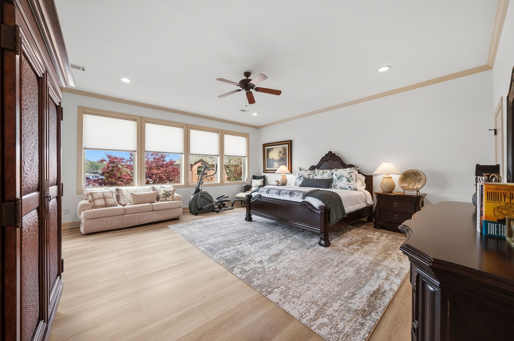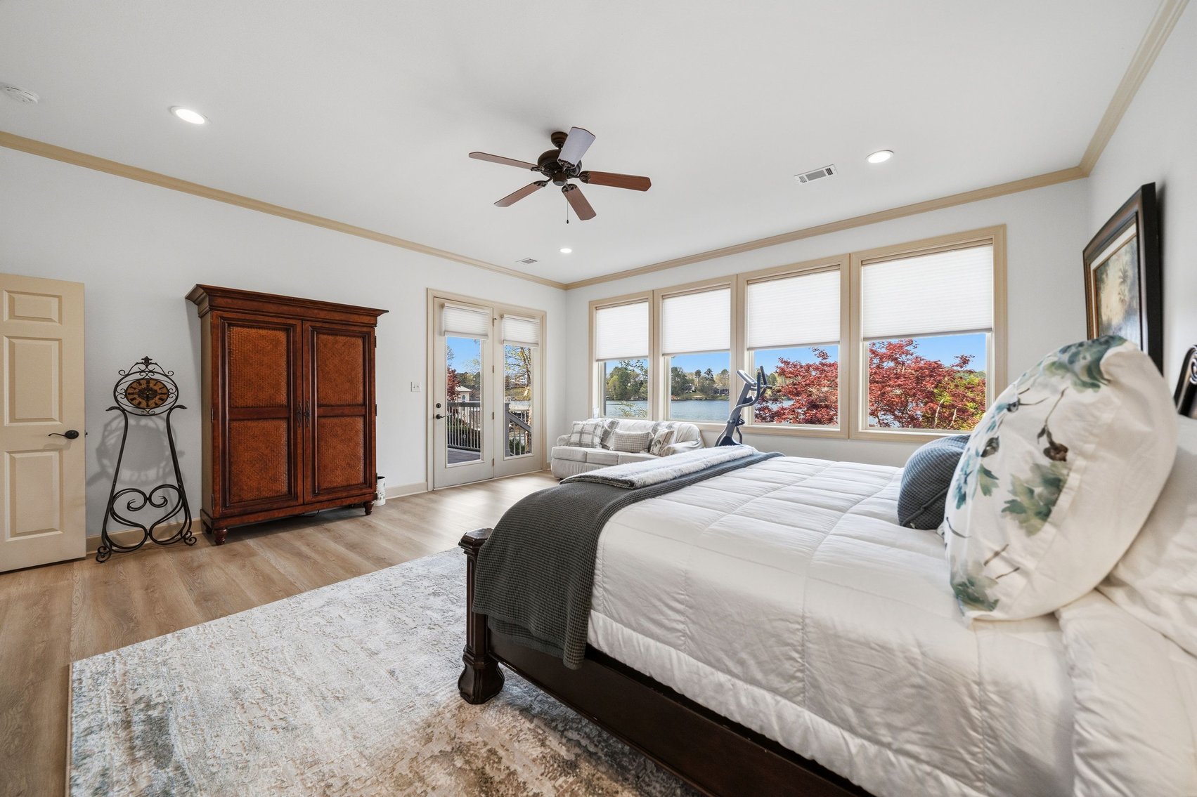 - Impressive Master Suite w/Tray Ceiling, Incredible Lake View & Private Bathroom w/Soaking Tub, Separate Tiled Shower, Dual Sink Vanity, Vanity Desk, Laundry Closet & Huge Walk-in Closet