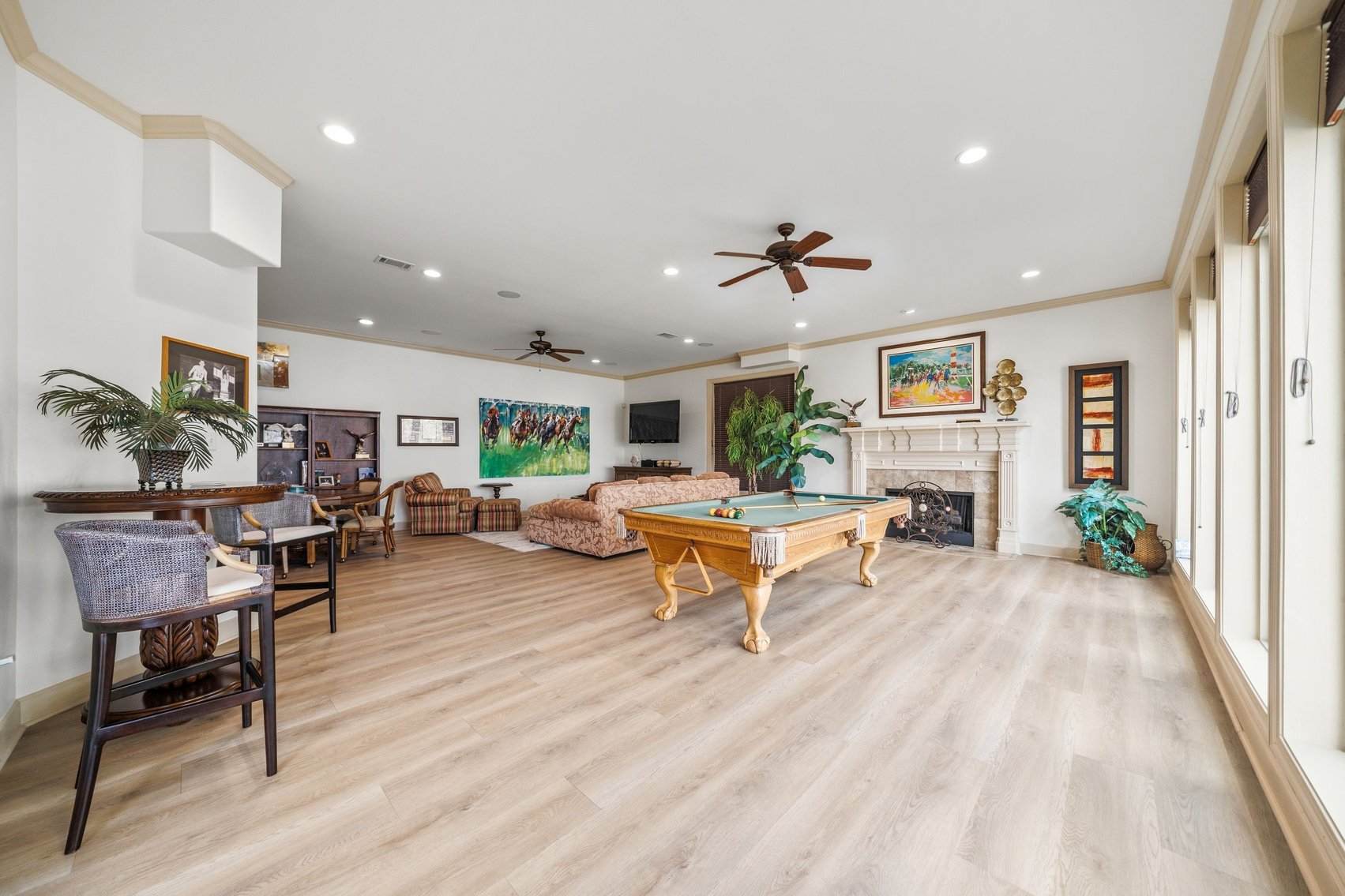 - Huge Lower Level Perfect for In-Law Quarters or Entertaining w/Wet Bar/ Kitchenette w/Bar Stool Seating, Pool Table, Poker Table, Sitting Area, Dining Area, Gas Fireplace, TV, Walk-out Covered Patio, Huge Bedroom w/Walk-in Closet & Full Bathroom