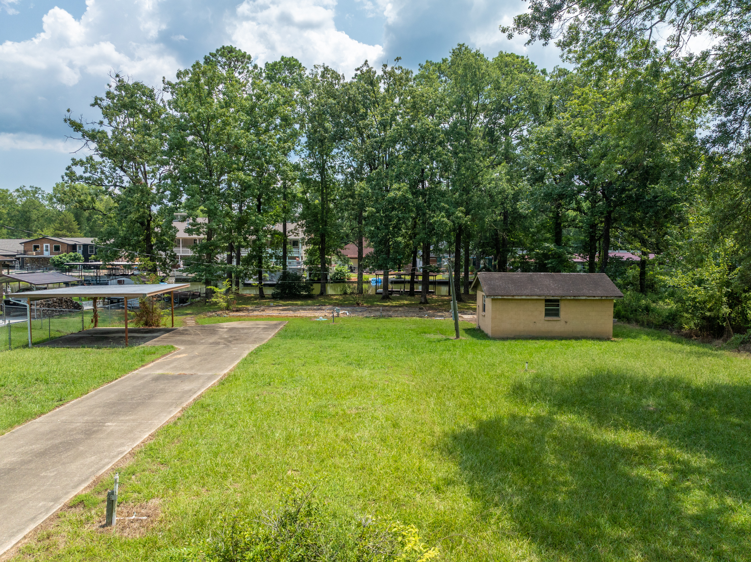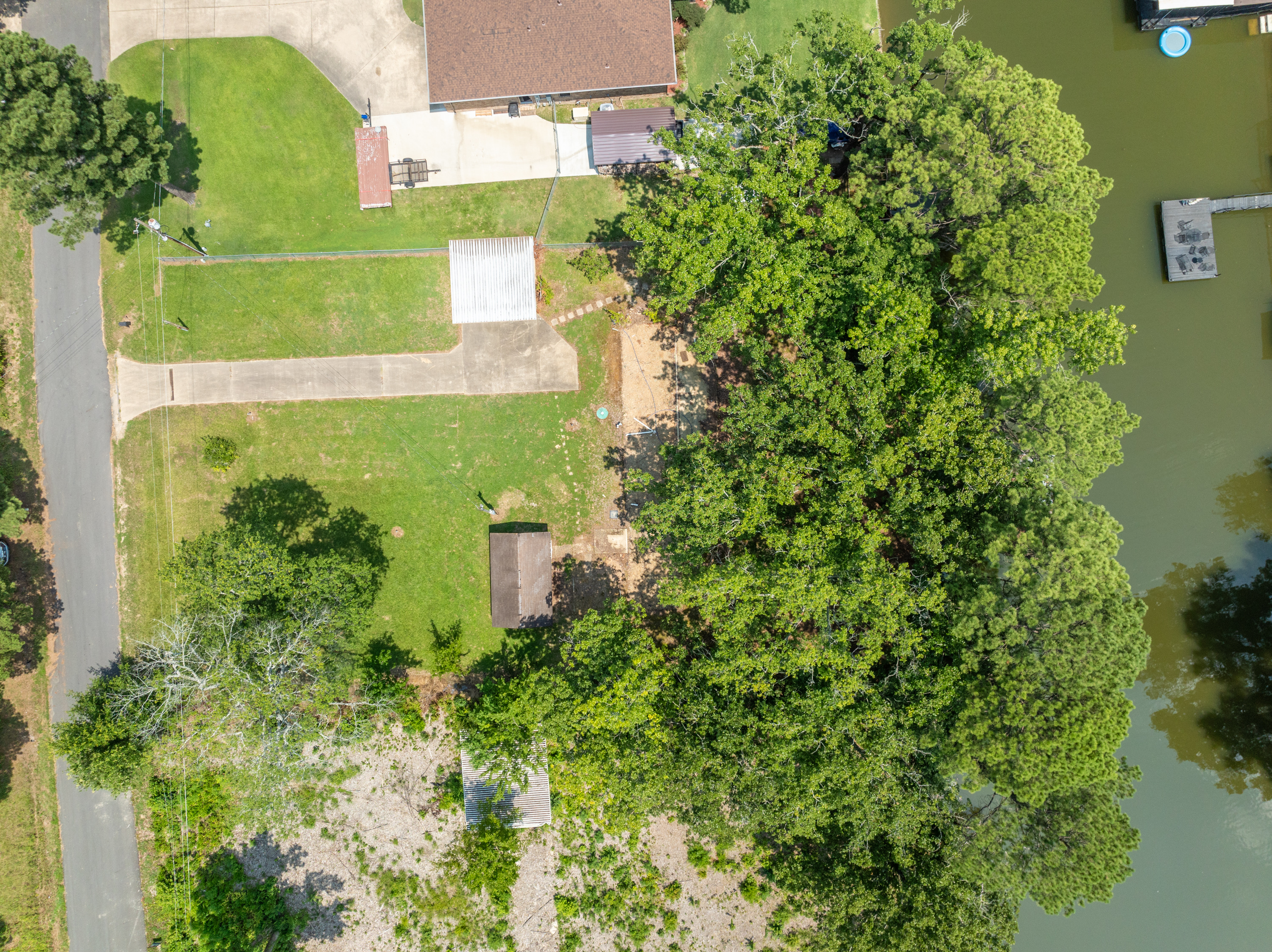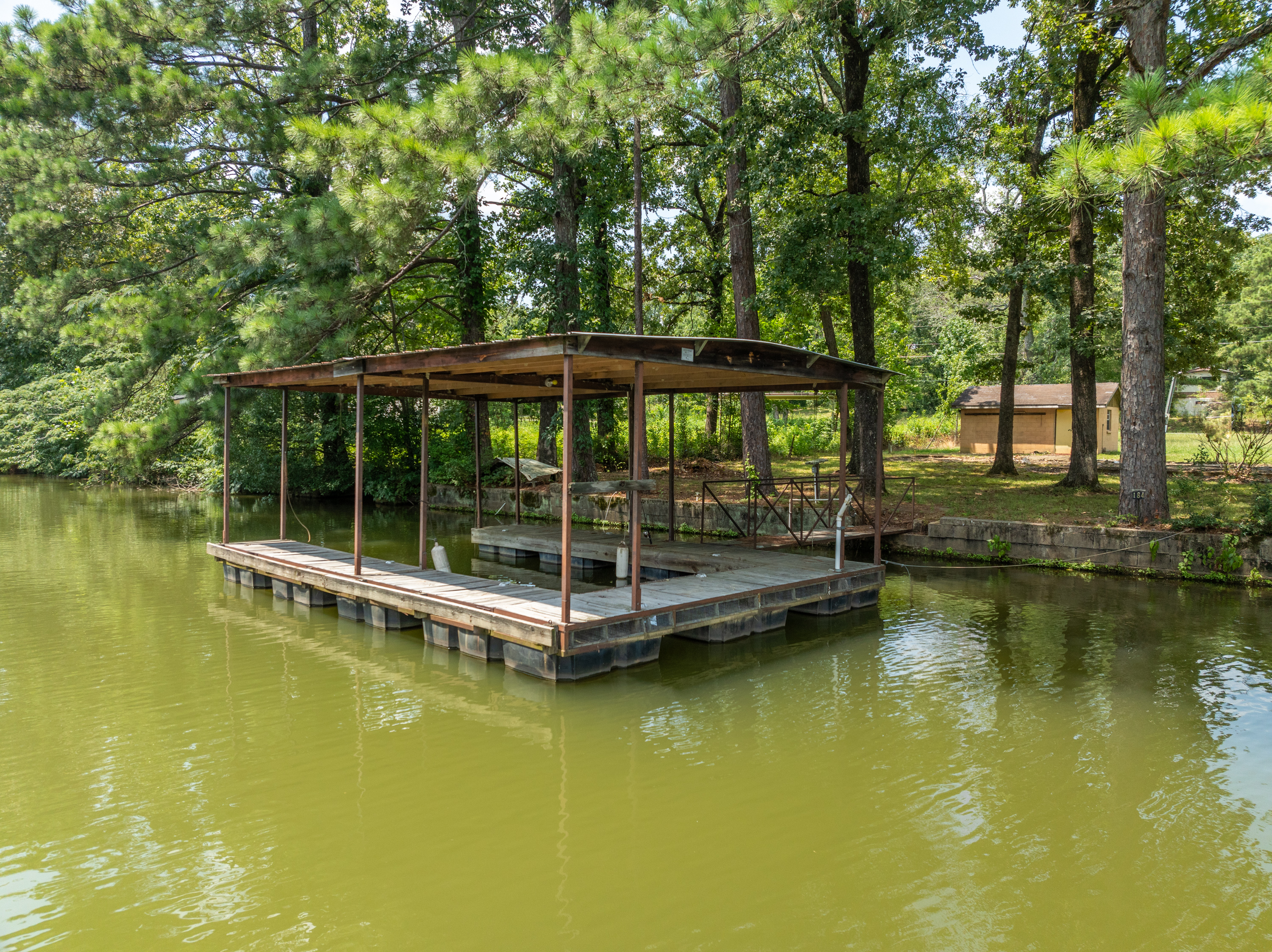 (LOT 10 – 184 Lakeaire Terrace) has an Outbuilding, Seawall, an Older Boat Dock & a Mobile Home Pad