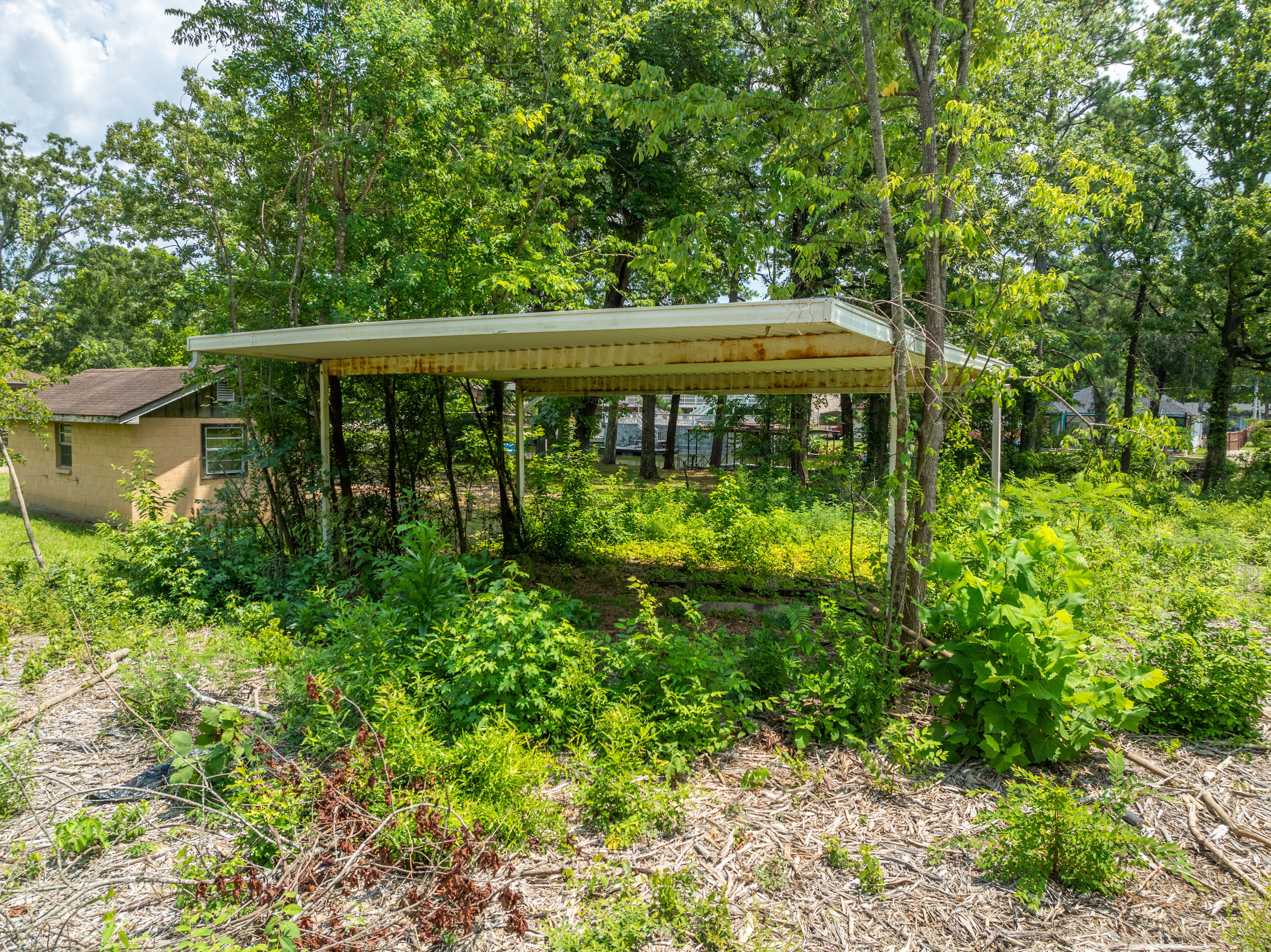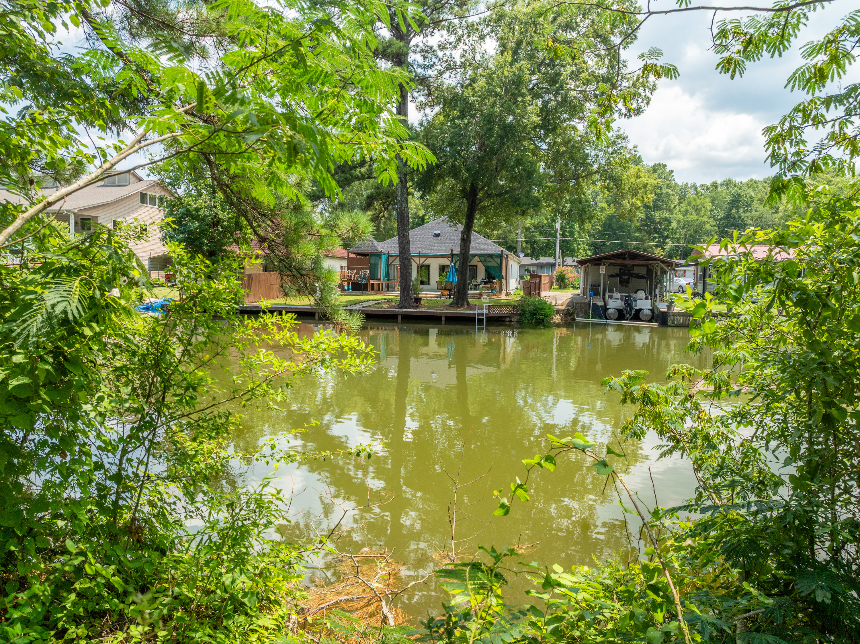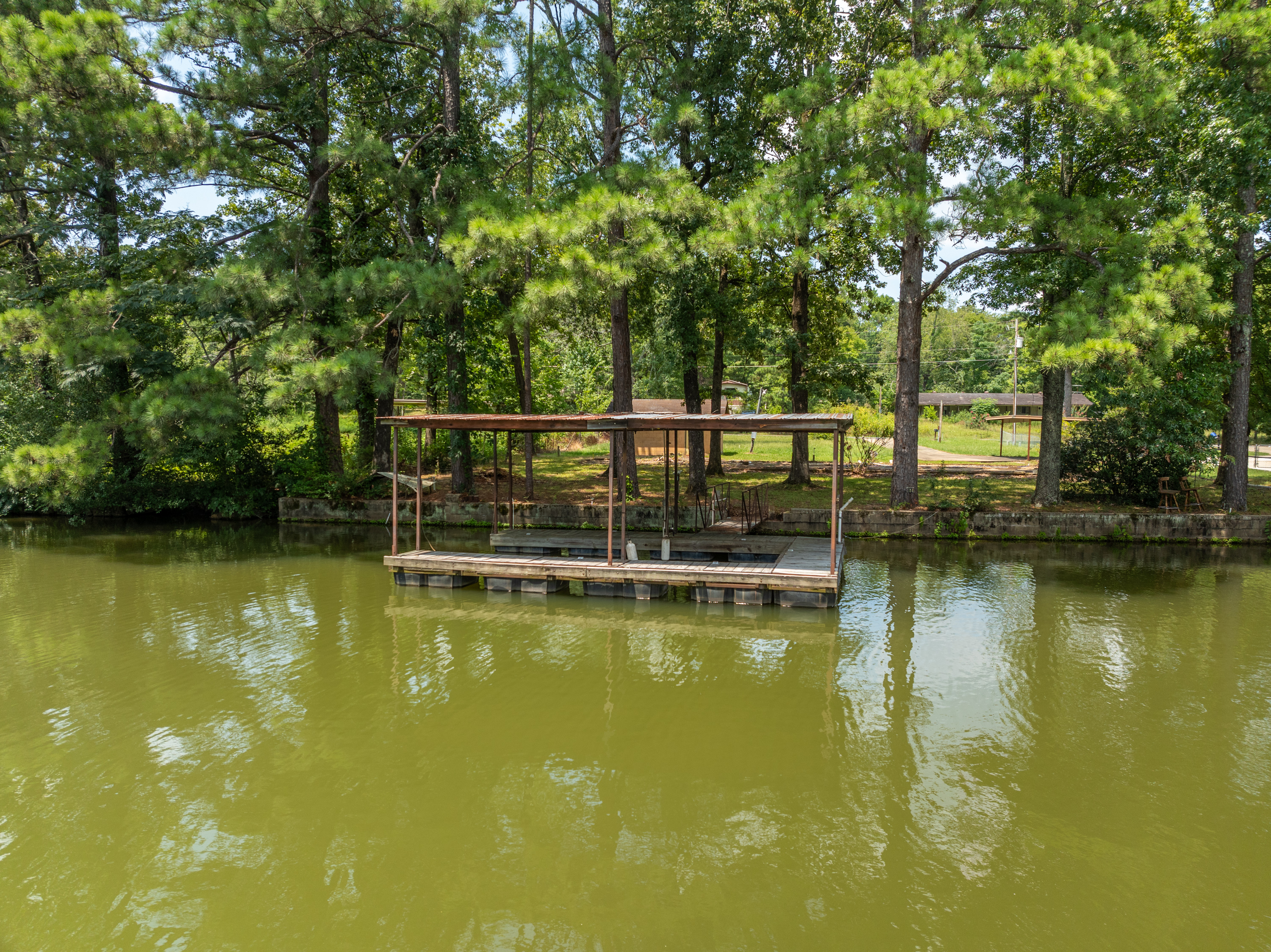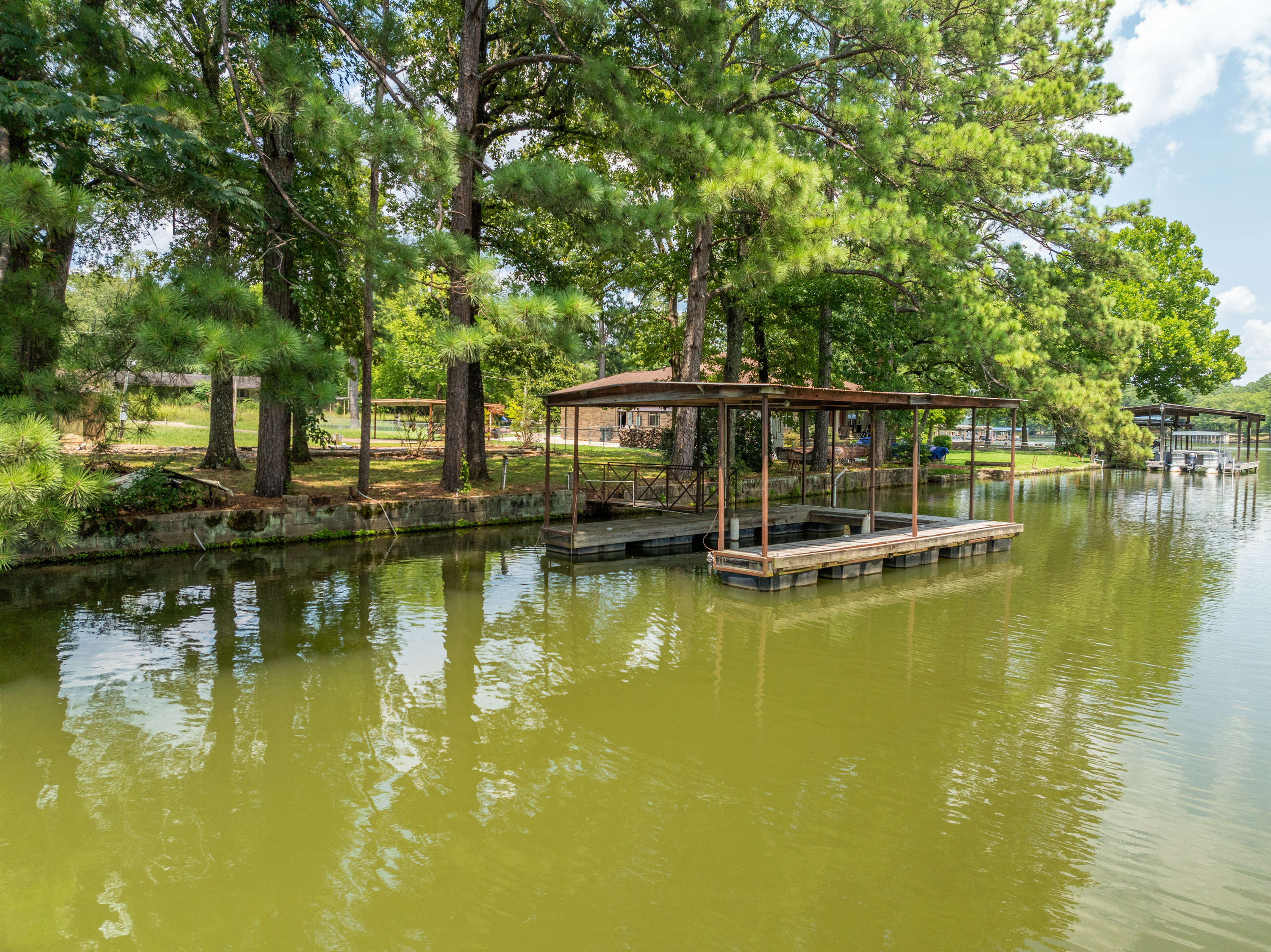 (LOT 10 – 184 Lakeaire Terrace) has an Outbuilding, Seawall, an Older Boat Dock & a Mobile Home Pad