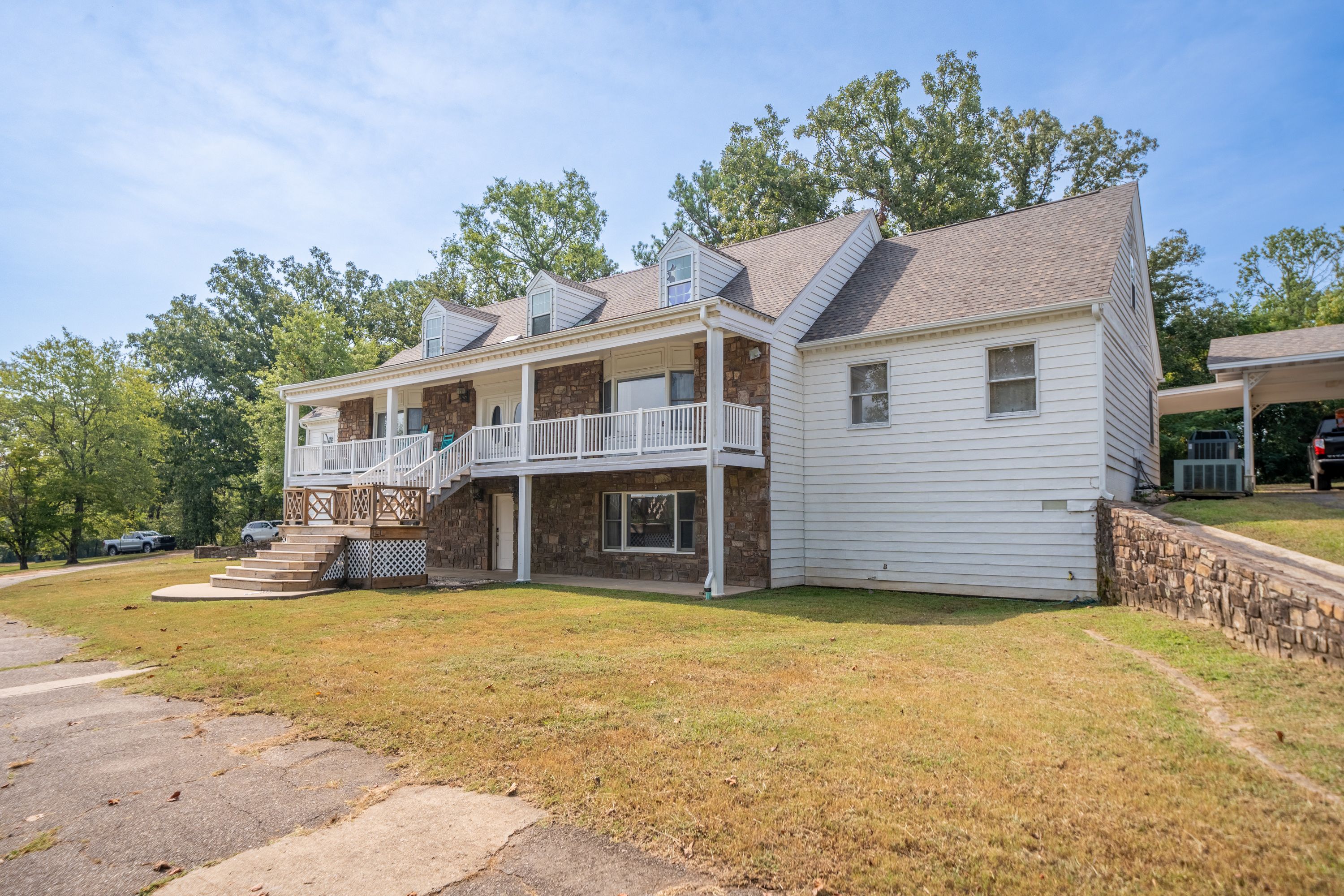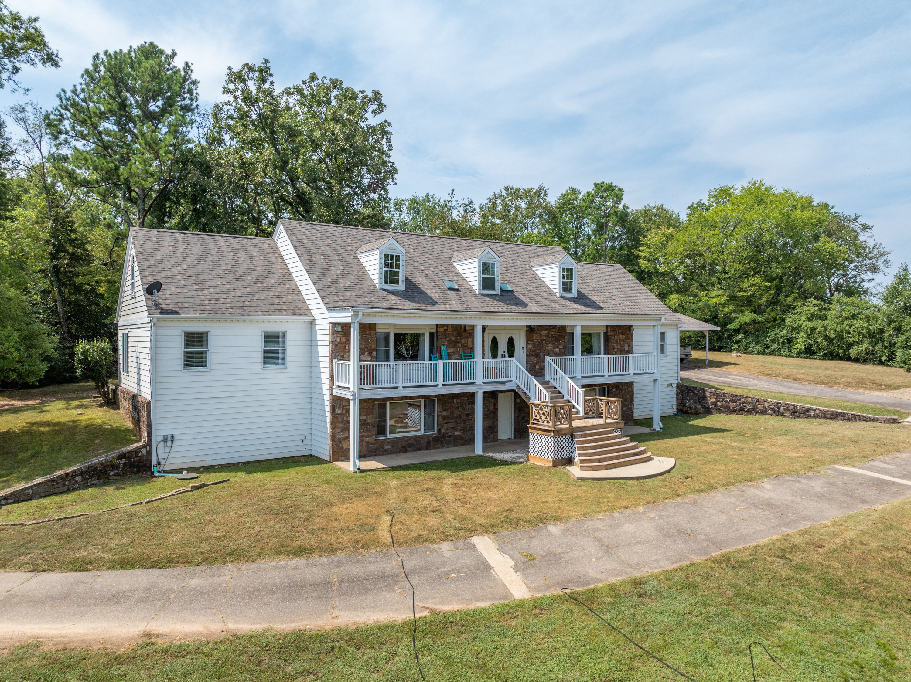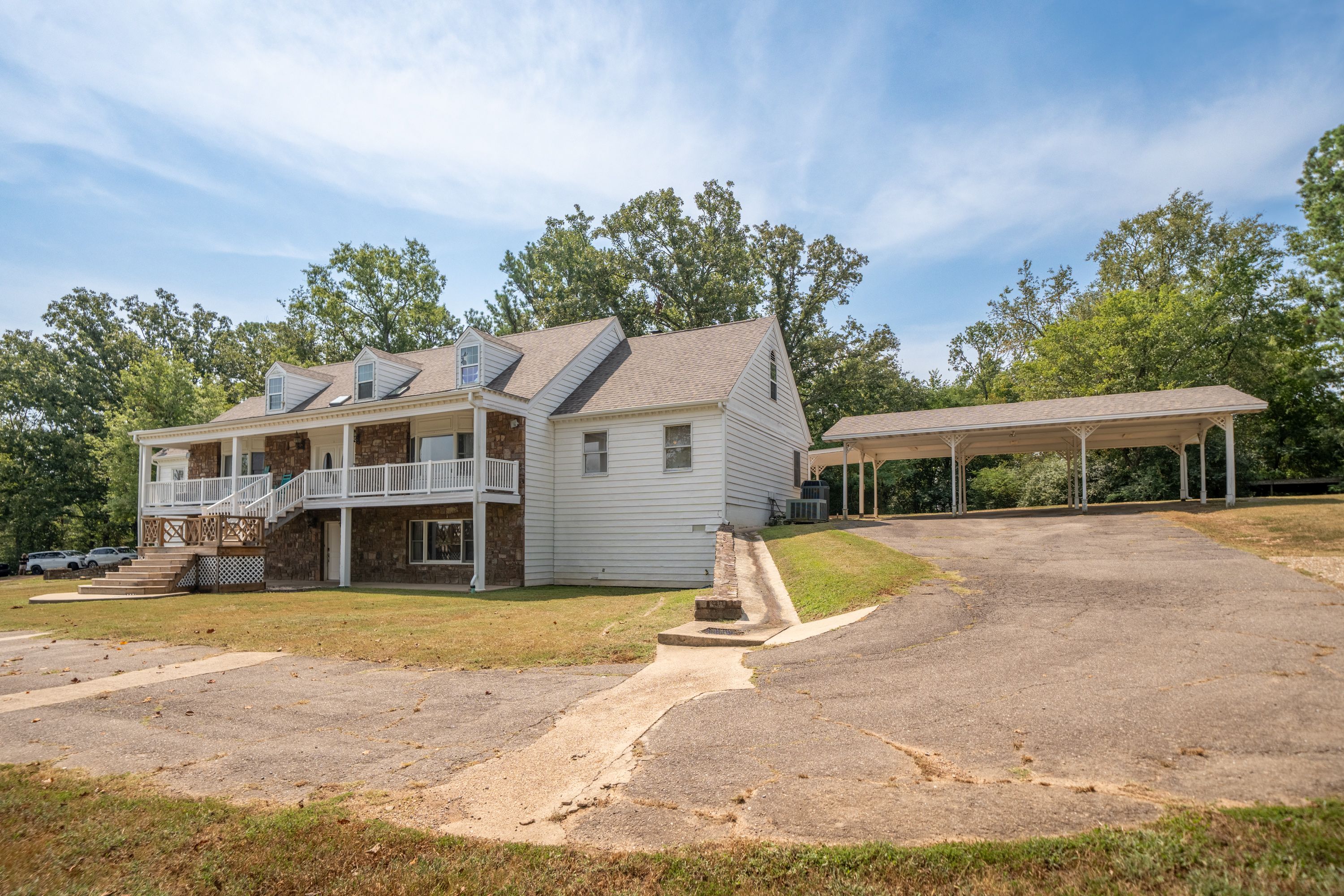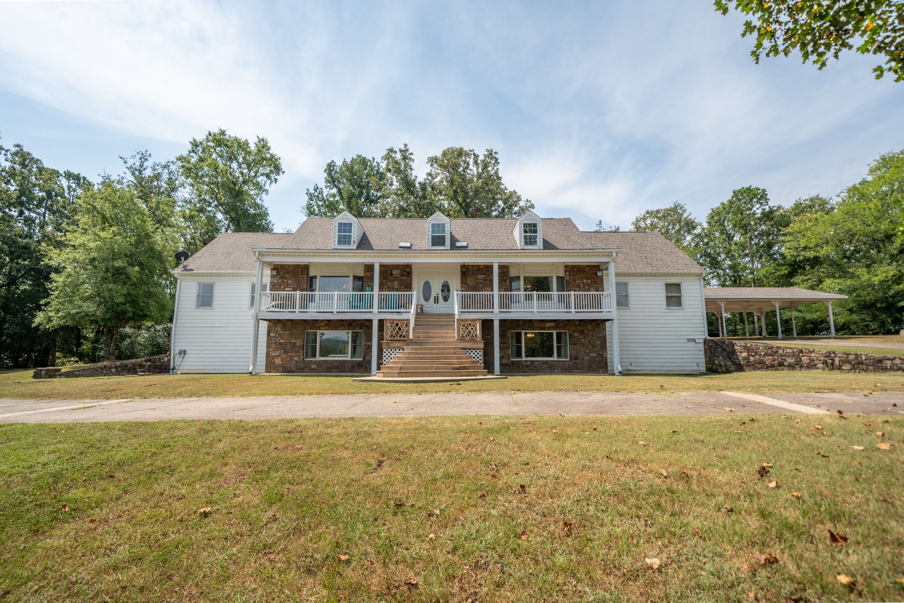 (TRACT 2) will Contain the 7,300+/- SF, 7 Bedroom/ 5.5 Bathroom, 3-Story, Rock & Metal Siding Exterior Home w/New Roof & 3-Car Attached Carport on 2.84+/- Acres ~ Move-in-Ready 3,220+/- SF Main Level Consists of an Entry Foyer w/Crystal Chandelier, Sunken Living Room w/Woodburning Fireplace, Den/2nd Living Area, Master Suite w/Private Bathroom, Tub, Separate Shower, Vanity Area & Multiple Closets, Kitchen w/Island, Built-in Appliances, Custom Cabinets & Pantry Closet, Dining Room, Laundry Room, Half Bath, 2nd & 3rd Bedrooms, 2nd Full Bathroom, Front & Back Covered & Uncovered Porches & Patios ~ 800+/- SF Upper-Level Consists of 3 Bedrooms, 2 Bathrooms & Ample Floored Attic Storage ~ Lower Level is a Partially Finished Full Basement w/a Bedroom, Bathroom Plumbed for a Tile Shower, Office/Theater Room, Tool Room/Hobby Room, 2nd Laundry Room & Tons of Storage Closets ~ Triple Zoned HVAC.