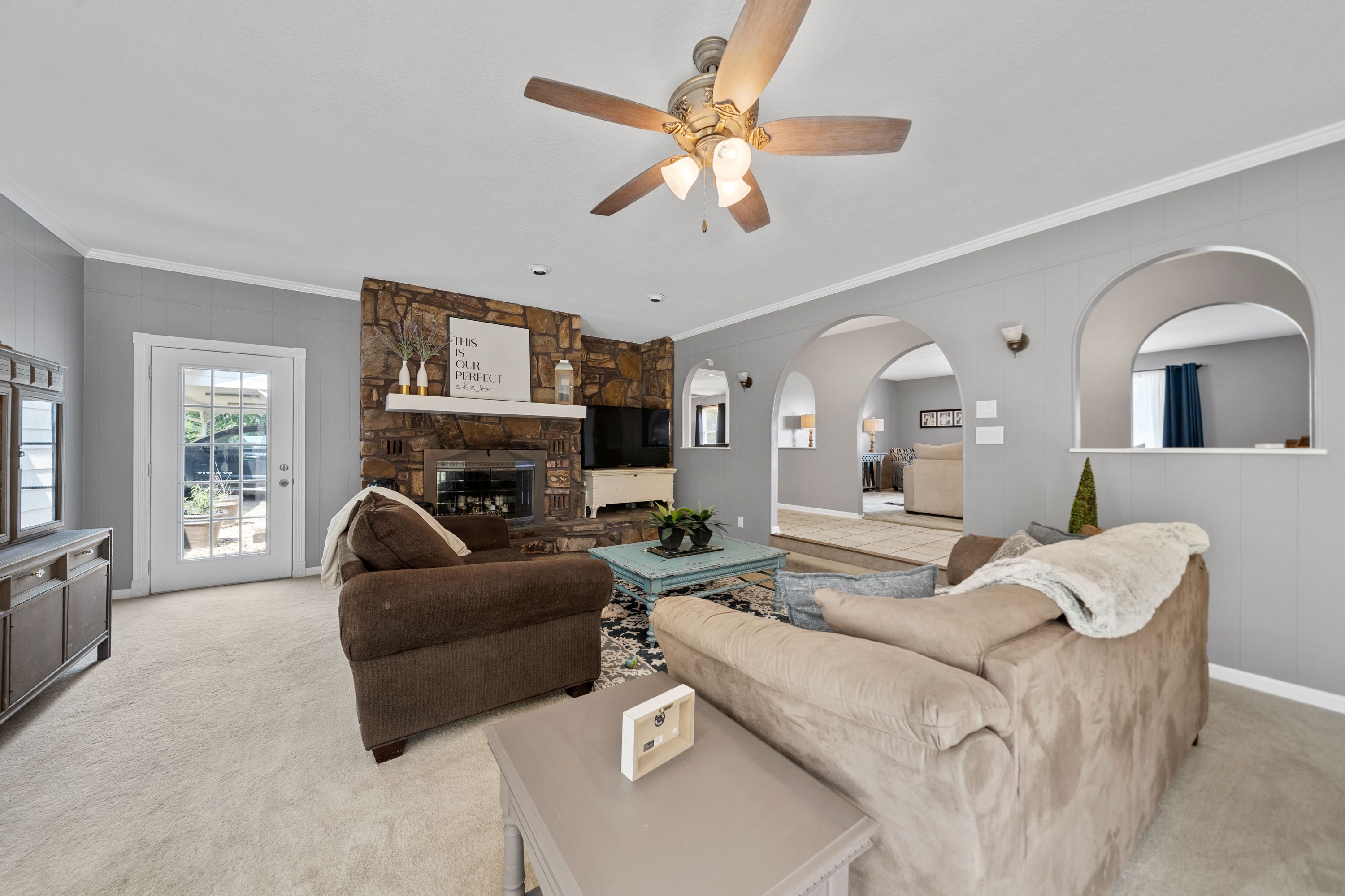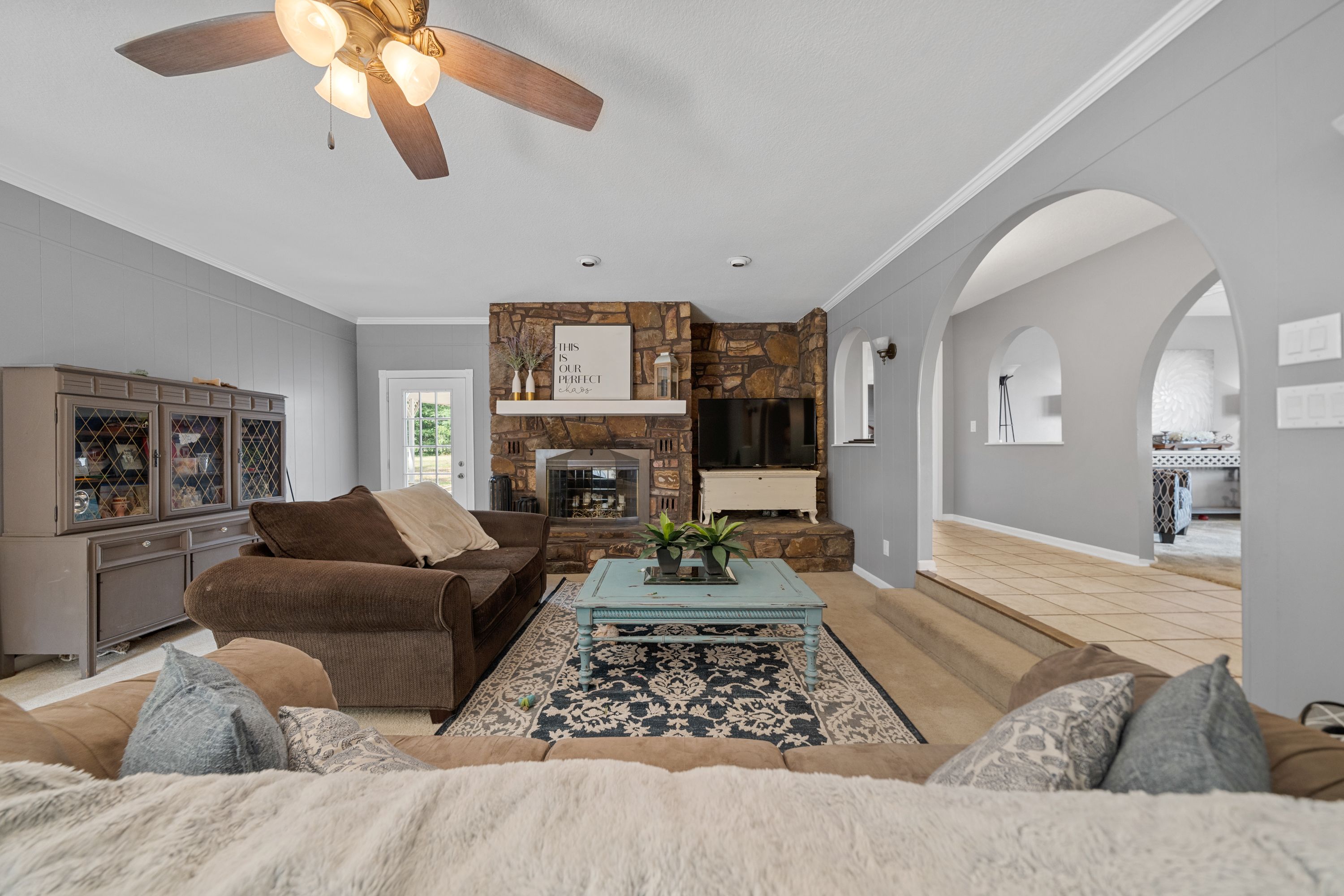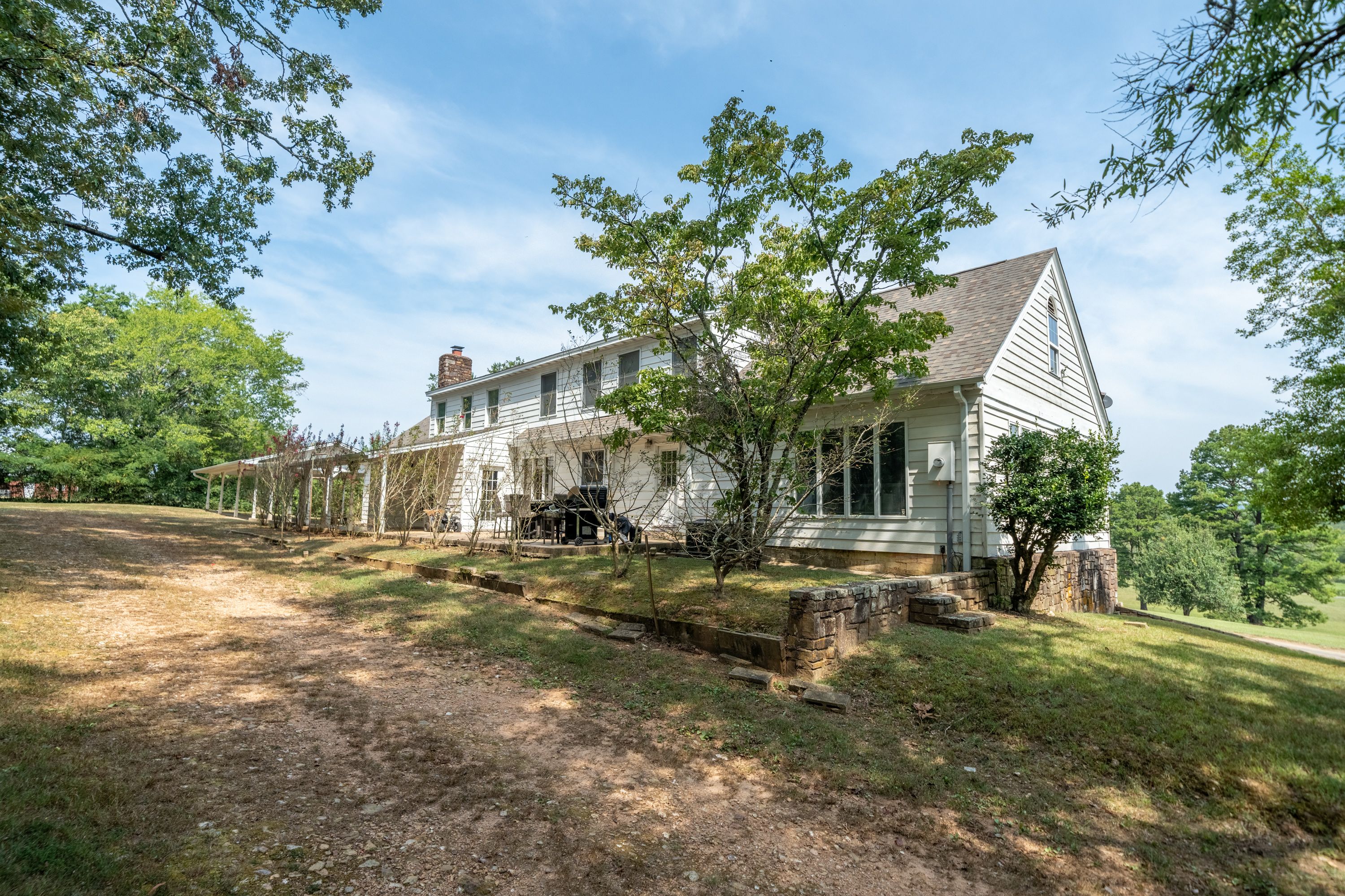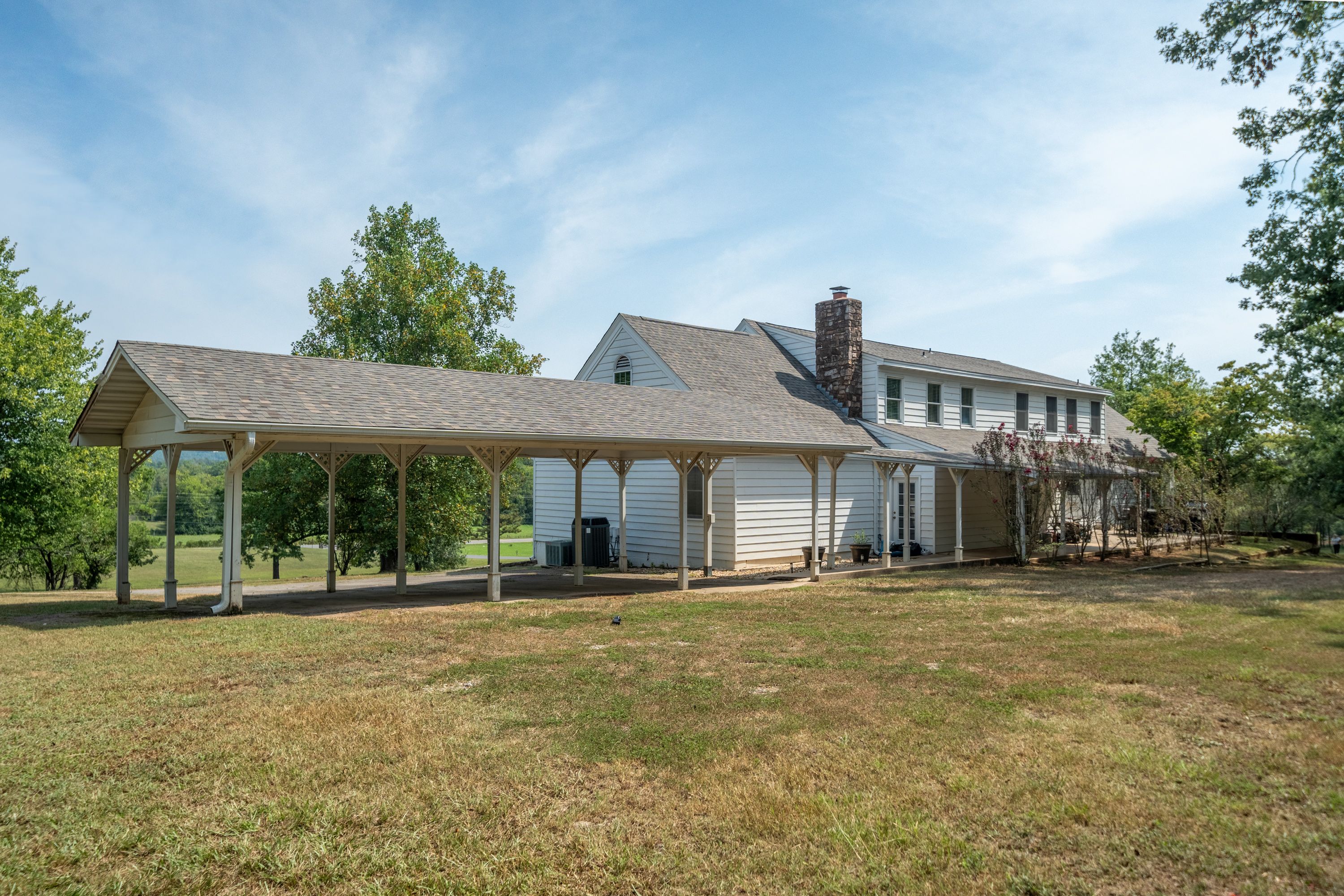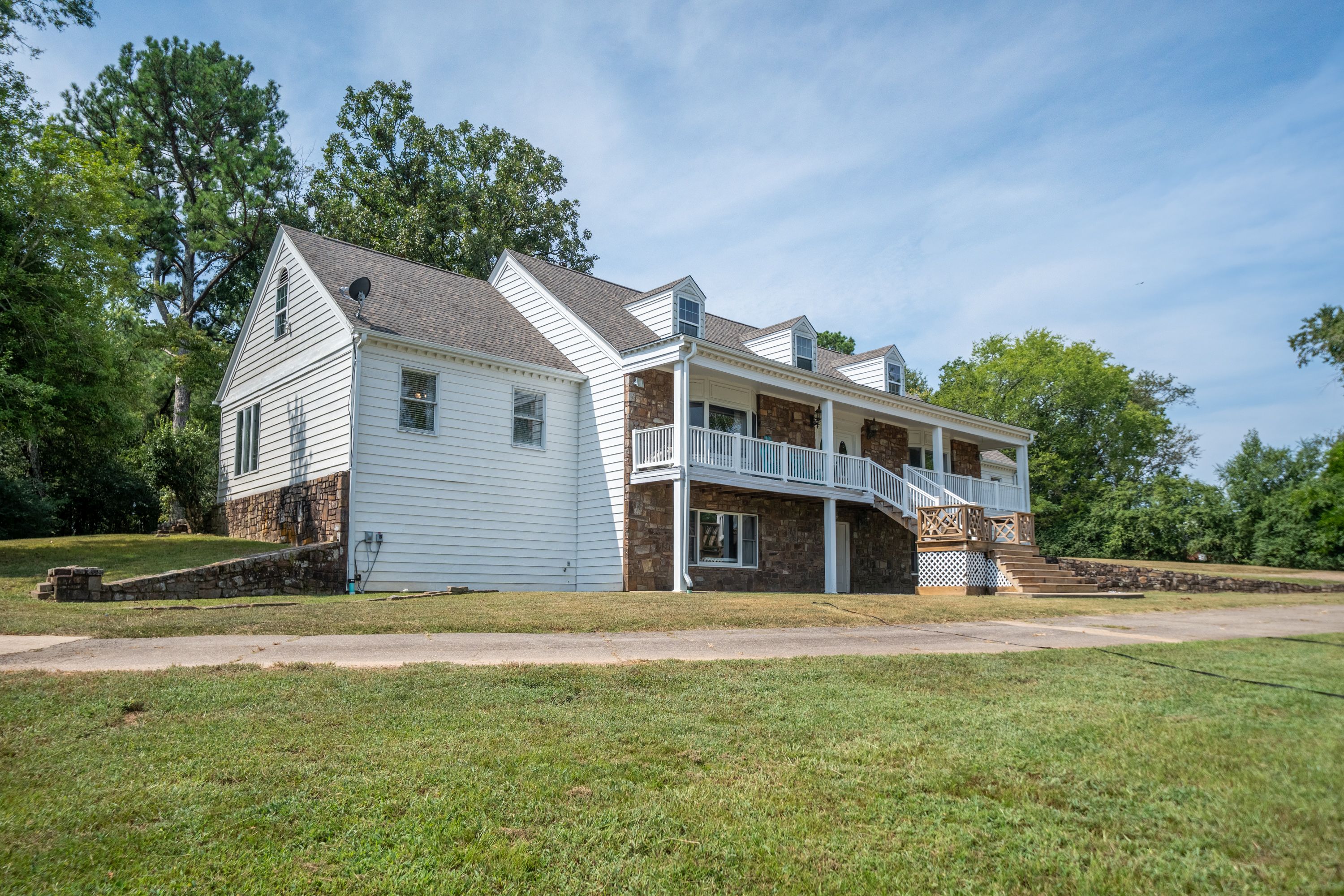 (TRACT 2) will Contain the 7,300+/- SF, 7 Bedroom/ 5.5 Bathroom, 3-Story, Rock & Metal Siding Exterior Home w/New Roof & 3-Car Attached Carport on 2.84+/- Acres ~ Move-in-Ready 3,220+/- SF Main Level Consists of an Entry Foyer w/Crystal Chandelier, Sunken Living Room w/Woodburning Fireplace, Den/2nd Living Area, Master Suite w/Private Bathroom, Tub, Separate Shower, Vanity Area & Multiple Closets, Kitchen w/Island, Built-in Appliances, Custom Cabinets & Pantry Closet, Dining Room, Laundry Room, Half Bath, 2nd & 3rd Bedrooms, 2nd Full Bathroom, Front & Back Covered & Uncovered Porches & Patios ~ 800+/- SF Upper-Level Consists of 3 Bedrooms, 2 Bathrooms & Ample Floored Attic Storage ~ Lower Level is a Partially Finished Full Basement w/a Bedroom, Bathroom Plumbed for a Tile Shower, Office/Theater Room, Tool Room/Hobby Room, 2nd Laundry Room & Tons of Storage Closets ~ Triple Zoned HVAC.