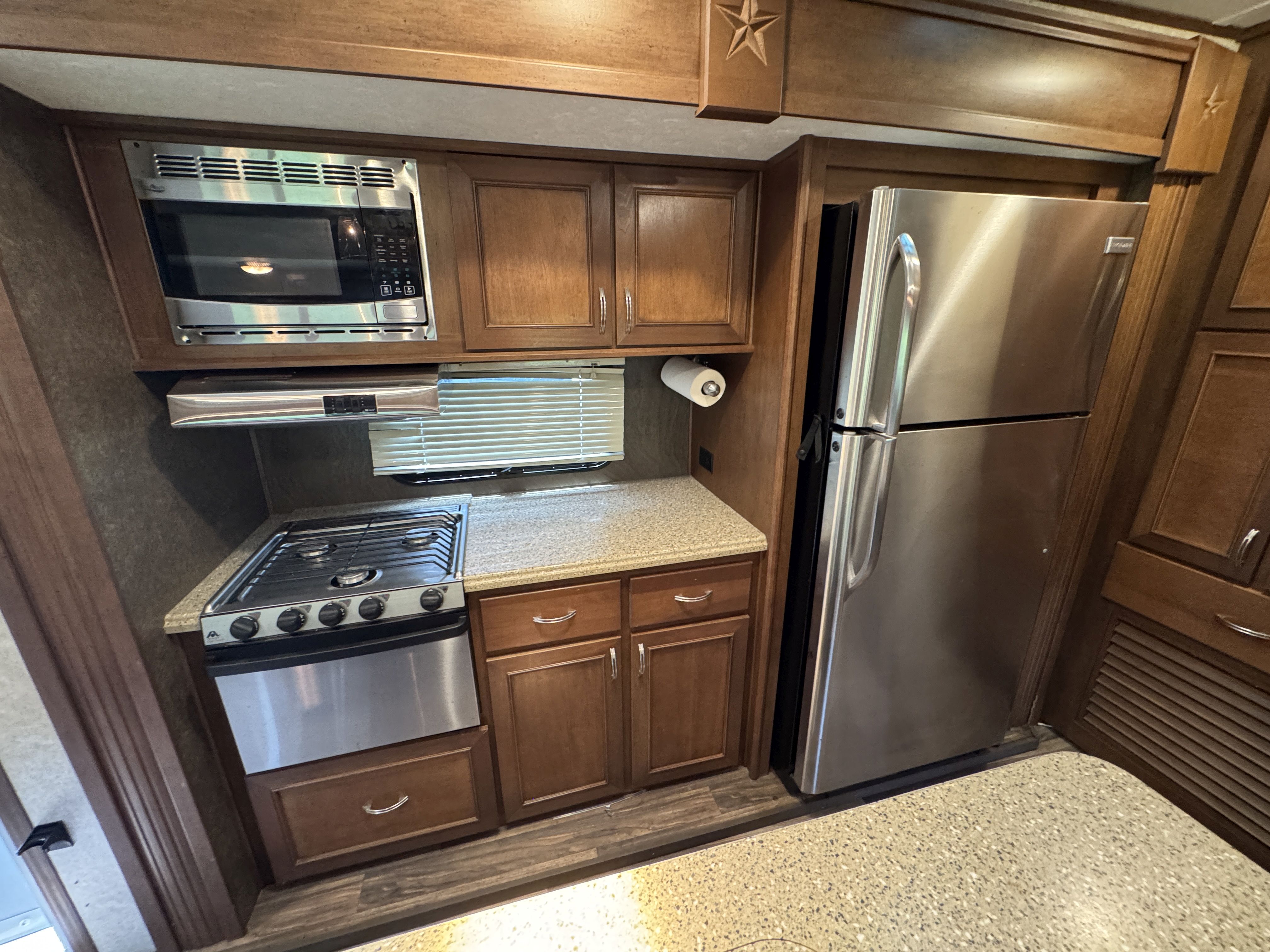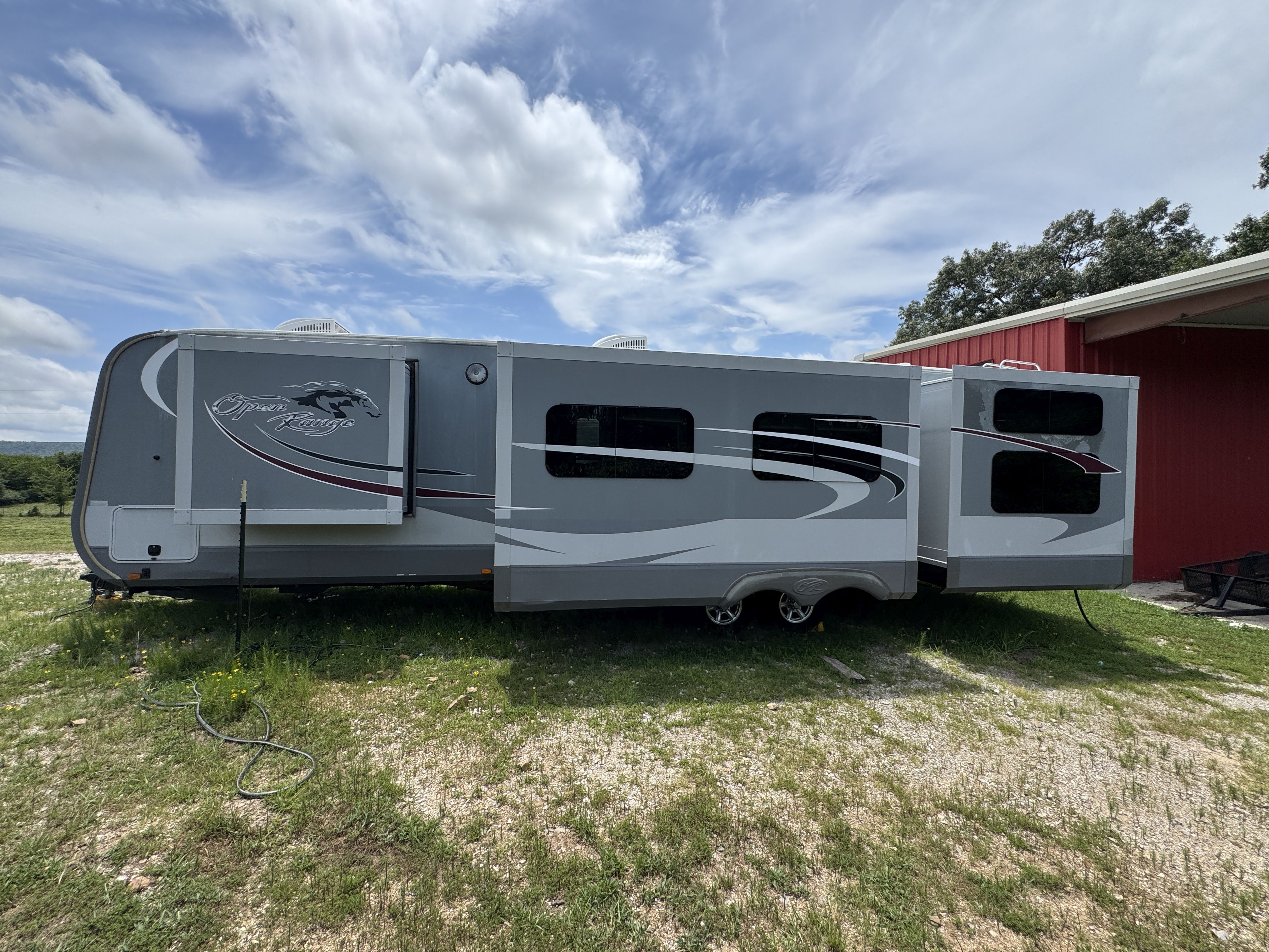 4 2017 Open Range 310BHS 32 Ft Bumper Pull Camper w/4 Slide Outs, Outside Entertaining Center
