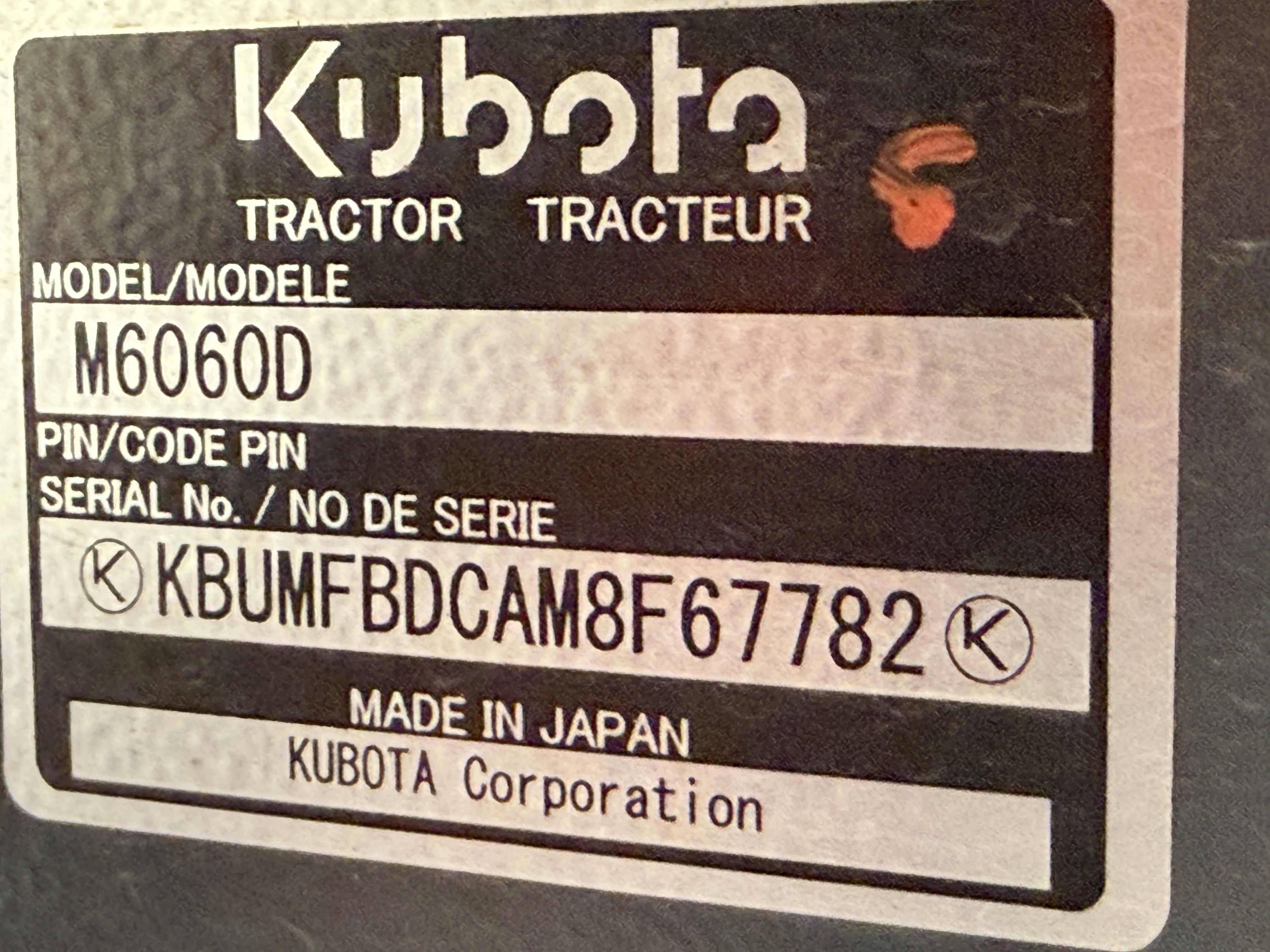 5 2022 Kubota M6060D, LA1154 Front End Loader, M1815 Bucket, 66HP 4WD, 56HP PTO, 8 Spd. Shuttle Shift Transmission, 70% Antifreeze in Rear Tires, 37 HOURS! Showroom Condition, Plastic Still on Seats, Extended Warranty. VIN KBUMFBDCAM8F67782