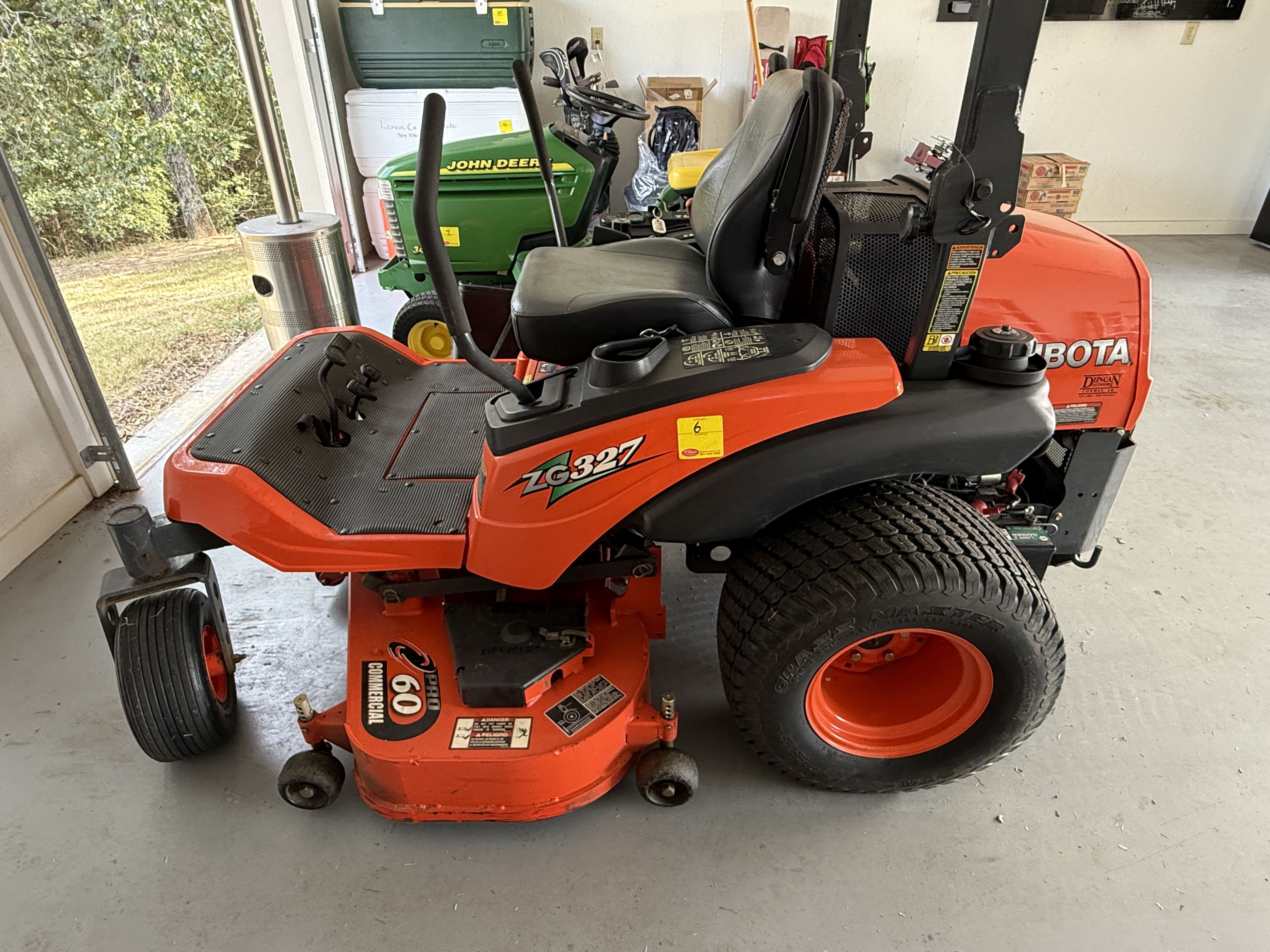 6 Kubota ZG 326 60" Commercial Grade Gas Zero Turn, Meticulously Maintained, SN 12878, Model RCK60P-327Z, 330 HRS,27HP KGZ 770 Engine Recent Service Included Blade Sharpening, Oil/Filter, Spark Plug, Air Filter, Fuel Filter. Amazing Condition