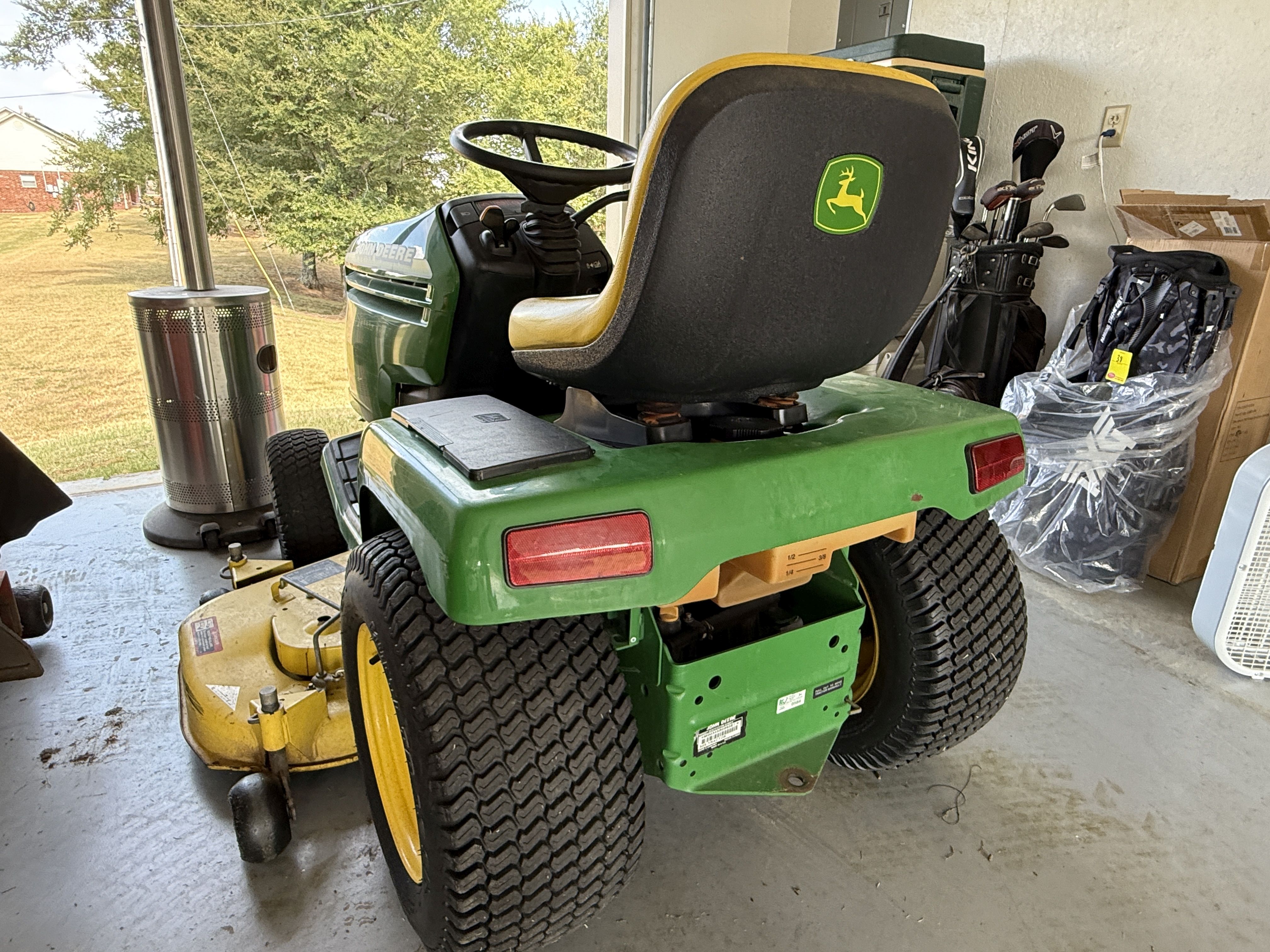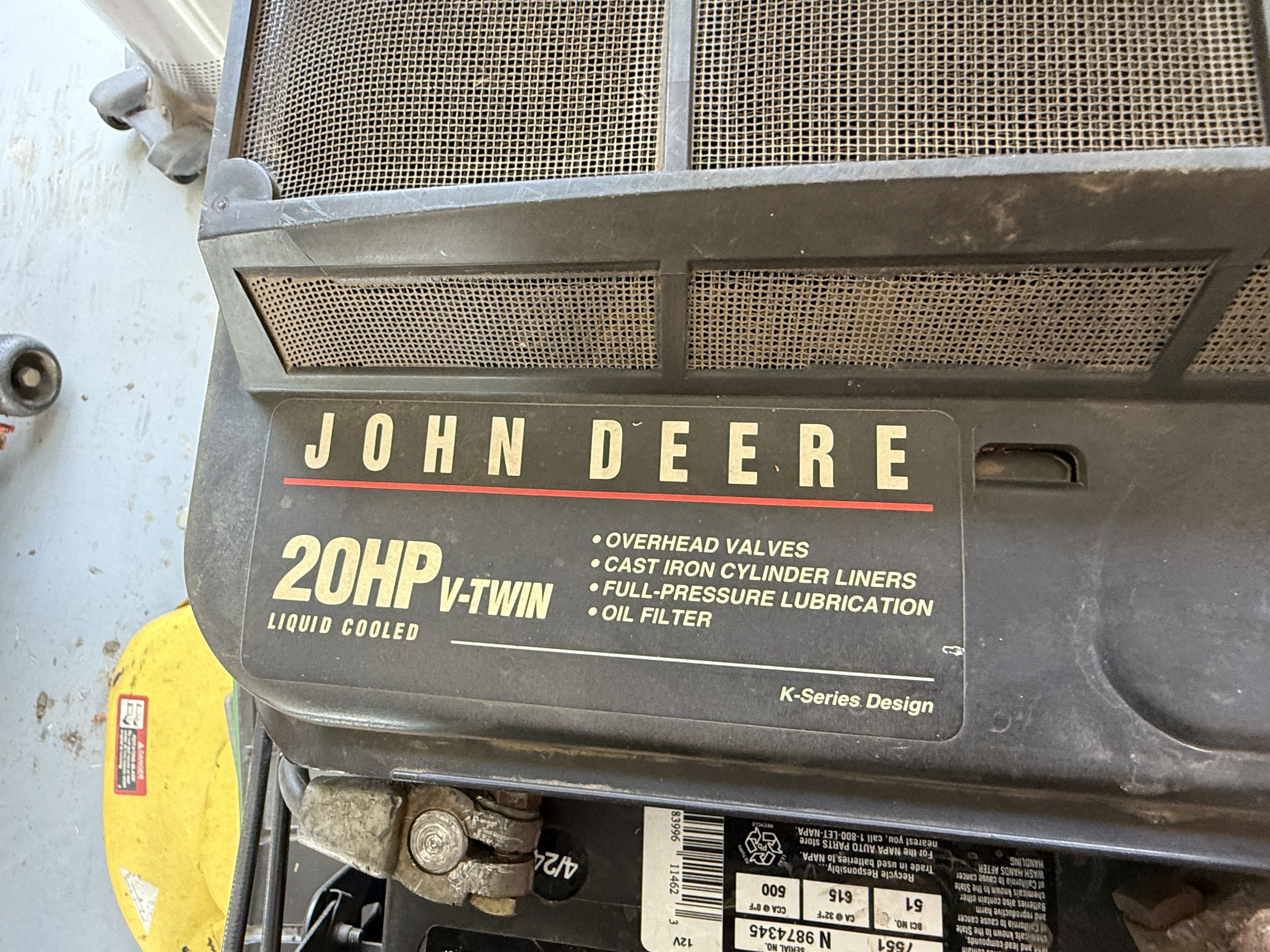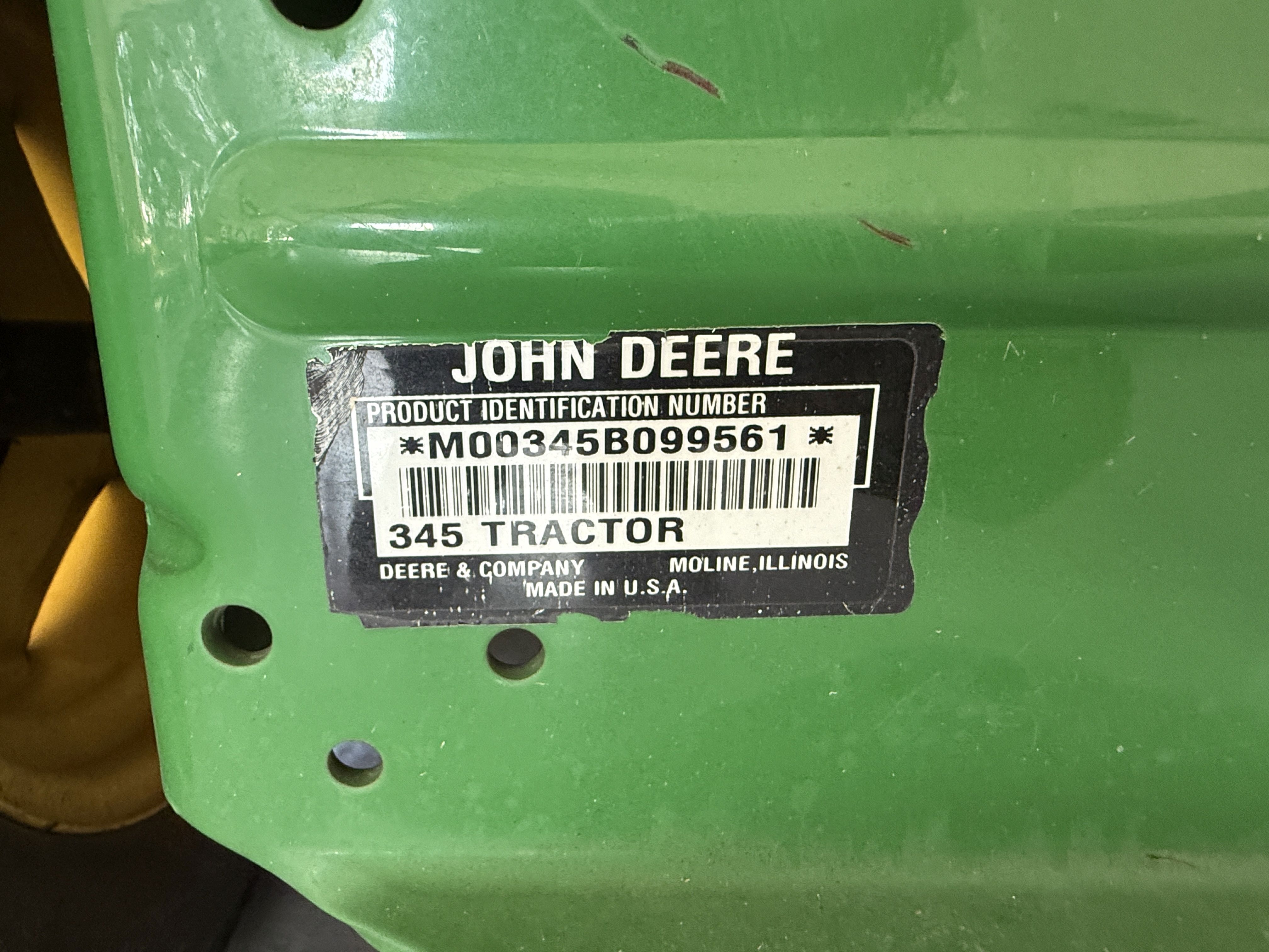 7 John Deere 345 Lawn Tractor, 54" Deck, 440Hrs, 20HP V Twin Liquid Cooled, Recent Service Includes, Clutch Replaced, Volt Regulator, Air/Oil/Fuel Filter, Spark Plug, Transmission Belt, Drive Belt, Pulleys. Strong & Clean Machine! VIN M00345B099561