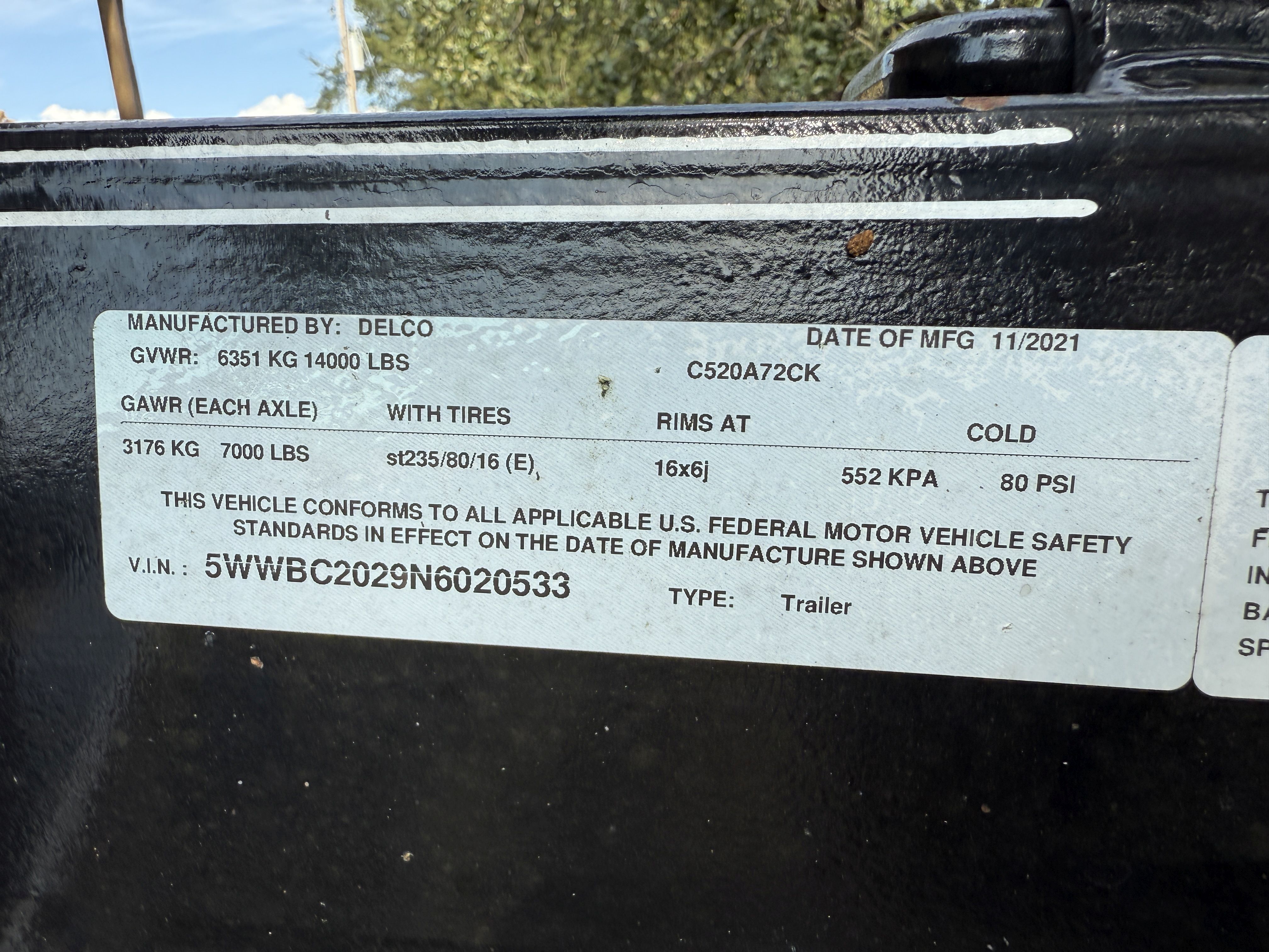 11 2021 Delco 20' Tractor Hauler, 7k axles, Breakaway Brake Kit, 83" Wide Deck, Used Less than 5 Times!