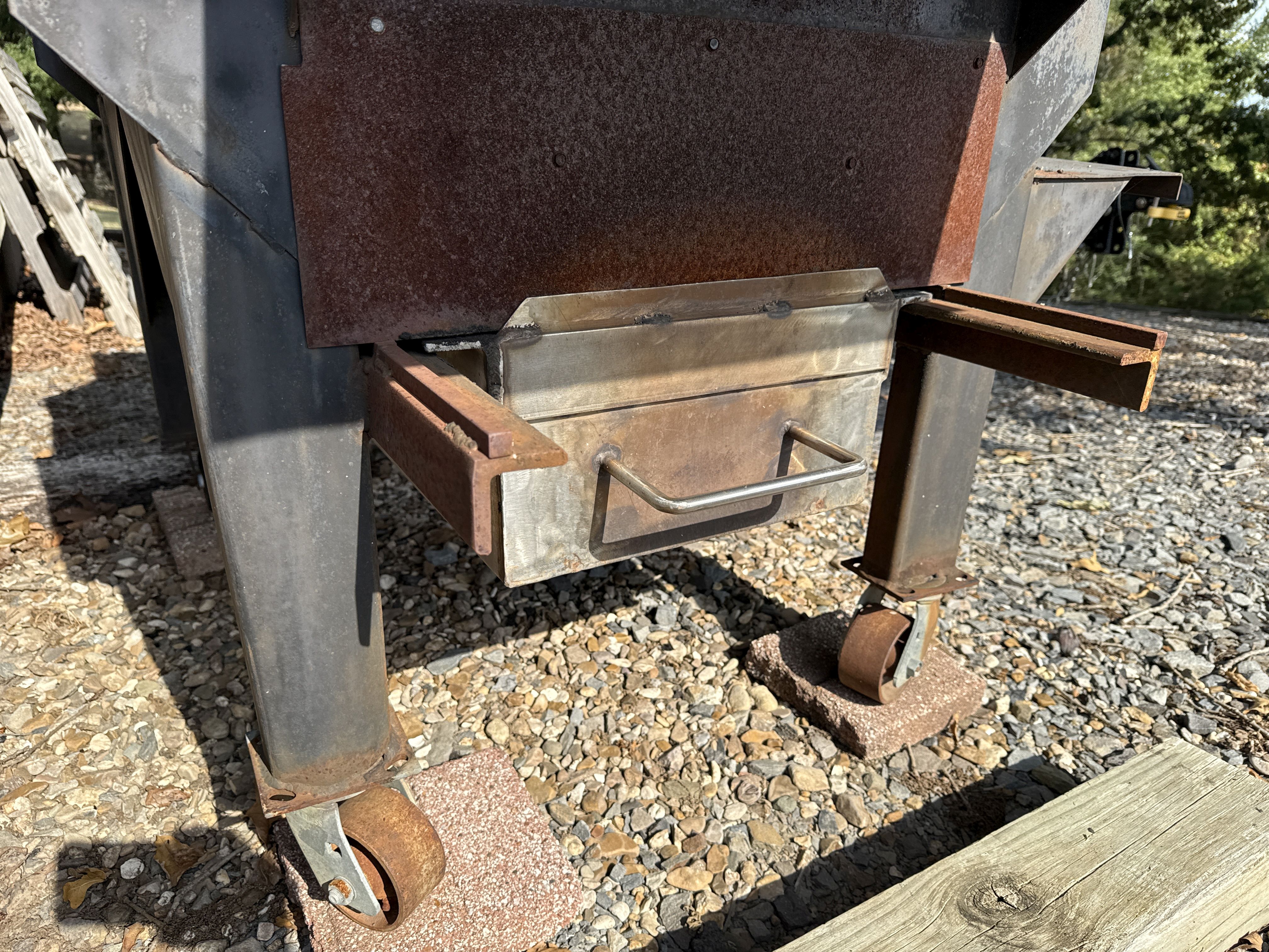 14 Custom Rotisserie Smoker with Working Motor, 3' Wide Boxes, Stainless Drain Pain, Upper Smoke Cabinet