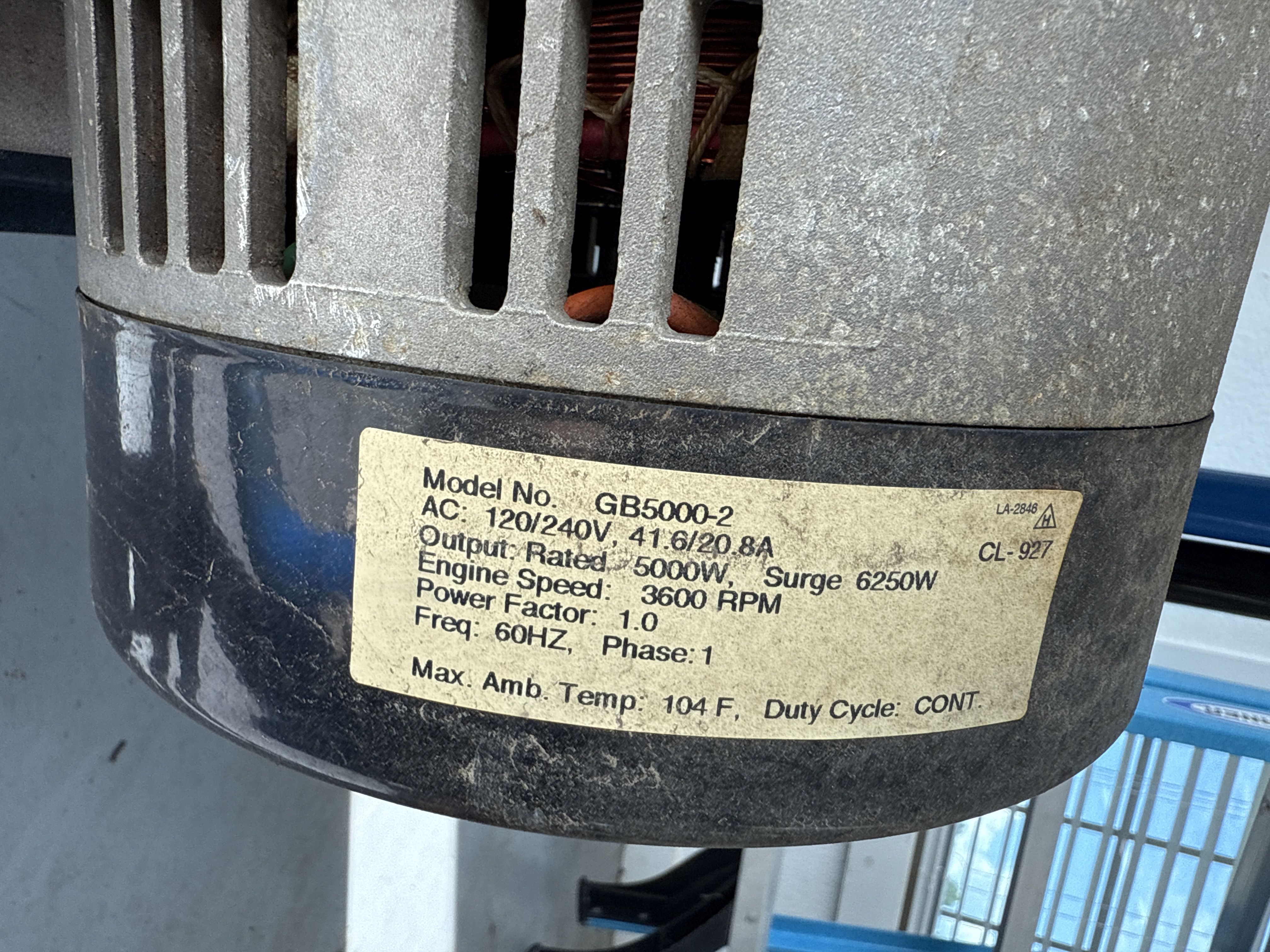 17 Briggs Generator Model GB5000-2 5000W Generator. Gen Power 10.0
