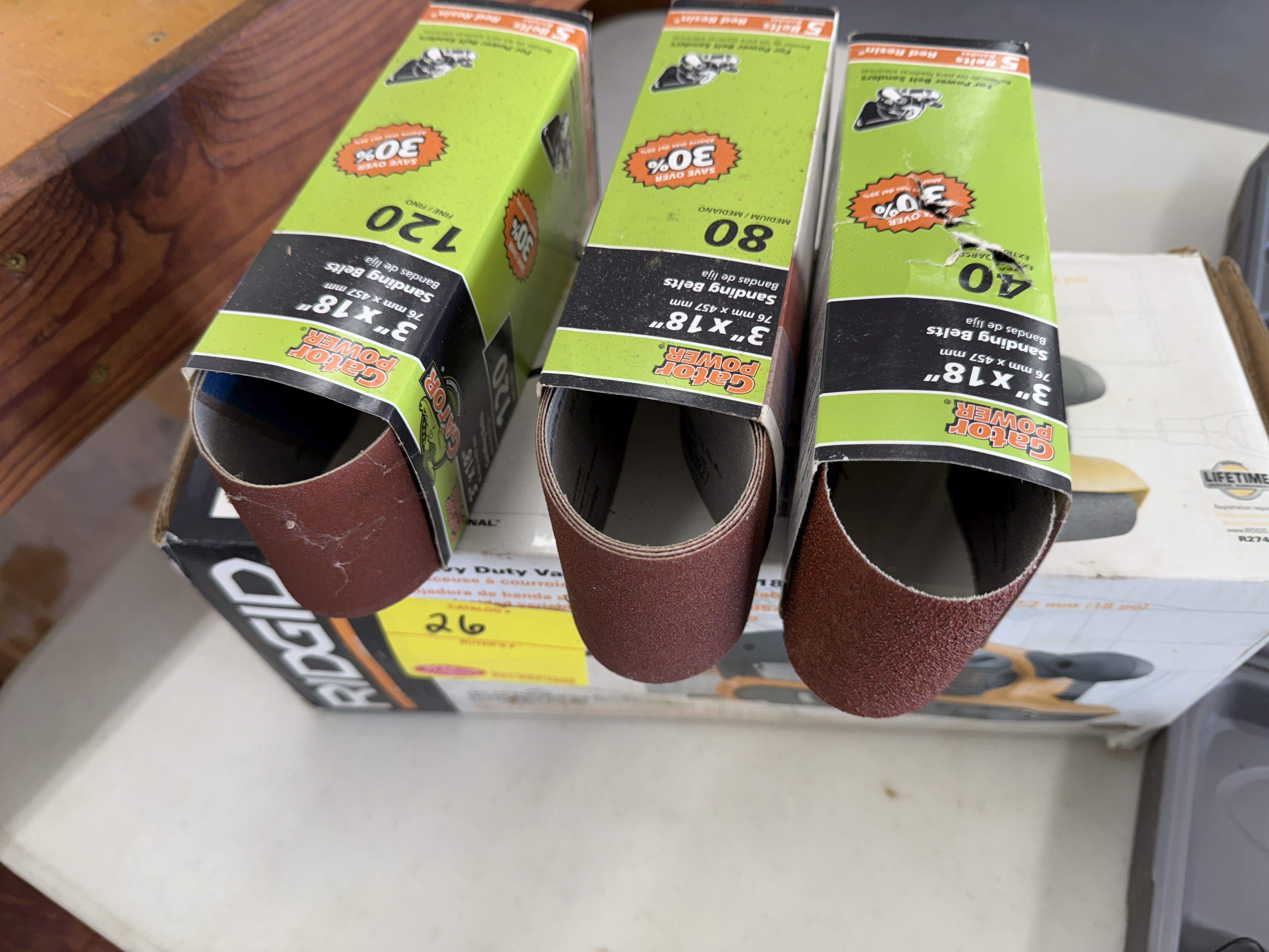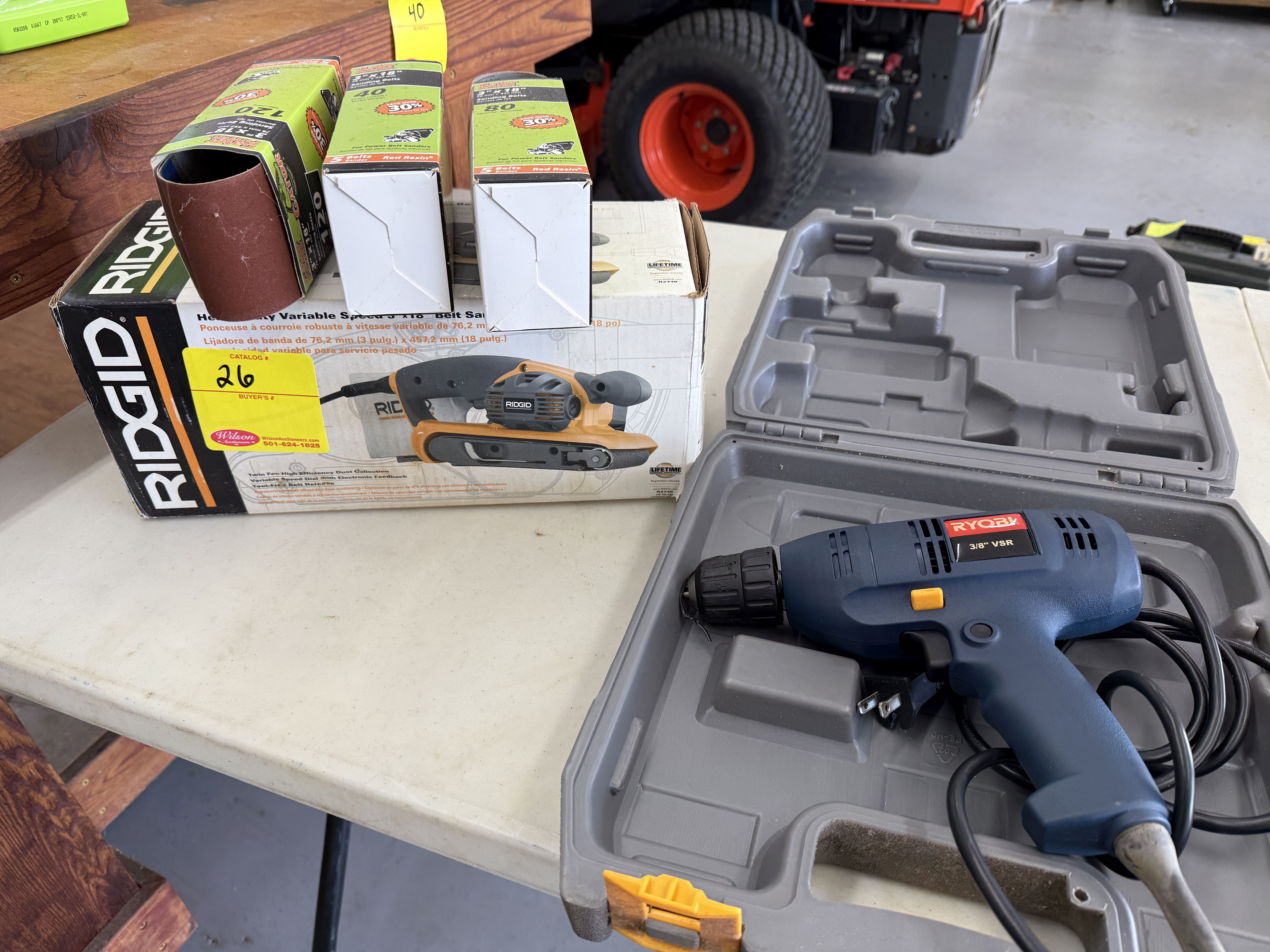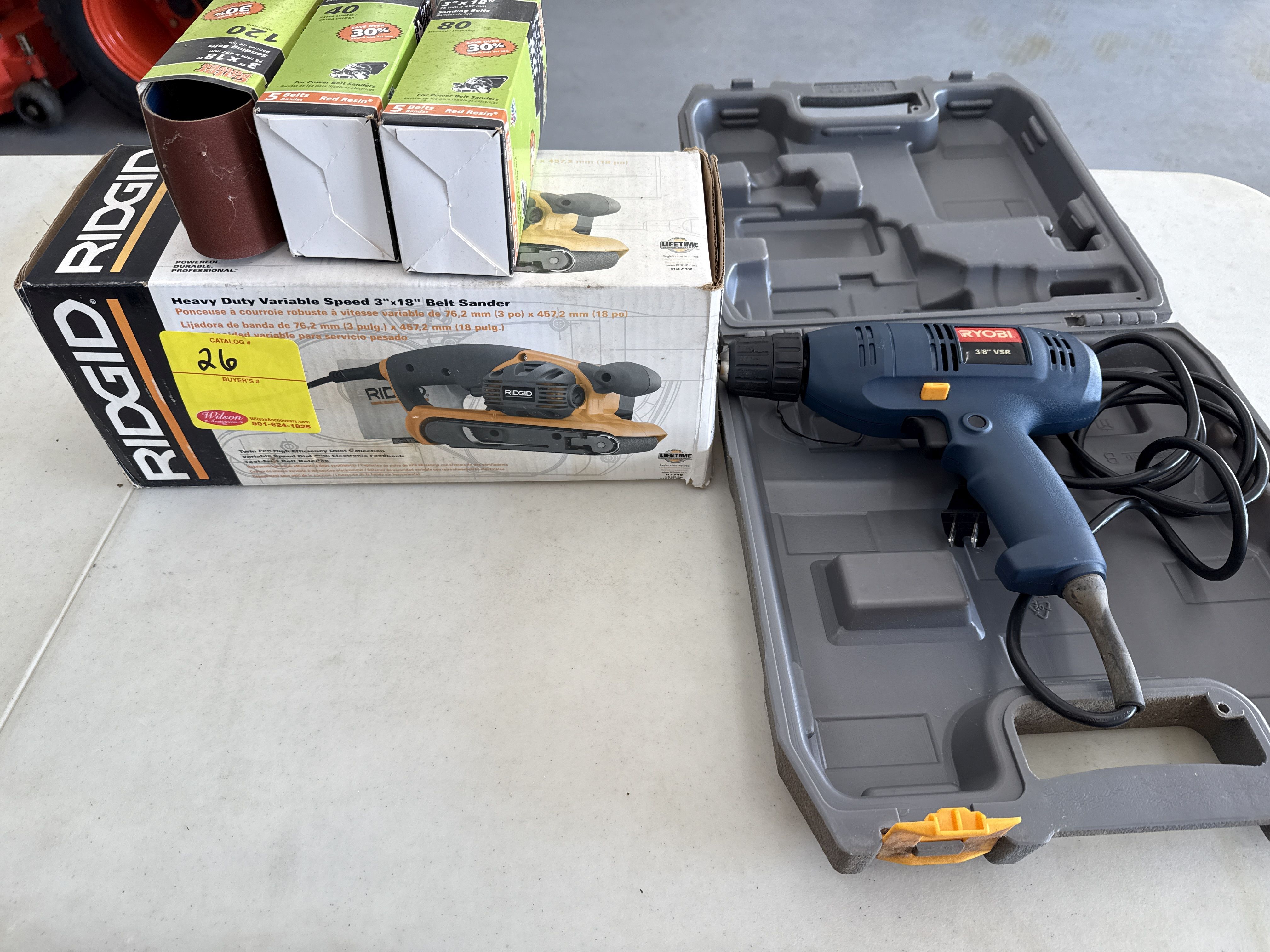 26 Rigid Belt Sander and Ryobi Corded Drill