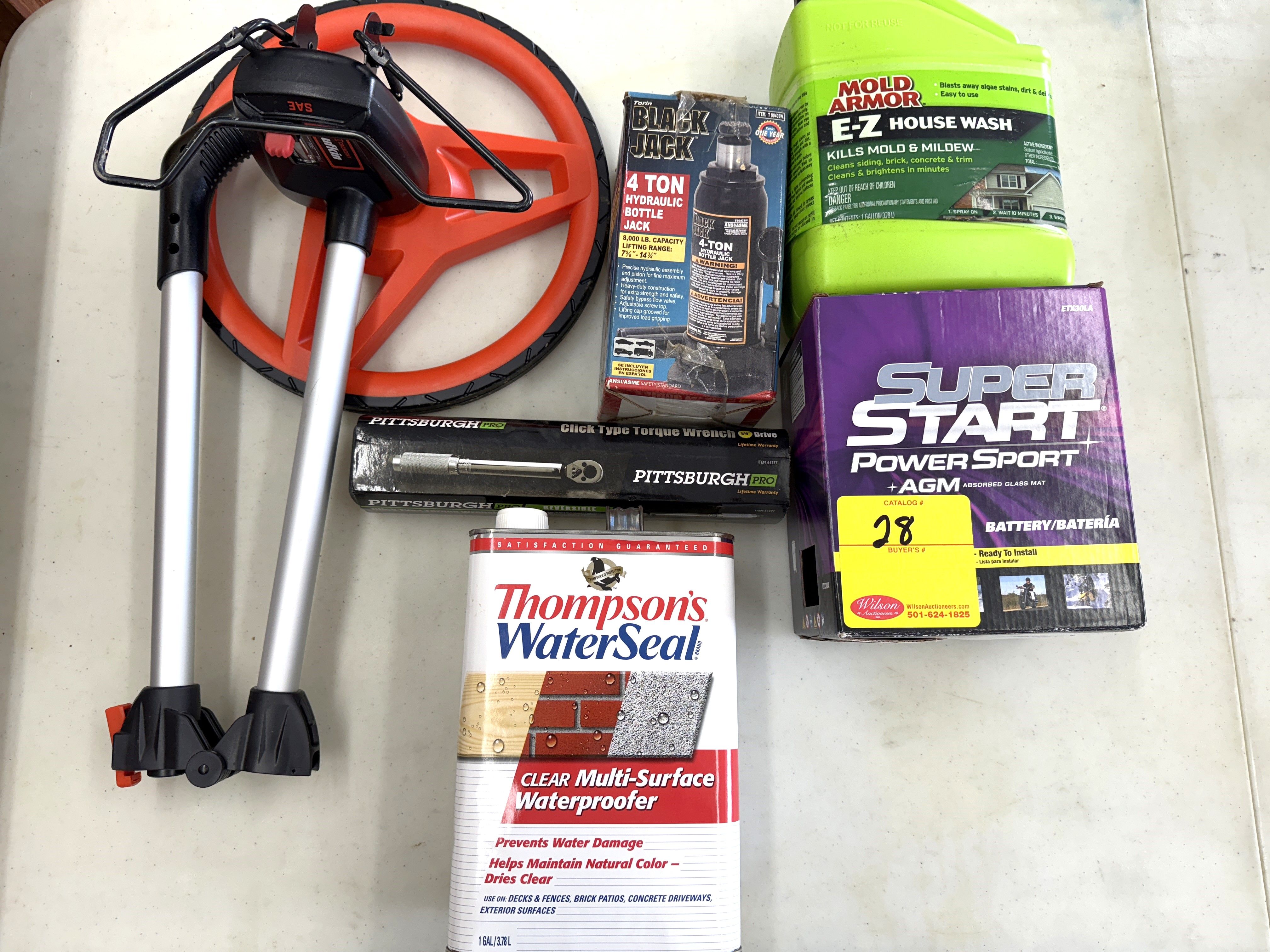 28 Measurement Wheel, Water seal, House Wash, New ATV Battery, Jack, Torque Wrench