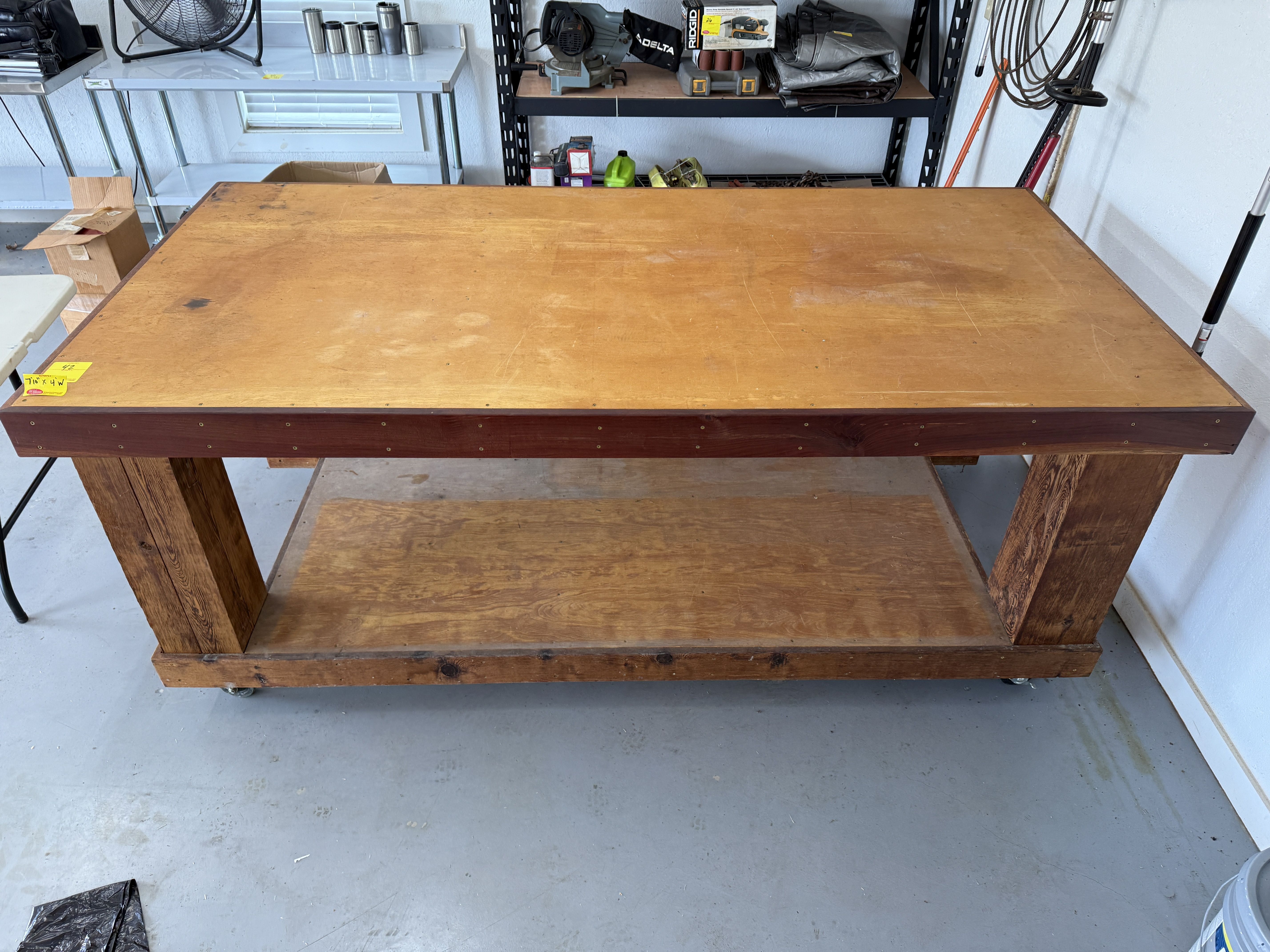 42 Heavy Duty Wooden Shop Table on Casters.