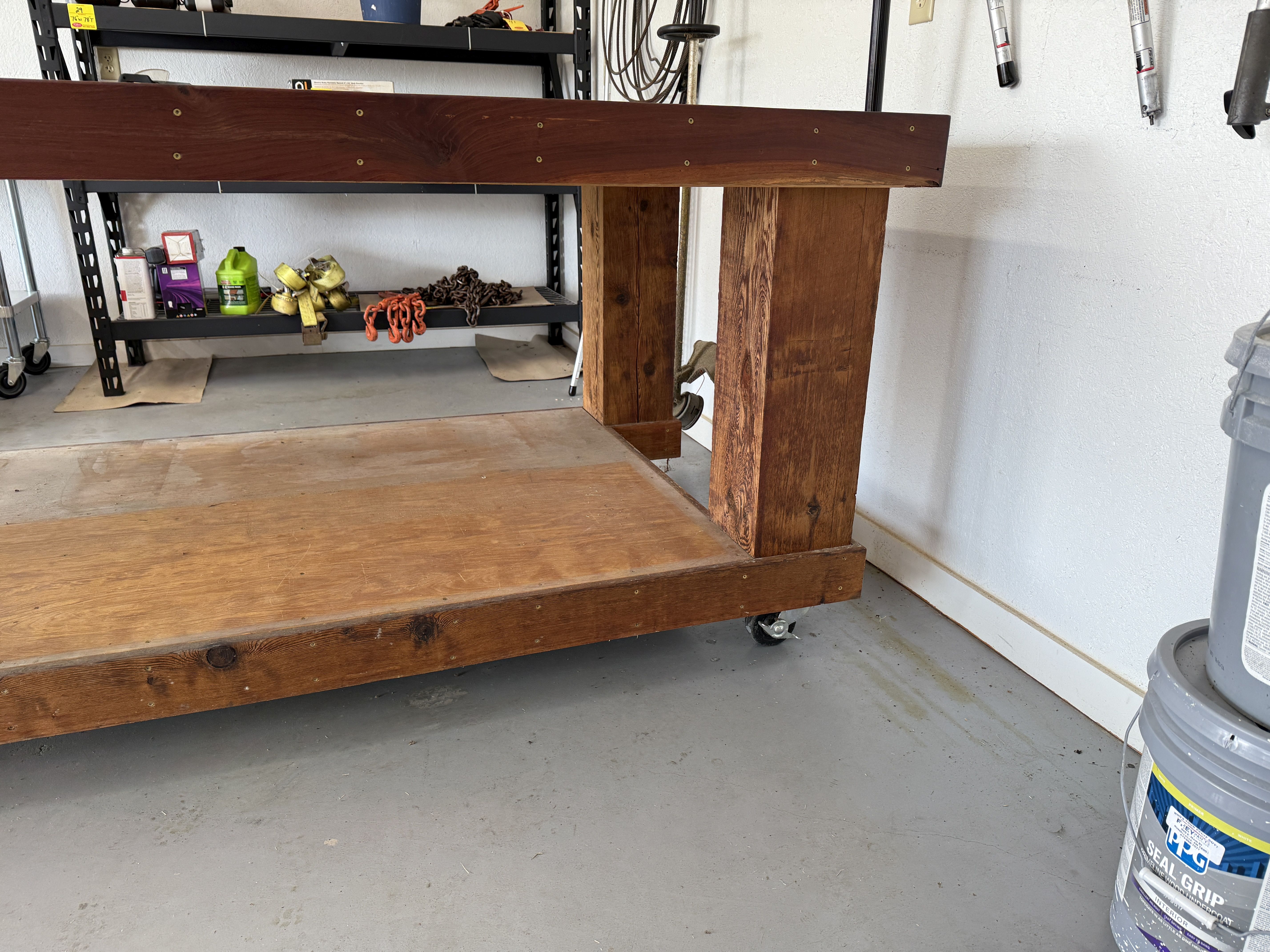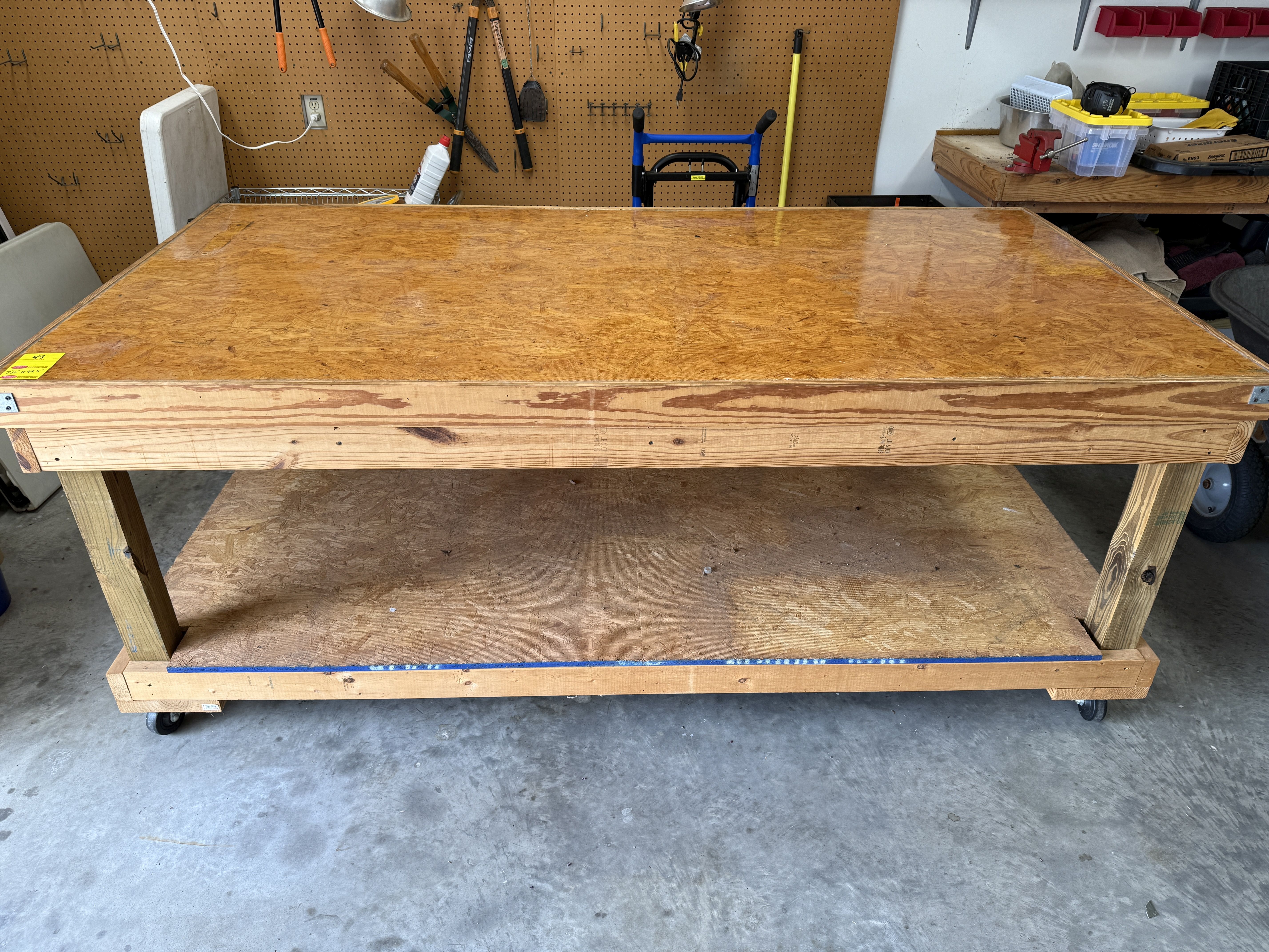 43 Heavy Duty Wooden Shop Table on Casters.