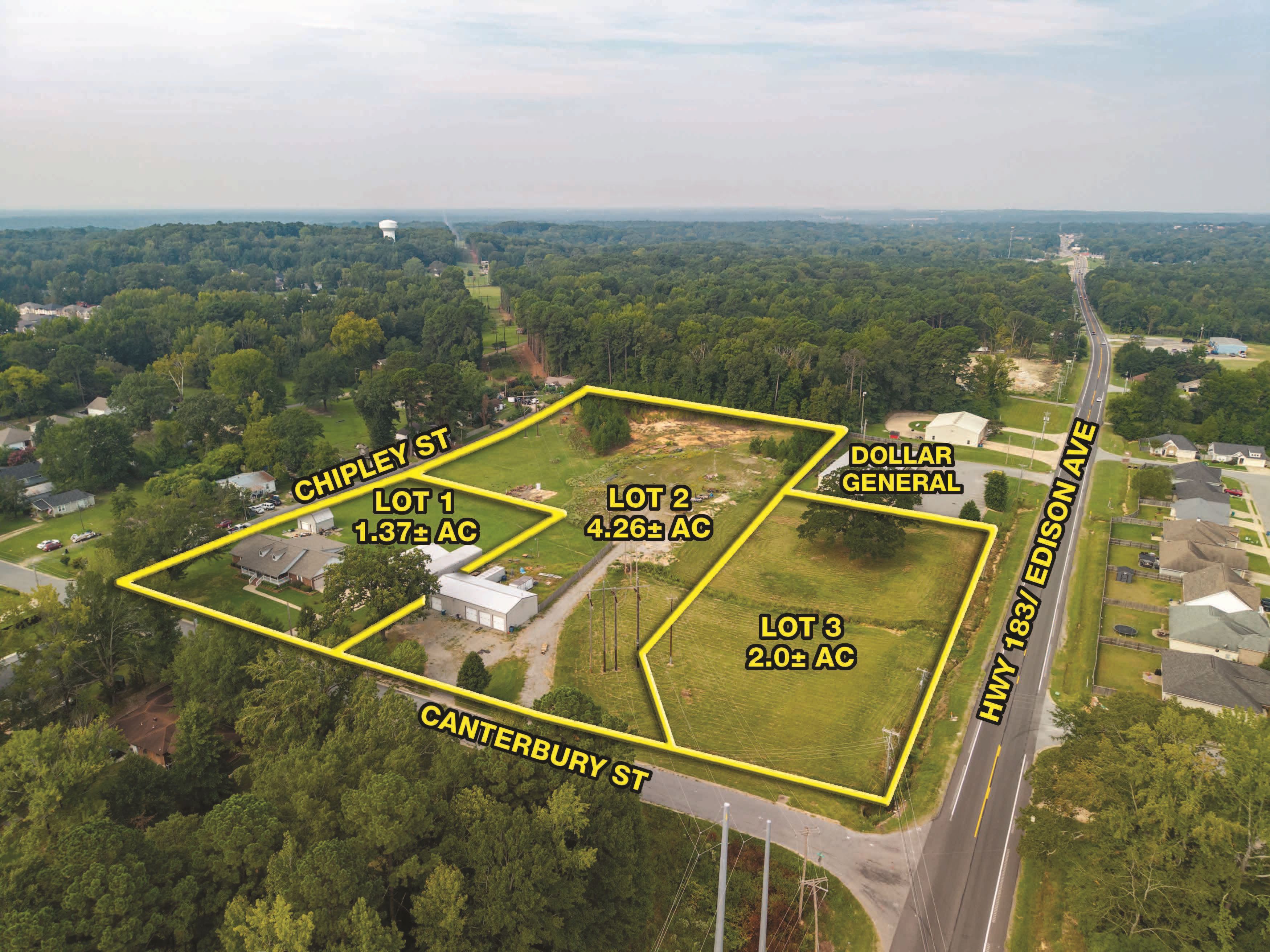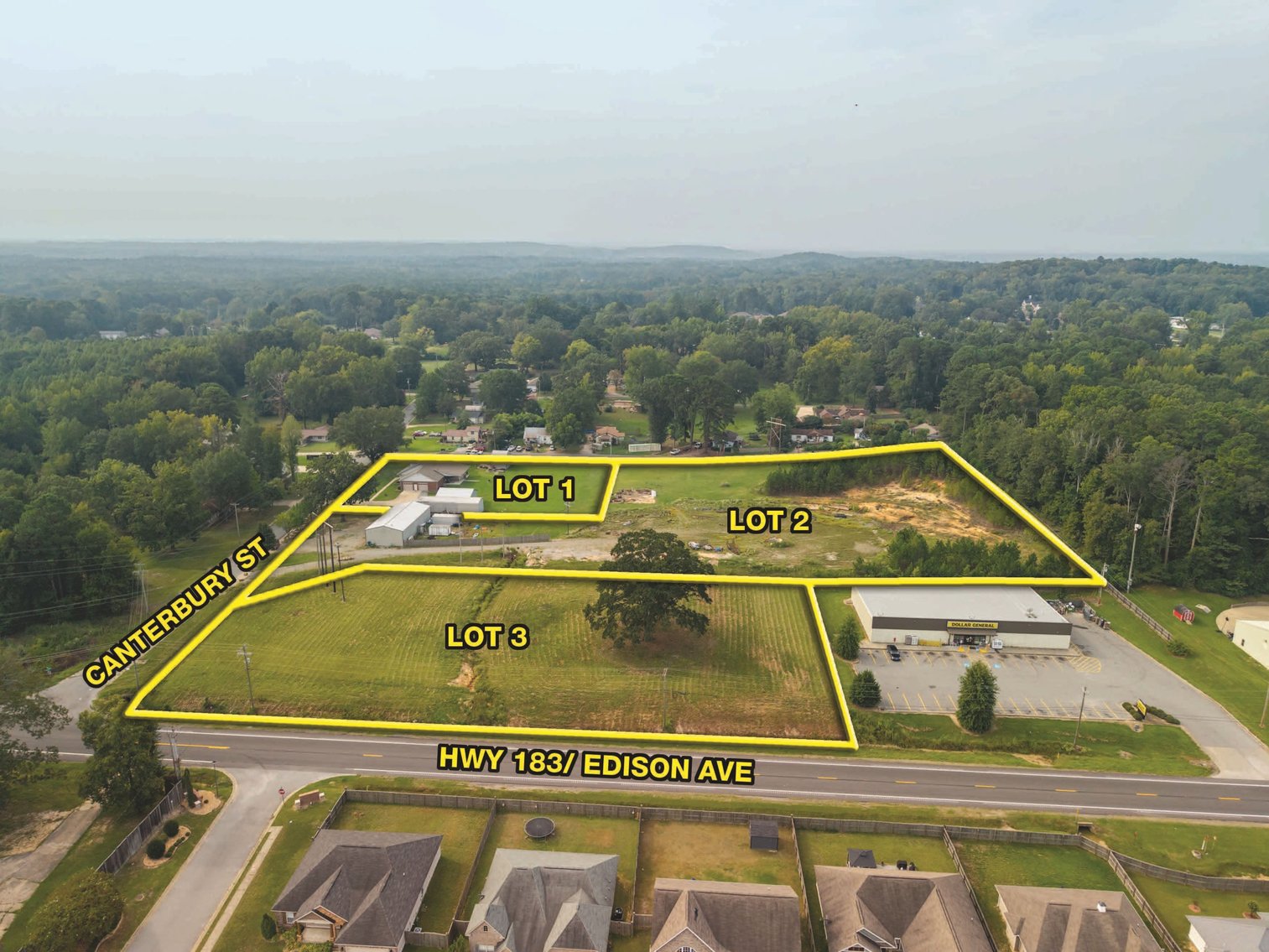 7.63± Acres w/Frontage on HWY 183/Edison Ave. & Canterbury Street Adjoining Dollar General ~ 2,558± SF, 3BR/ 3.5BA Brick Home & (3) Shop Buildings w/Overhead Doors ~ Offered in (3) Newly Surveyed Lots & Combinations ~ Benton School District ~ SELLING REGARDLESS OF PRICE TO THE HIGHEST BIDDER!