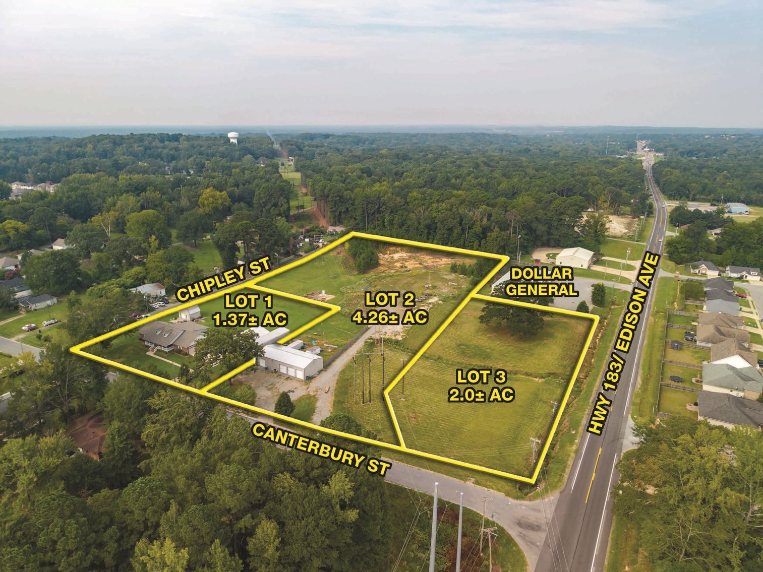 LOT DESCRIPTIONS: (LOT 1 ~ 1.37± Acres Currently Zoned R2) Corner Lot Containing the Home Fronting on Canterbury Street, Detached 30x33 Ft. Shop Building w/Overhead Door, Electricity, Interior Storage Closet & Workshop Area ~ Detached 16x20 Ft. Shop Building w/Overhead Door, Electricity & Attic Storage Room ~ Detached 15x60 Ft. RV Carport w/Full Hookups ~ Home w/New Roof in 2024, Consists of an Attached 24x38 Ft. 2-Car Garage w/ (2) Storage Closets & Additional Attic Storage, Covered Front Porch & New Covered Back Patio Ideal for Family Living ~ Recently Updated Living Space Includes a Large Living Room w/Hardwood Flooring & Crown Molding ~ Spacious Open Dining Room/Kitchen w/ 18” Ceramic Tile Flooring, Granite Countertops, Huge Kitchen Island, S/S Appliances, Solid Wood Cabinetry & Walk-in Pantry Closet ~ (2) Master Suites w/En-Suite Bathrooms & Walk-in Closets ~ 3rd Bedroom w/ (2) Wardrobe Closets ~ 3rd Full Bathroom ~ Laundry Room w/Toilet, Sink, Folding Table & Hanging Rod ~ Coat Closet ~ (LOT 2 ~ 4.26± Acres Currently Zoned C1/R2) has Excellent Development Potential (Perfect for Mini Storage Units) w/Entrances & Frontage on Canterbury Street & Chipley Street ~ Containing the 2,400± SF Metal Shop Building w/ 4 Overhead Doors, Loft Storage Areas, Heavy Duty Electric, Gas Heat, Bathroom w/Shower & Plumbed w/Compressed Air, Perfect for Hobbies, Equipment Storage or Business Use ~ (LOT 3 ~ 2.0± Acres Currently Zoned R2) Corner Development Lot w/ 450± Ft. of HWY 183/Edison Ave. Frontage & 116± Ft. of Canterbury Street Frontage ~ Adjoining Dollar General w/an Average Daily Traffic Count of 8,100± VPD ~ Cleared, Level & Ready to Build with City Utilities.
