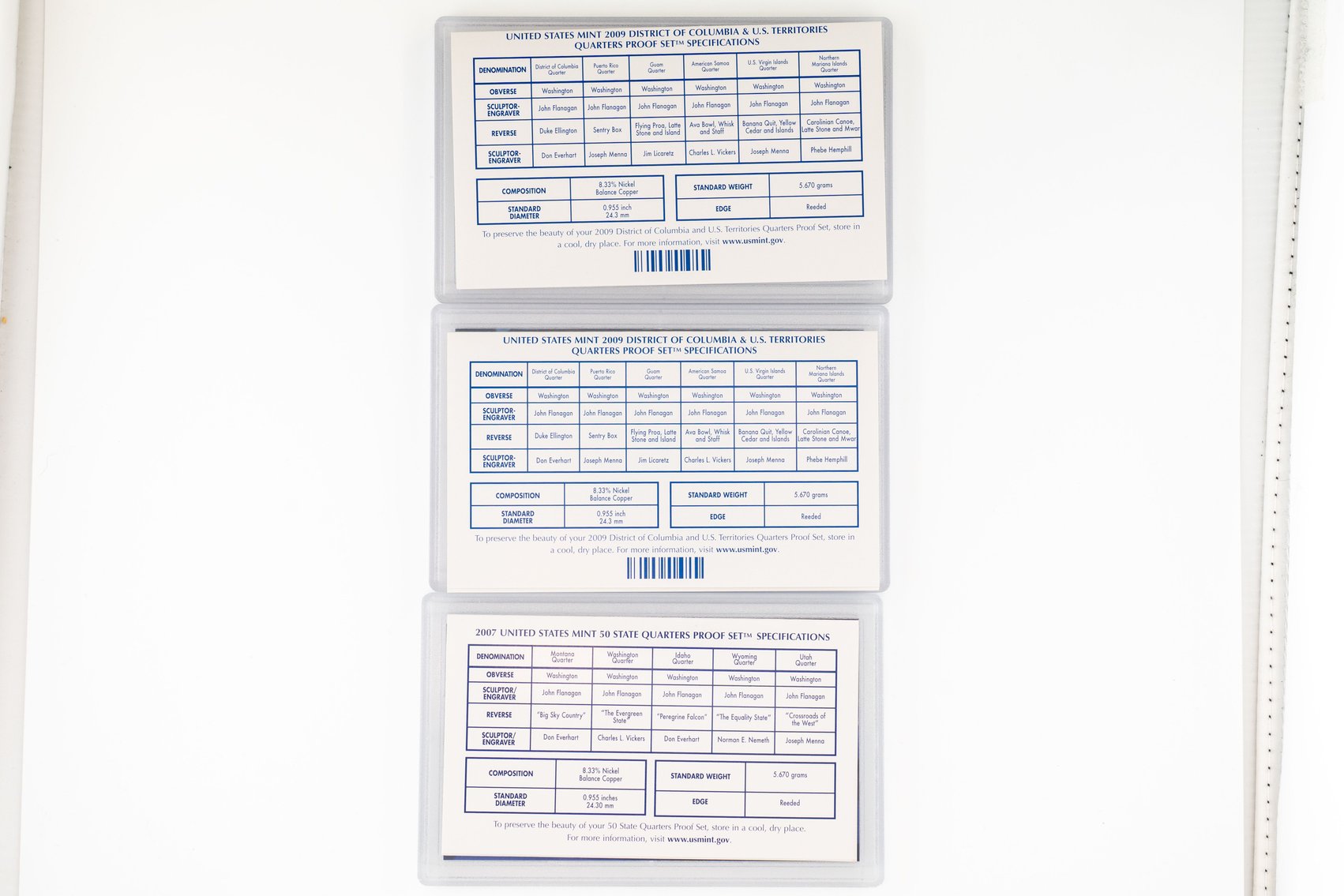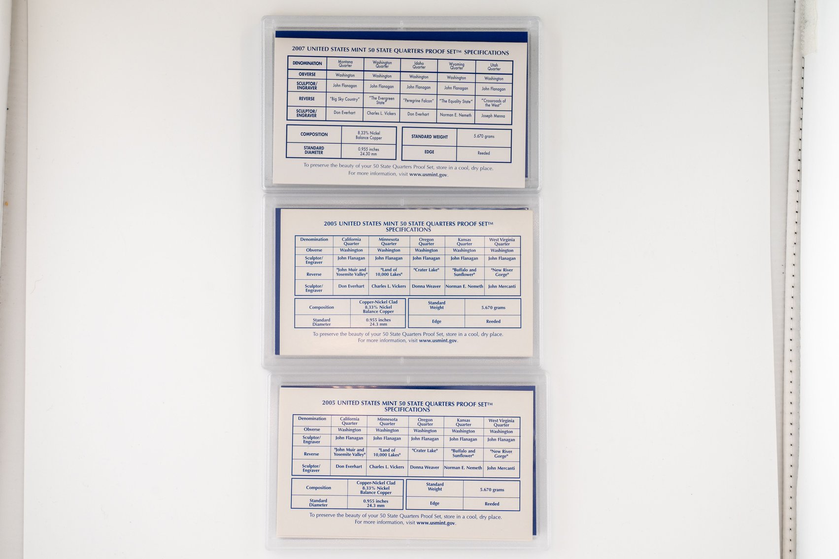 5 (6) Sets US Mint 50 State Quarter Proof Sets, 2005, 2007, 2009