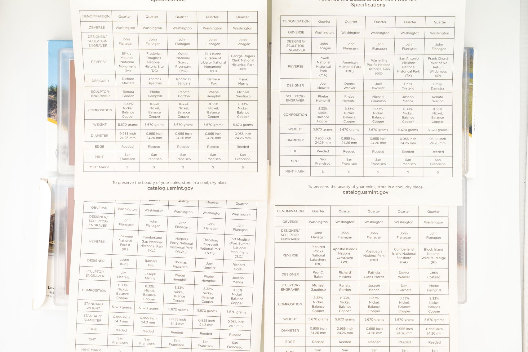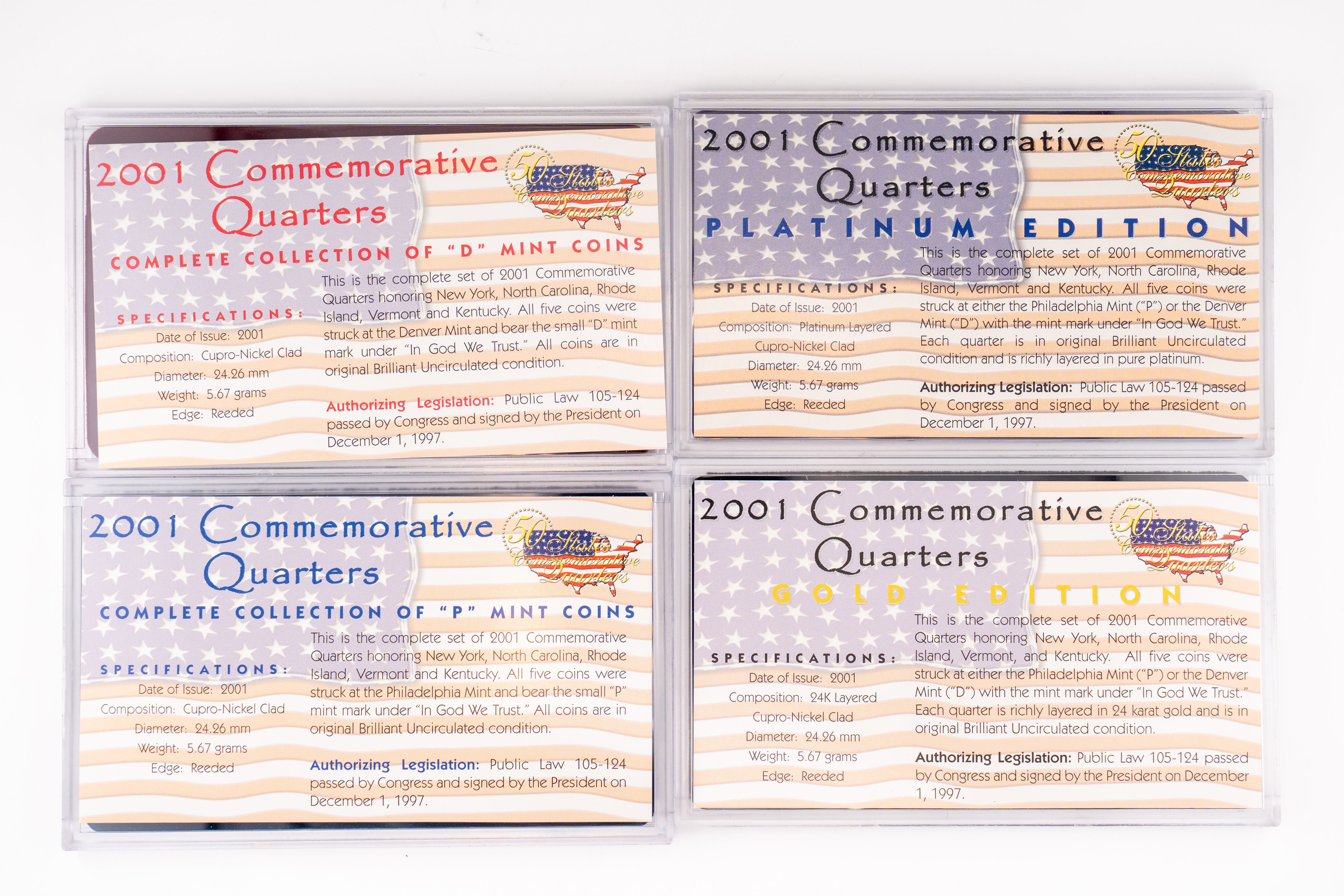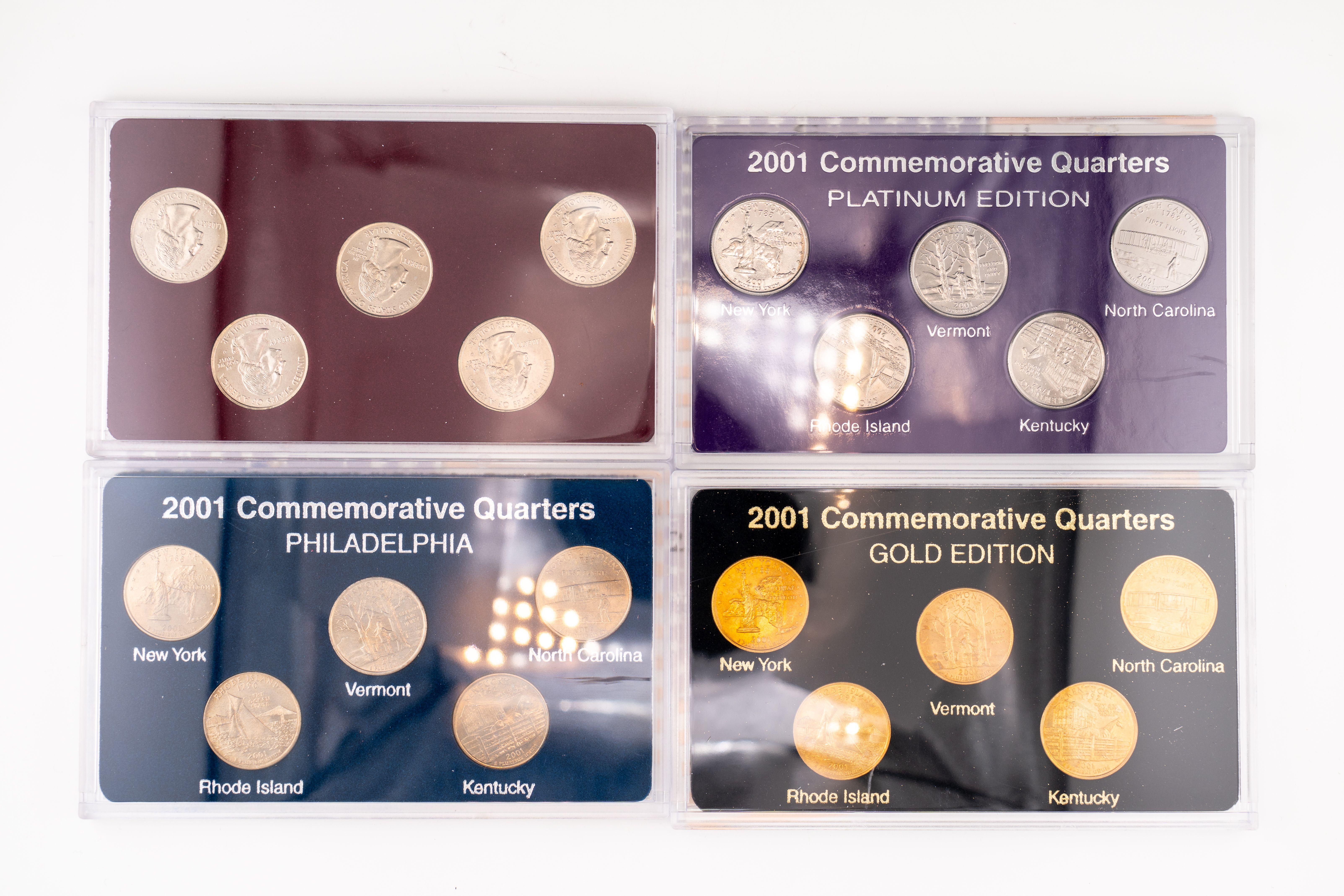 10 (4) Sets US Mint 2001 Commemorative Quarters, Denver, Philadelphia Gold, Platinum Editions
