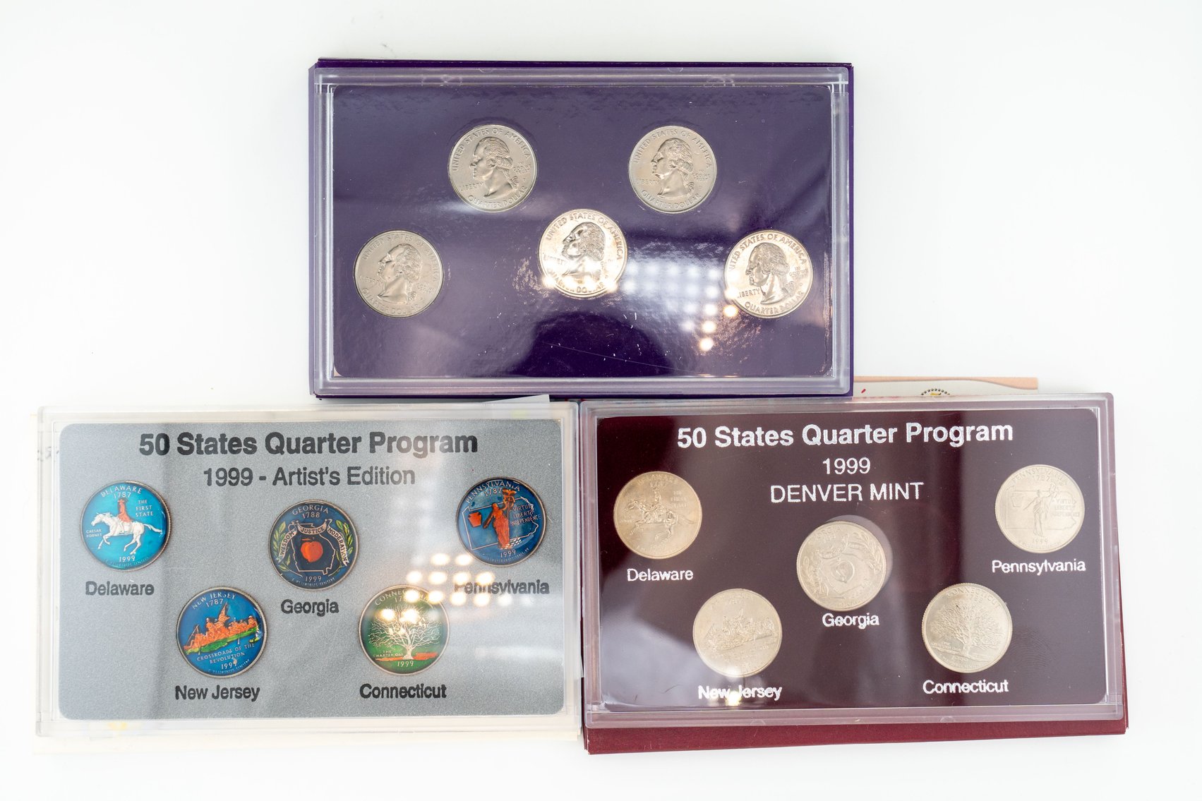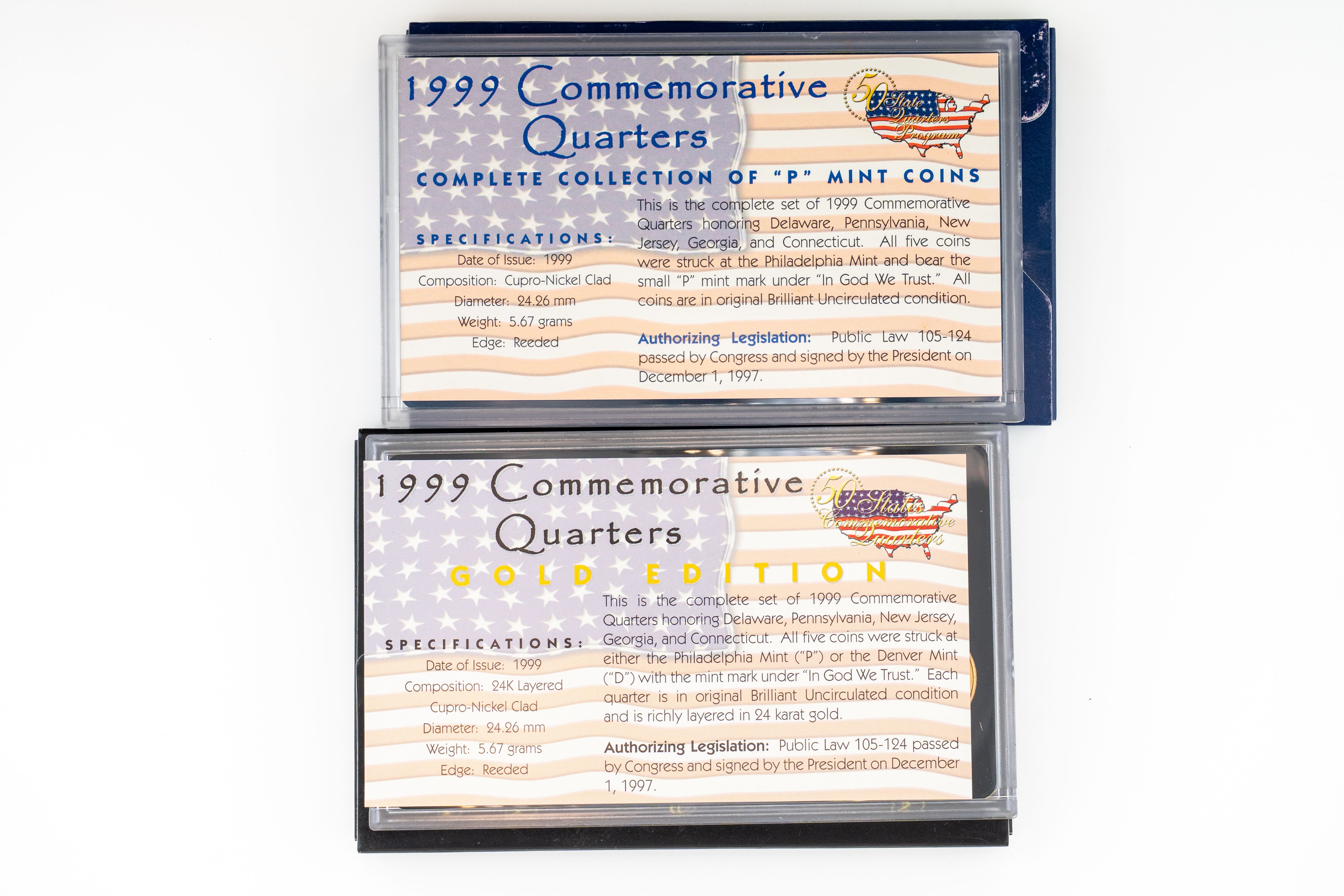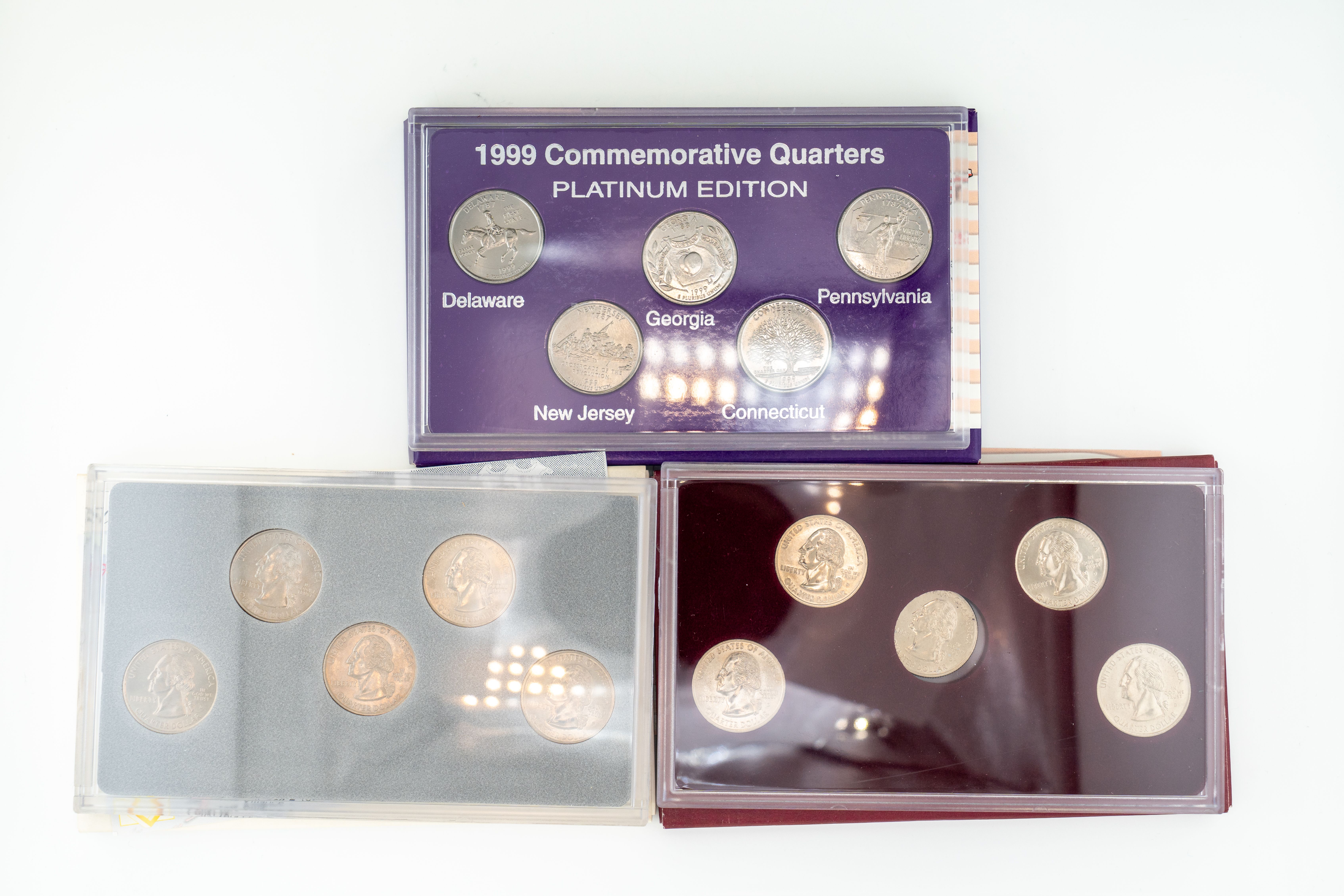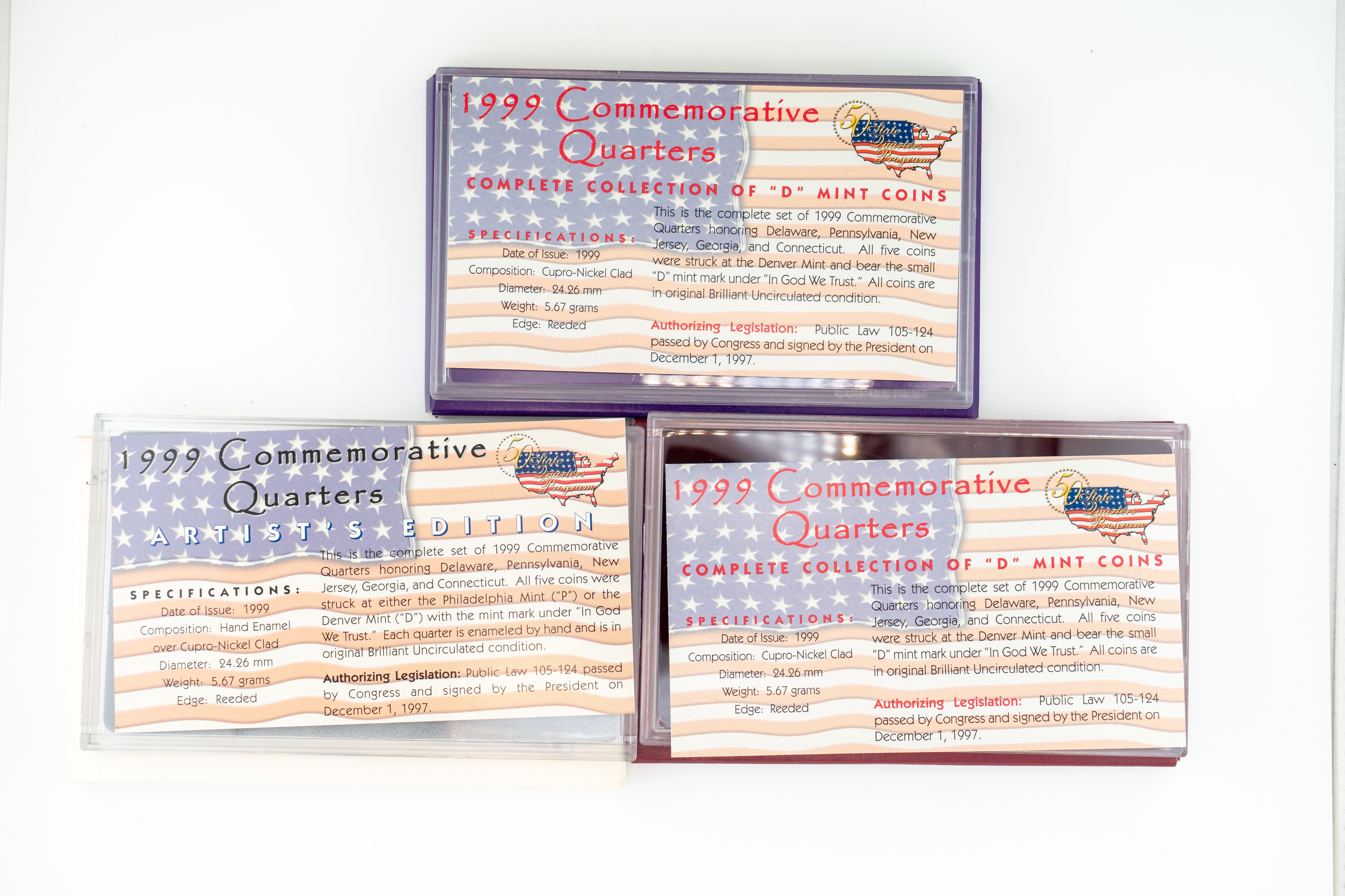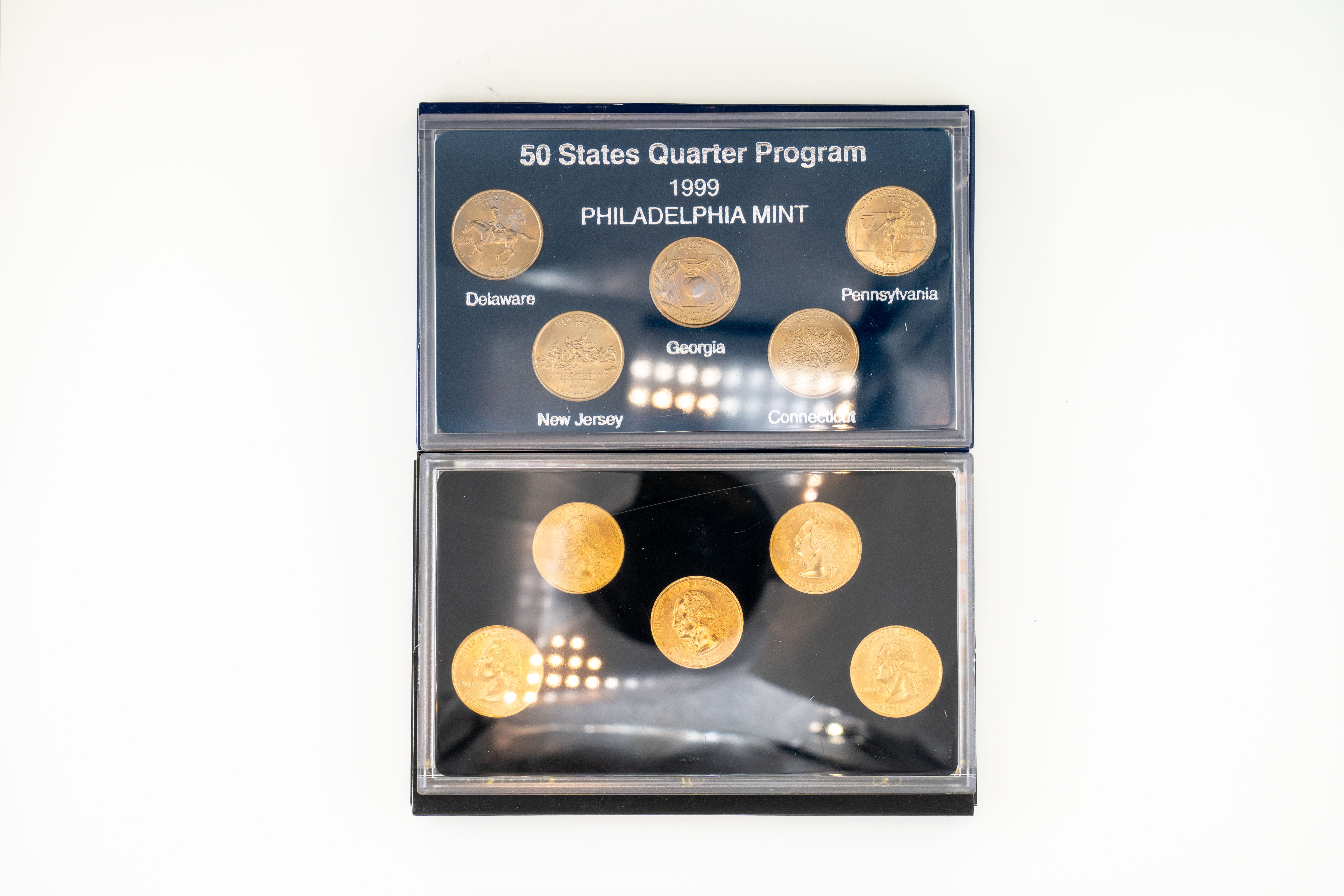 8 (5) Sets US Mint 1999 Commemorative Quarters, Philadelphia, Denver, Gold, Platinum and Artists Edition