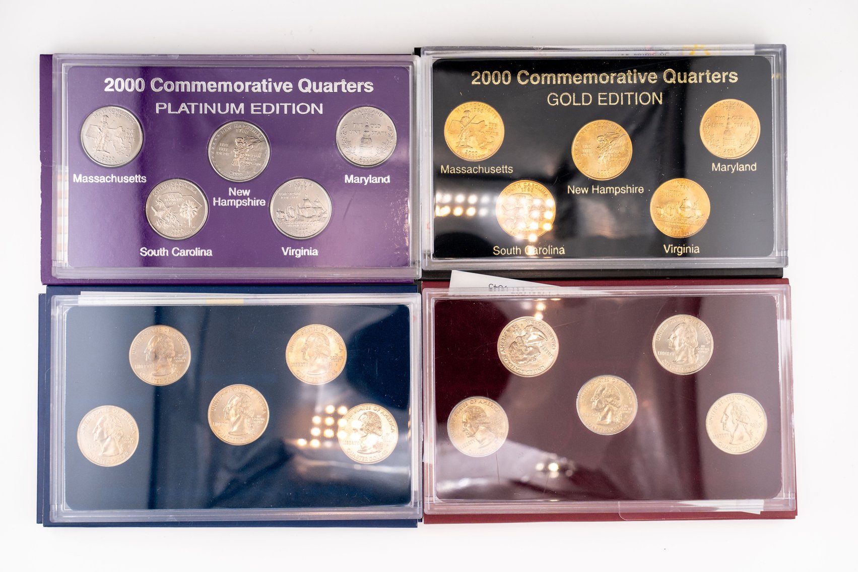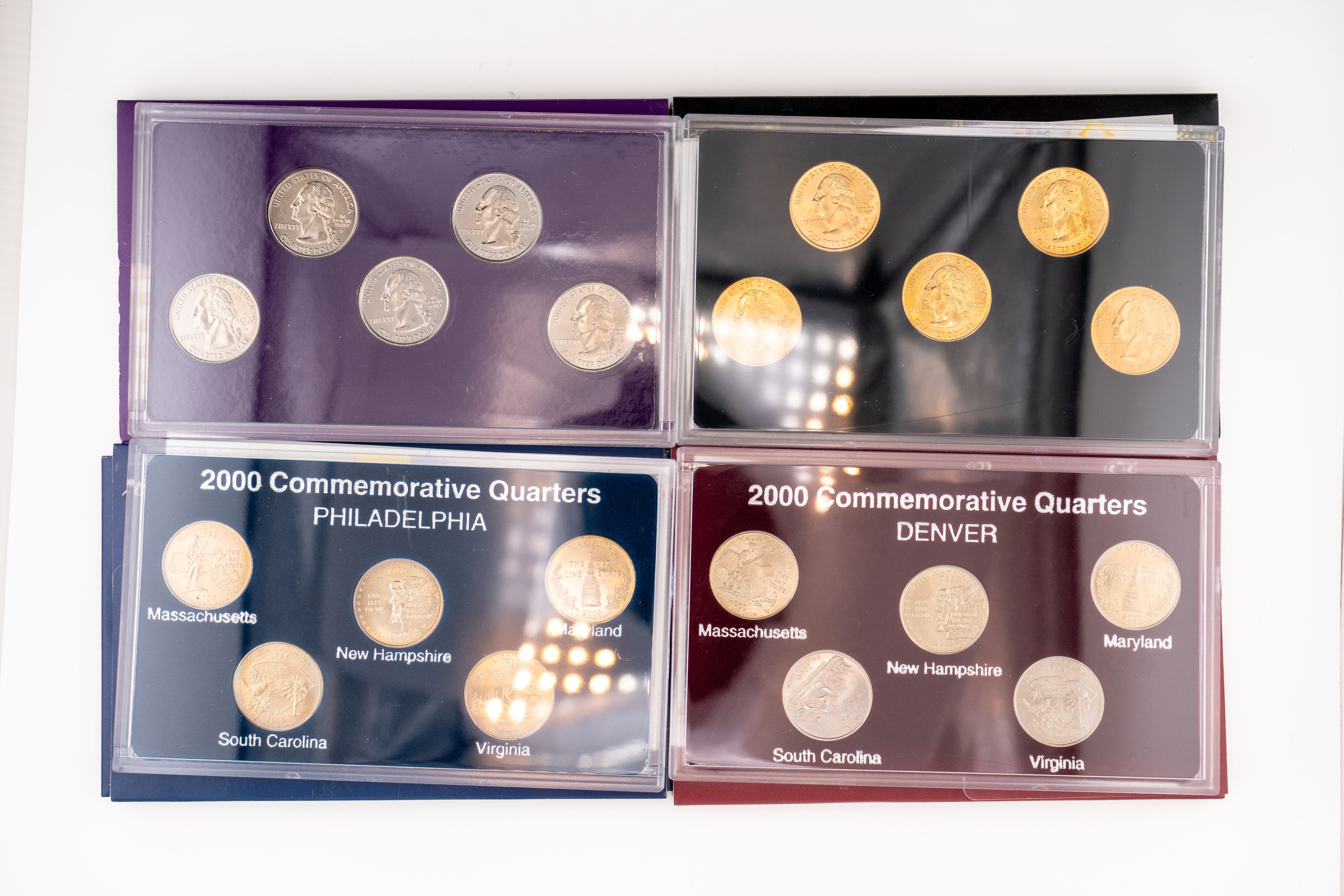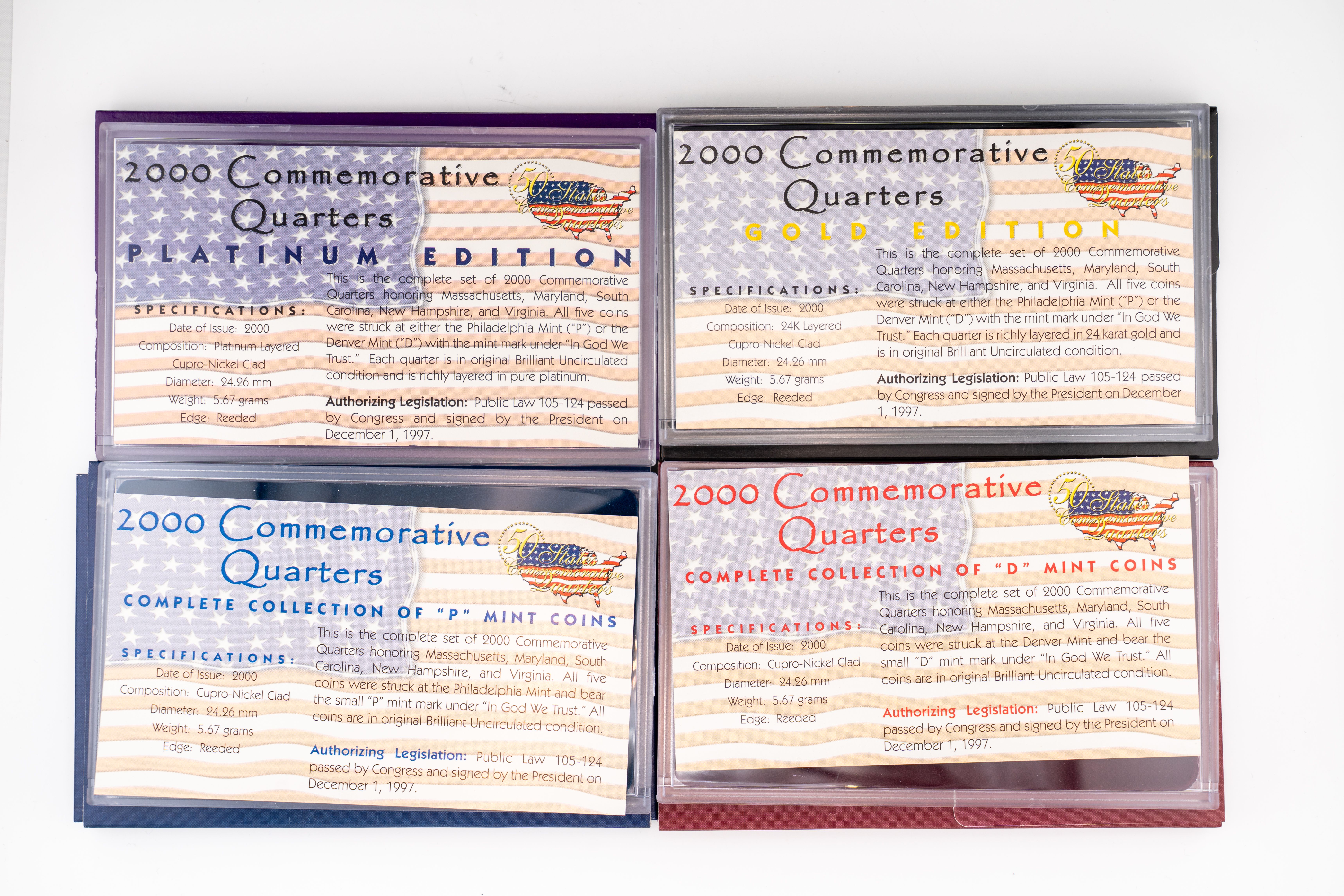 9 (4) Sets US Mint 2000 Commemorative Quarters, Denver, Philadelphia Gold, Platinum Editions