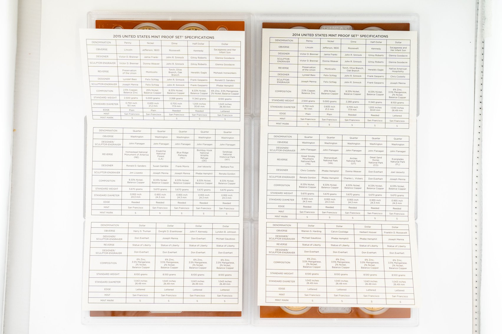 52 (2) Sets, Each 14 Coin Set Containing 99% Silver (5) Quarters, 1/2 Dollar, Dime. (5) $1 Coins. United States Silver Proof Sets, 2015,2014