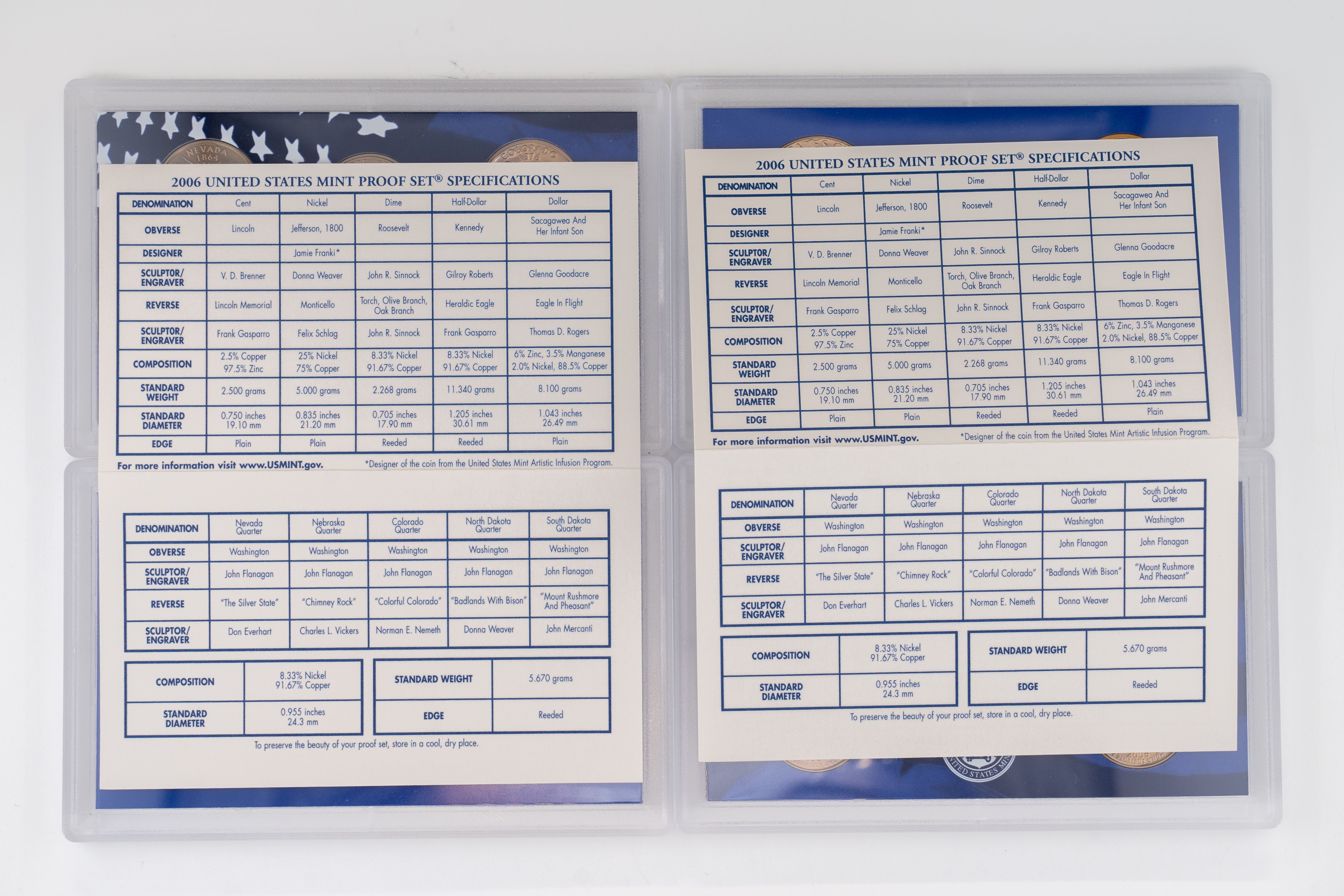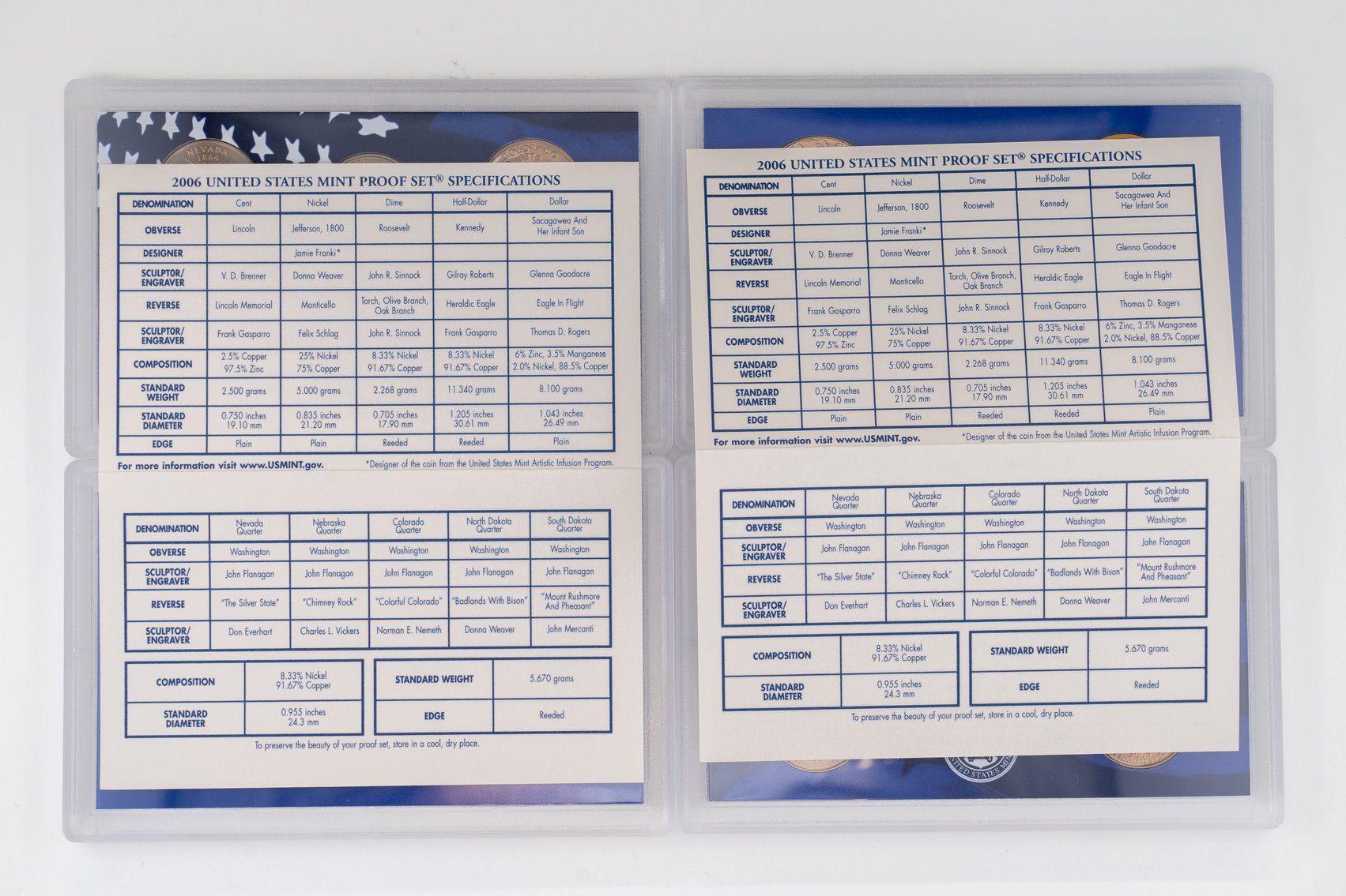 22 (4) Sets US Mint Proof Sets, 2005,2006