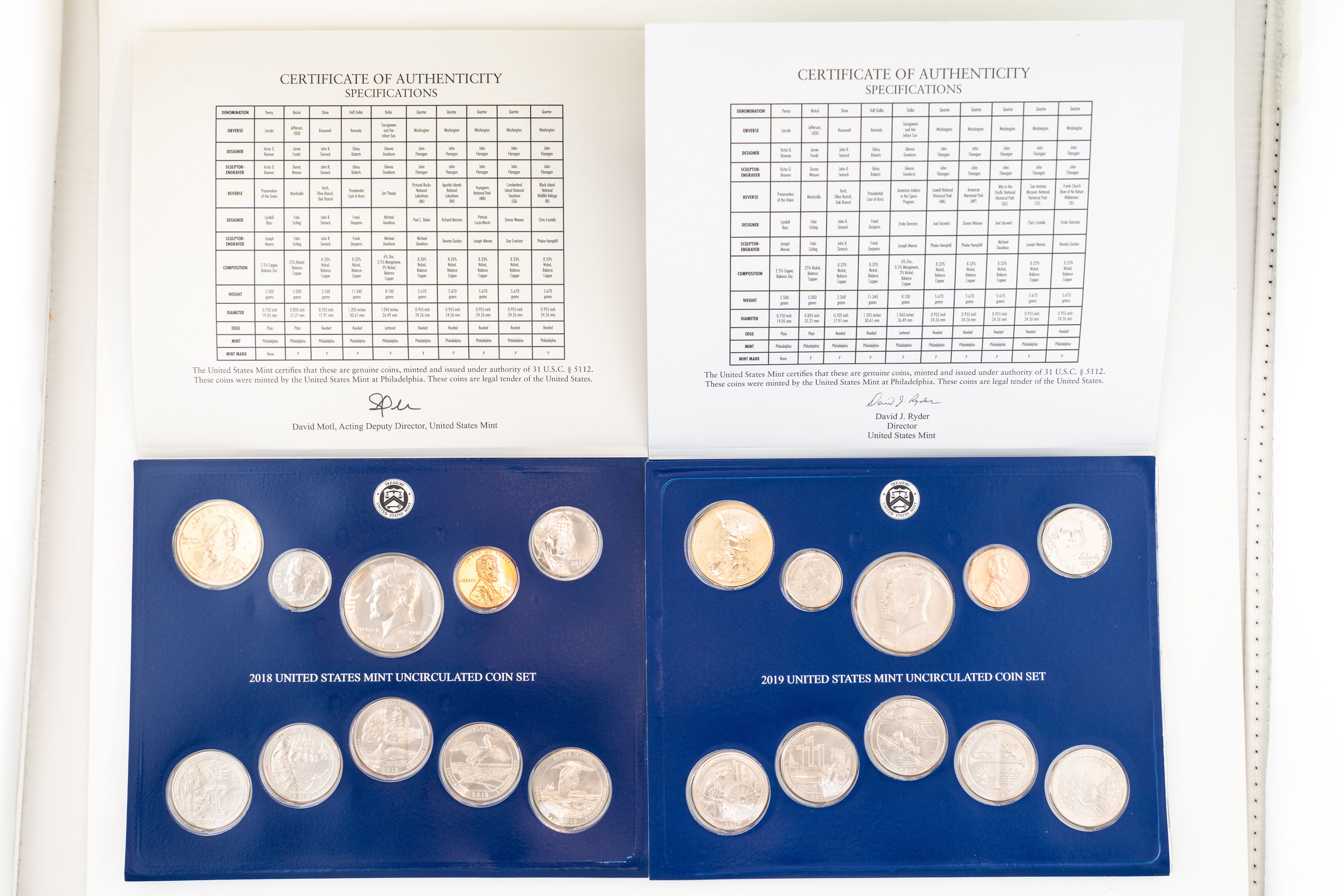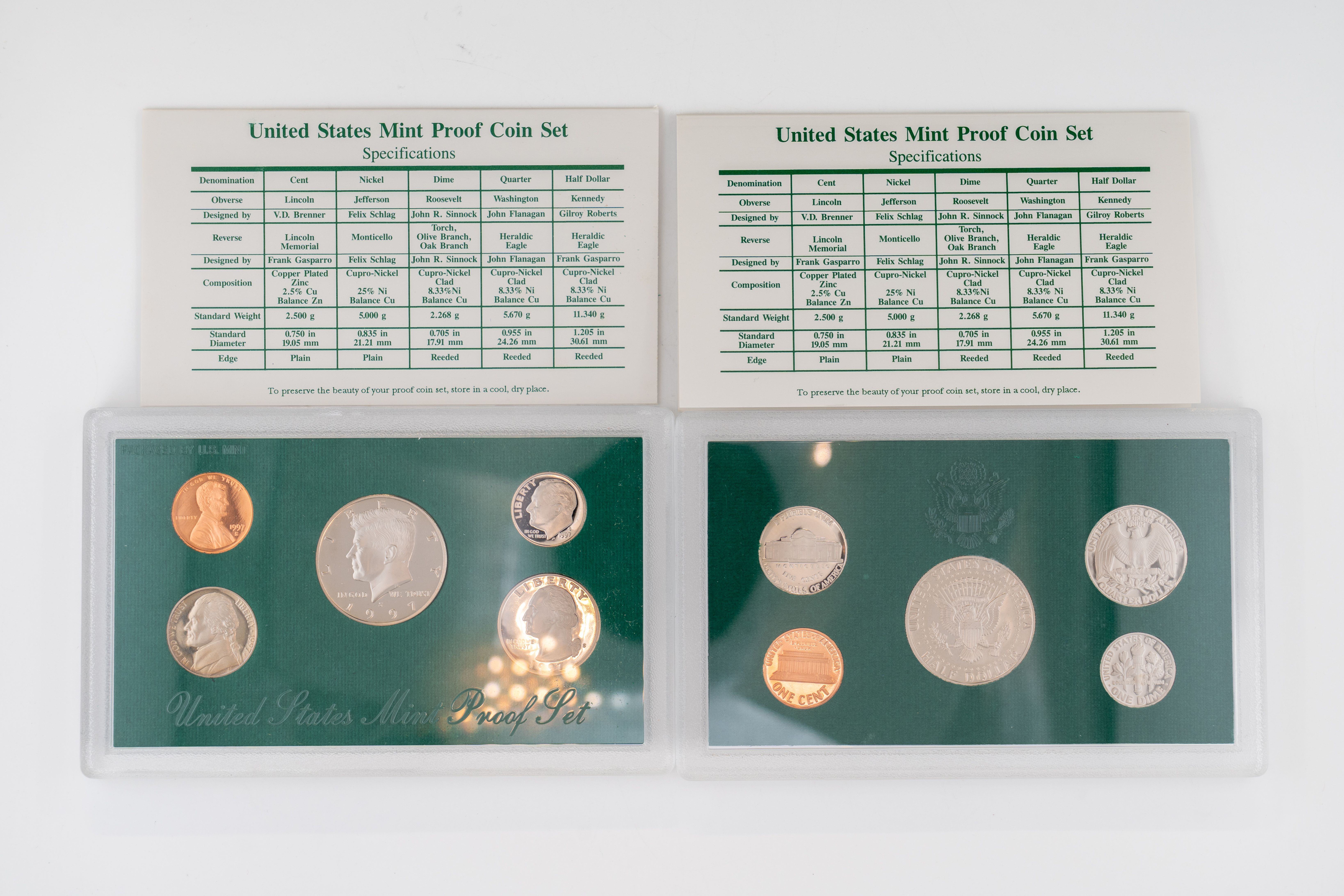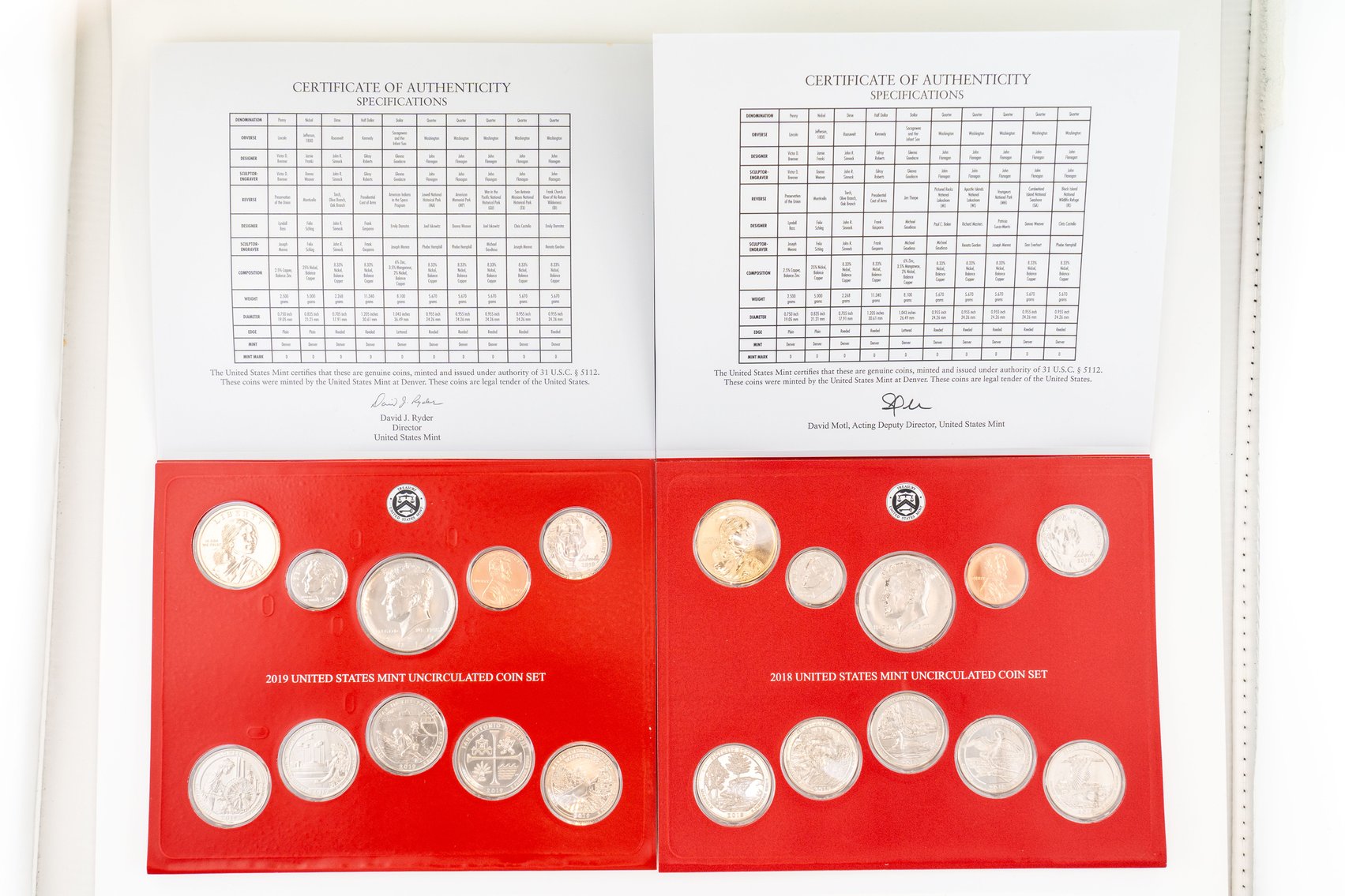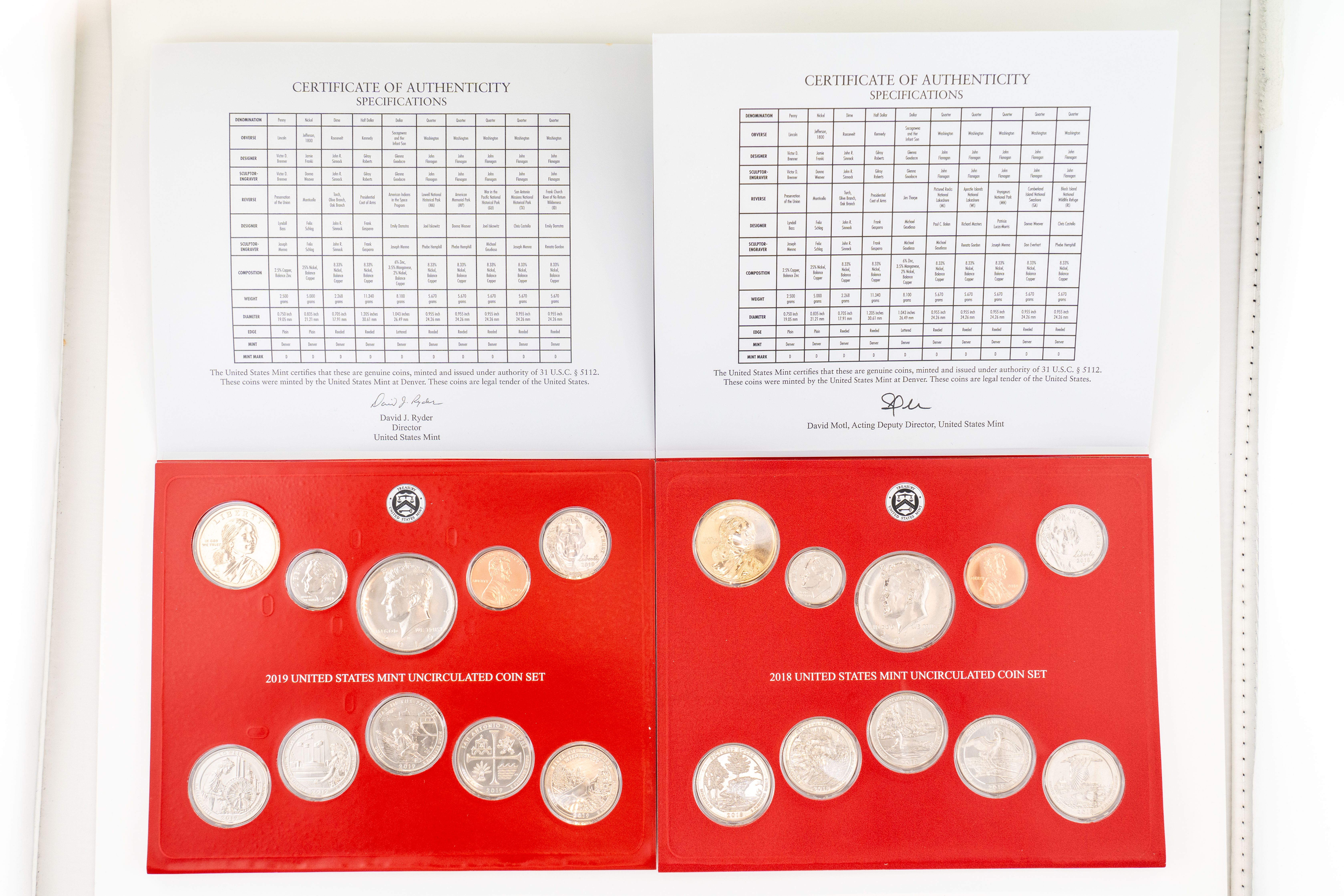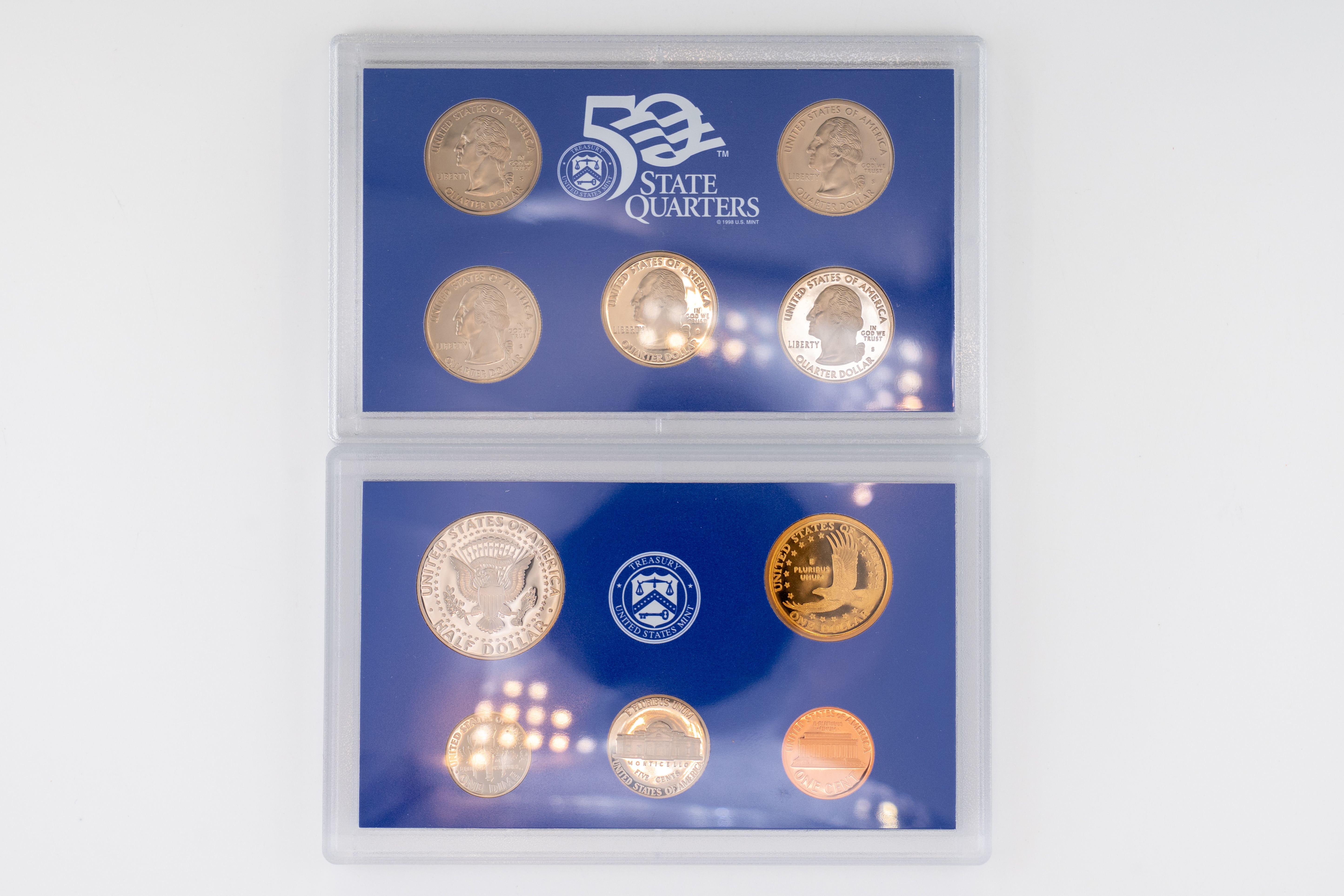 50 (2) Sets, Each 10 Coin Set Containing 99% Silver (5) Quarters, 1/2 Dollar, Dime. United States Silver Proof Set & Reverse Set 2018