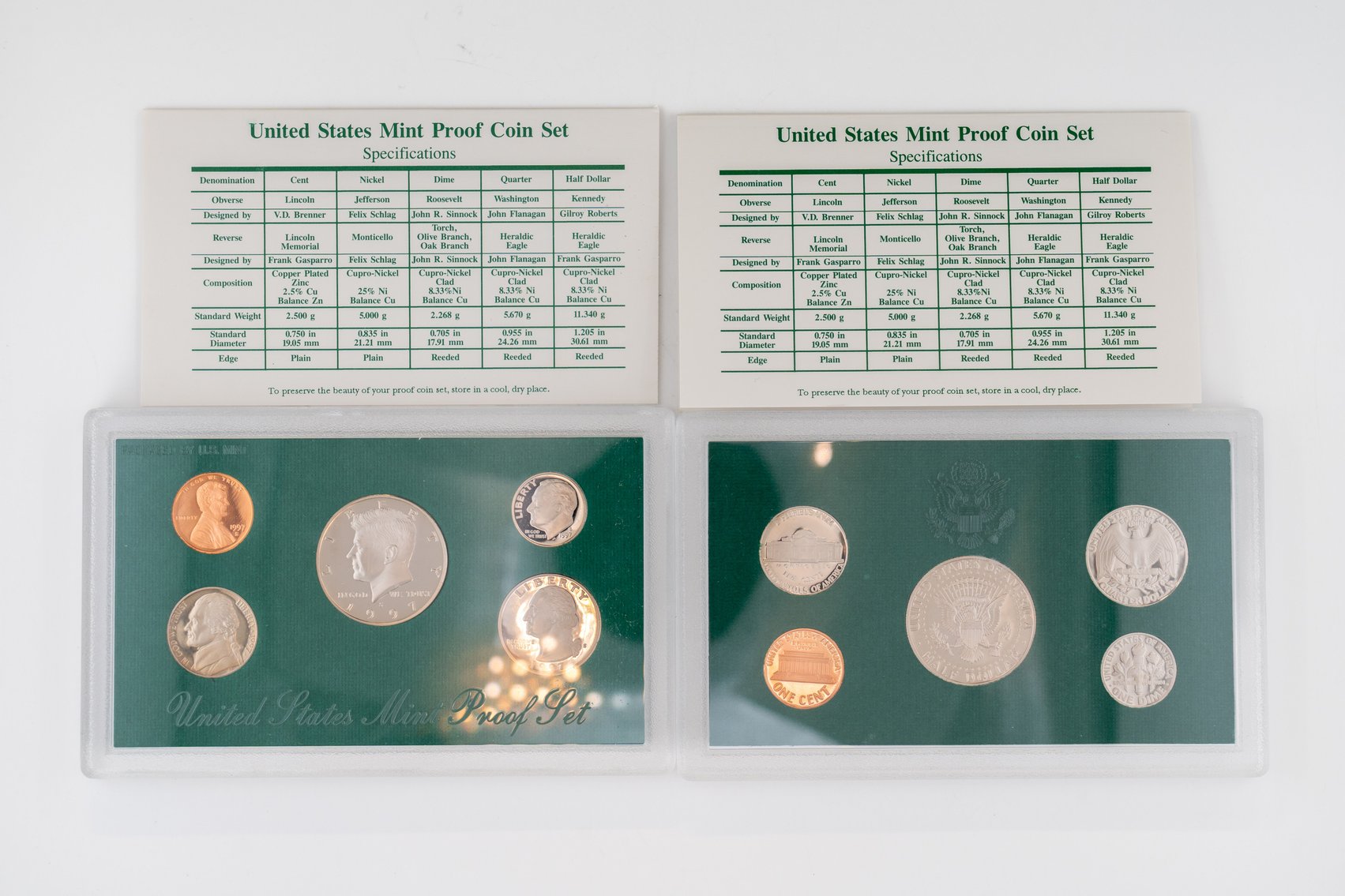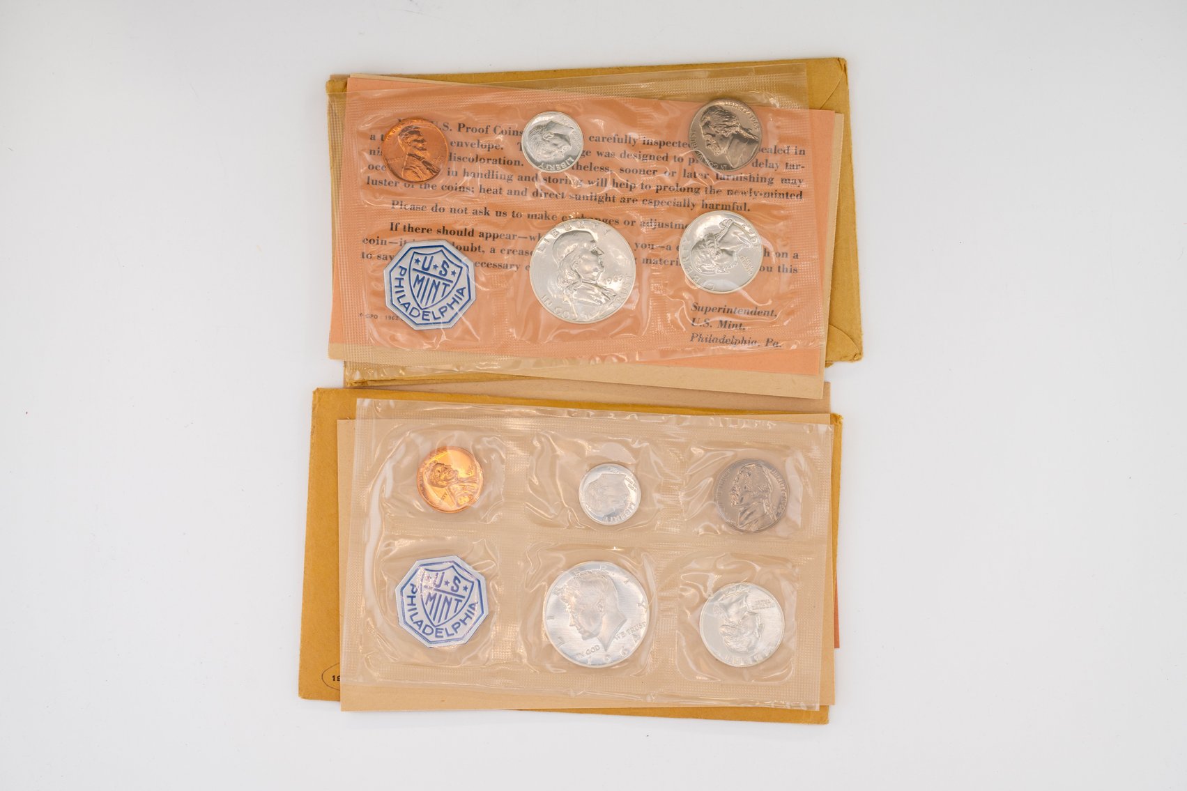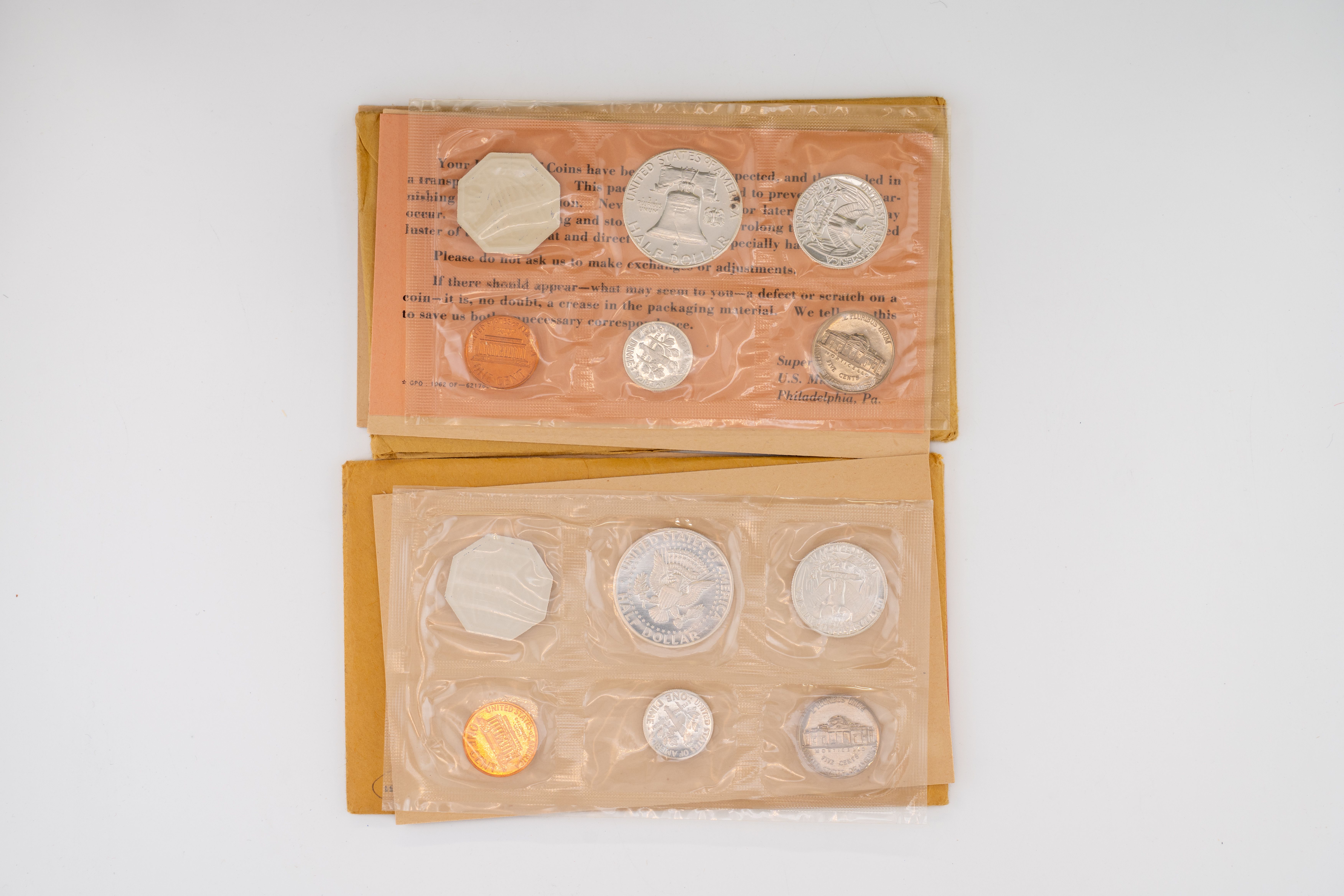 42 (2) US Mint Proof Sets 1961P, 1962P. Silver Half Dollar, Quarter, and Dime in Each