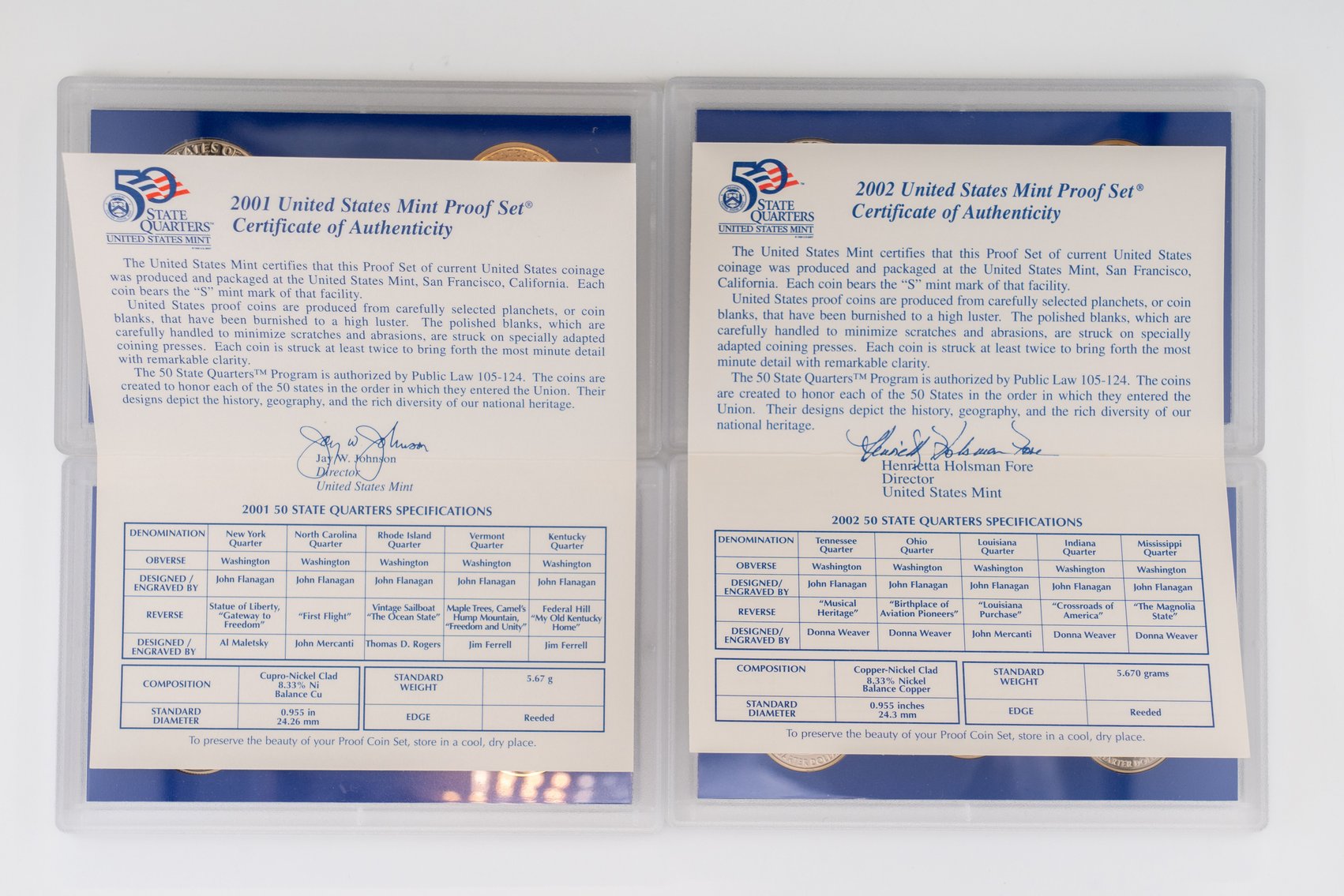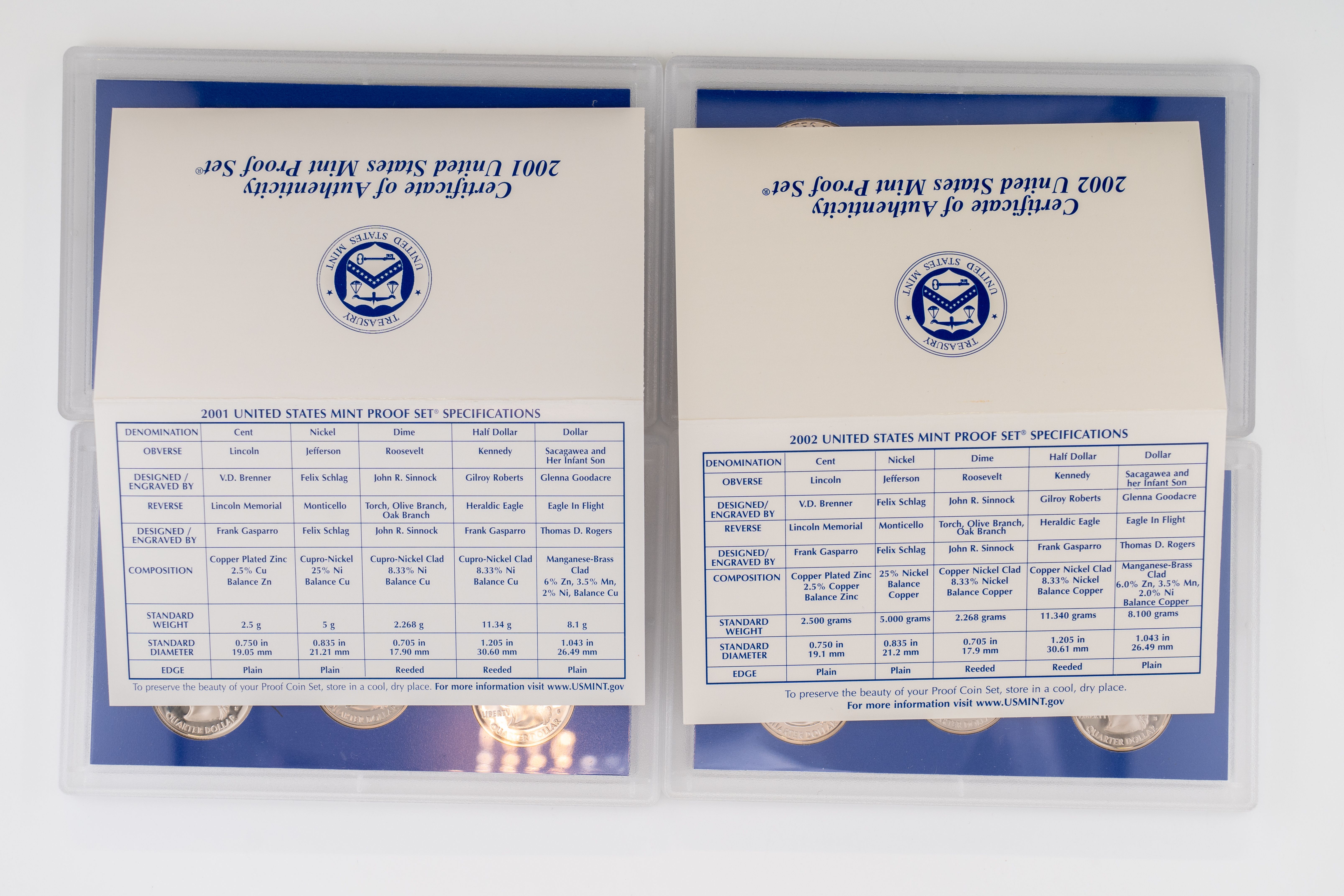 23 (4) Sets US Mint Proof Sets, 2001-2002, (2) 2004
