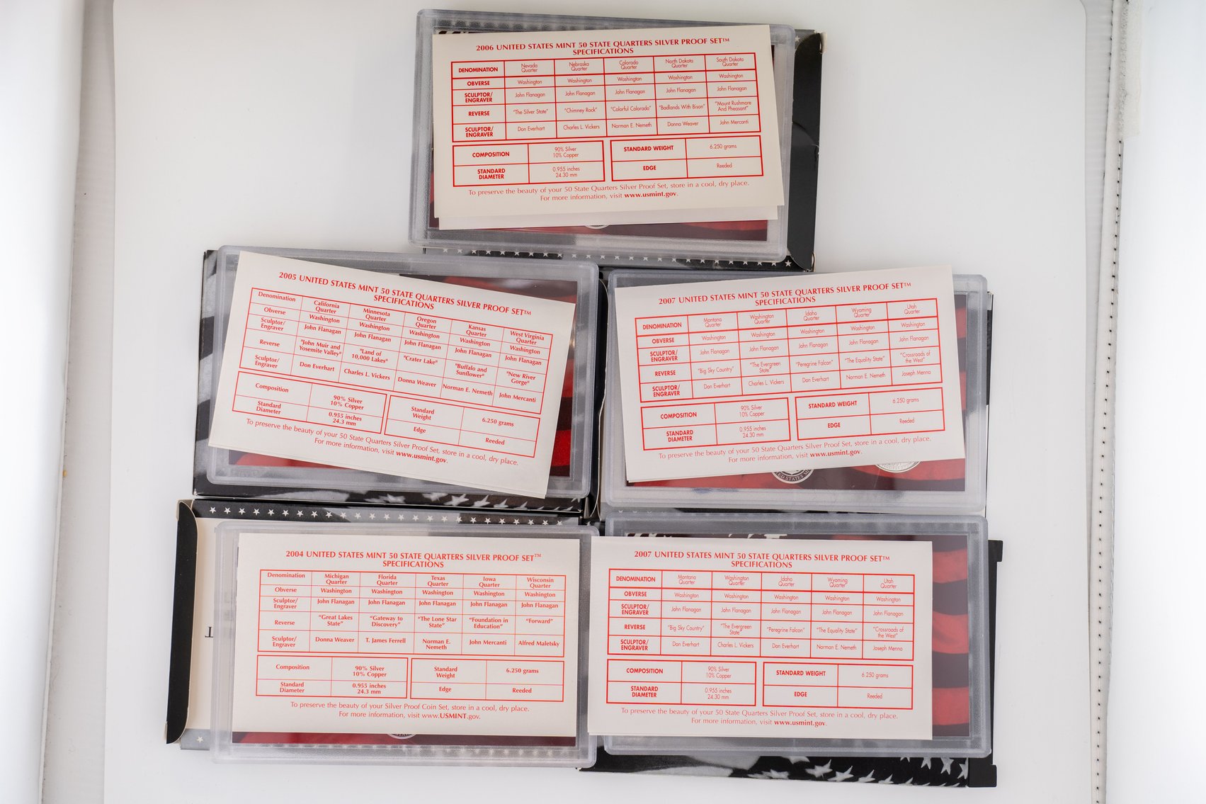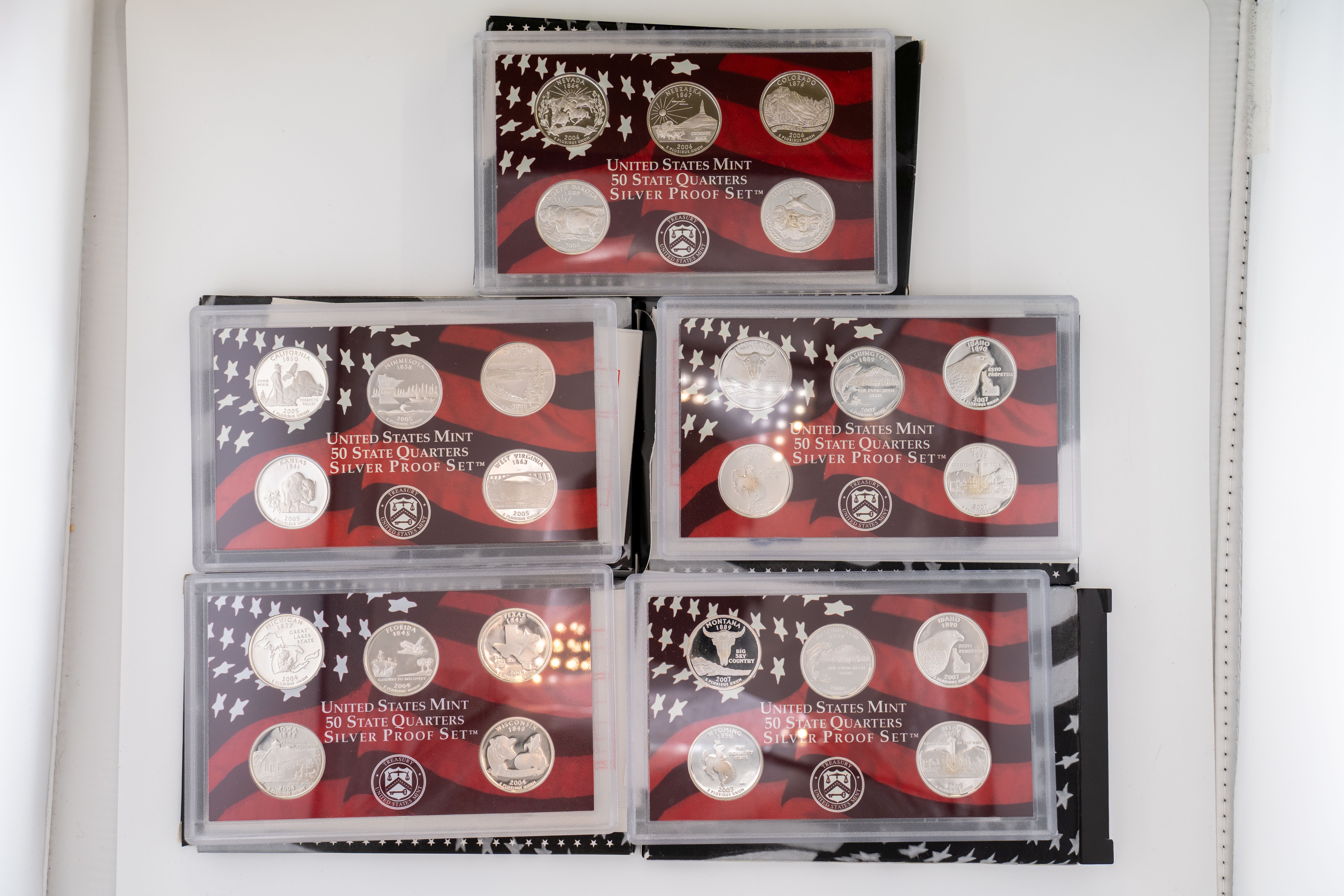 48 (5) Sets (25) 90% Silver Quarters ~ US Mint America The Beautiful SILVER Quarter Proof Sets, 2004-2006, (2) 2007