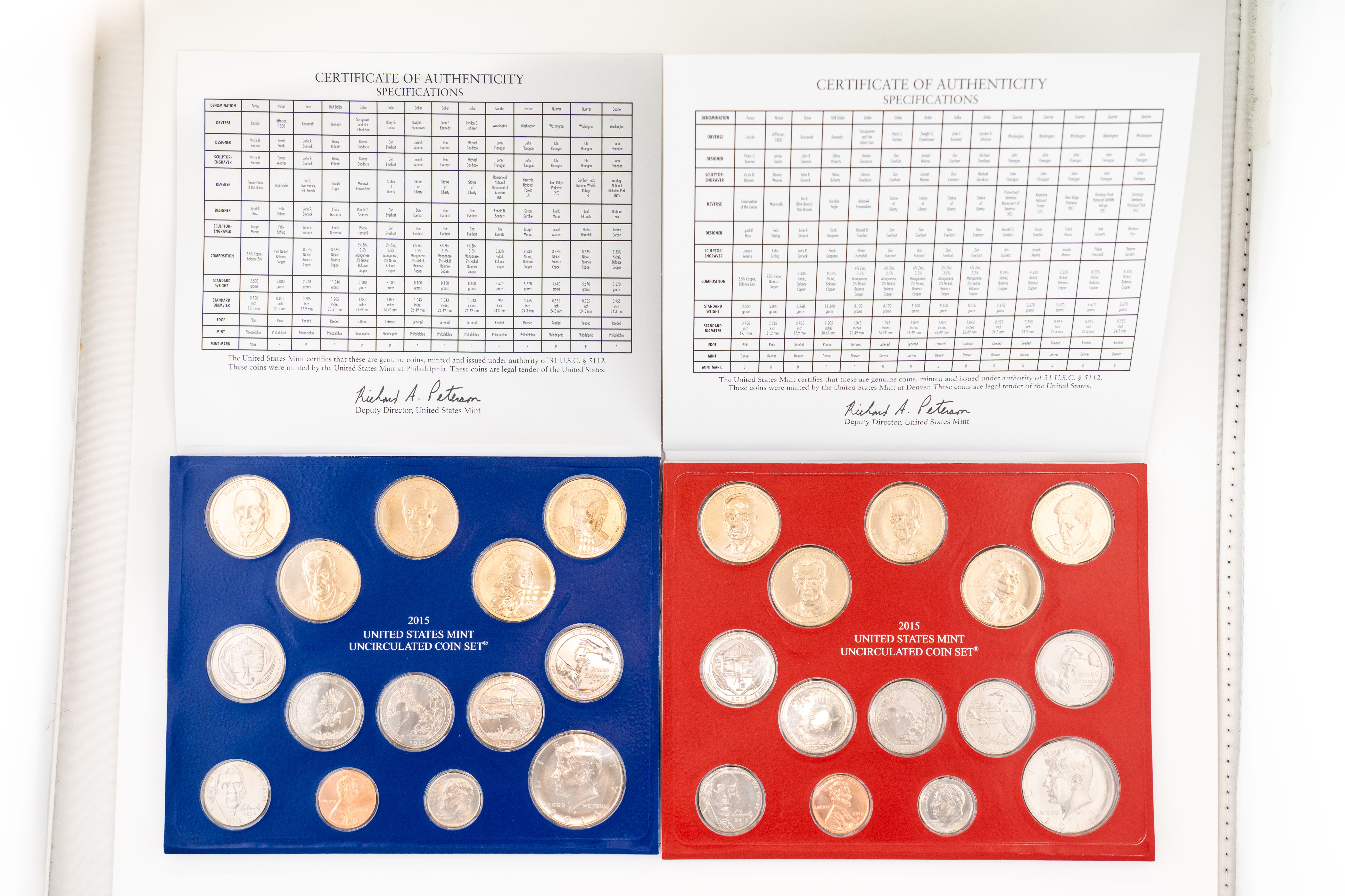 12 (5) Sets US Mint Uncirculated Coin Sets 2017, 2016, 2015 Philadelphia and Denver Mints