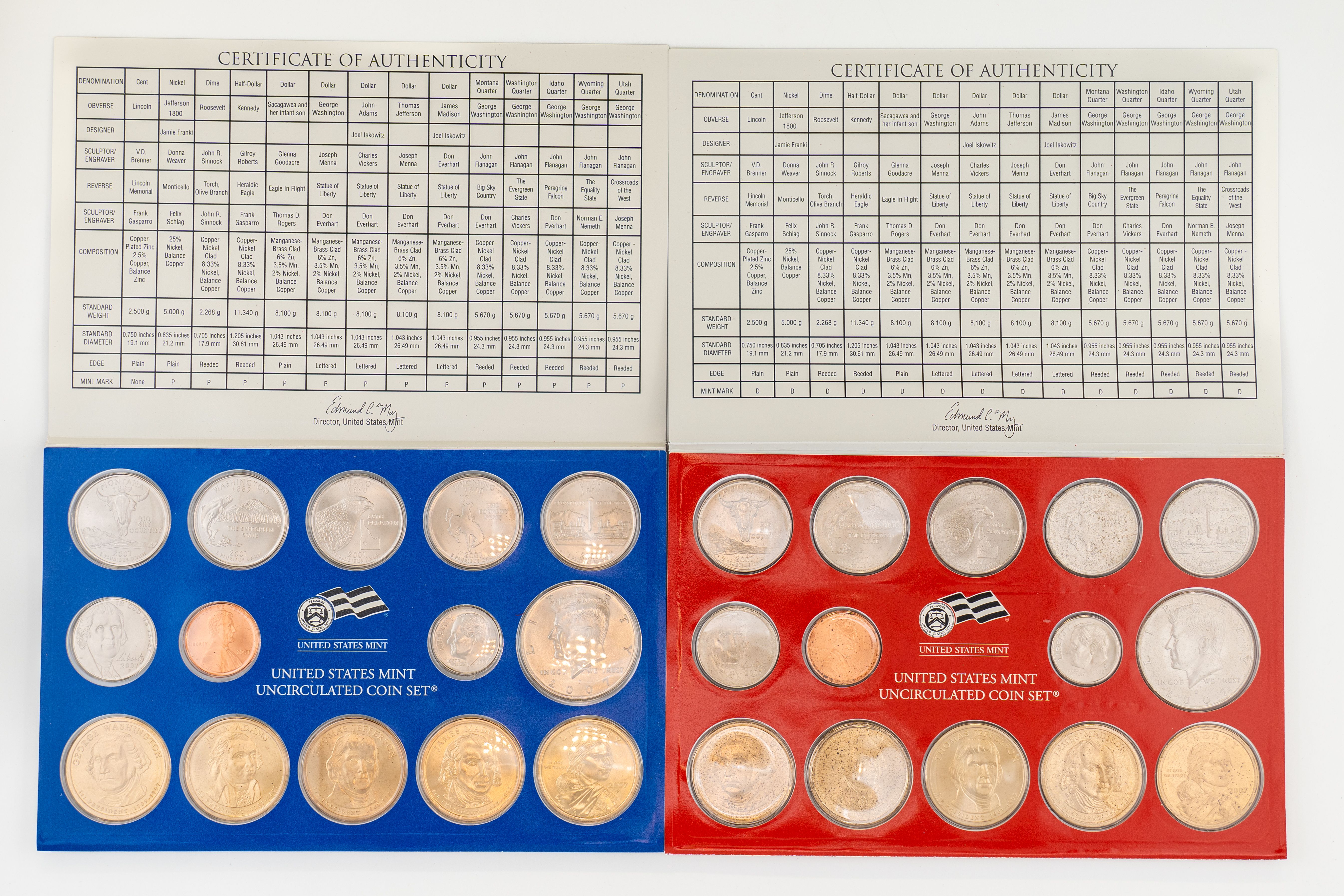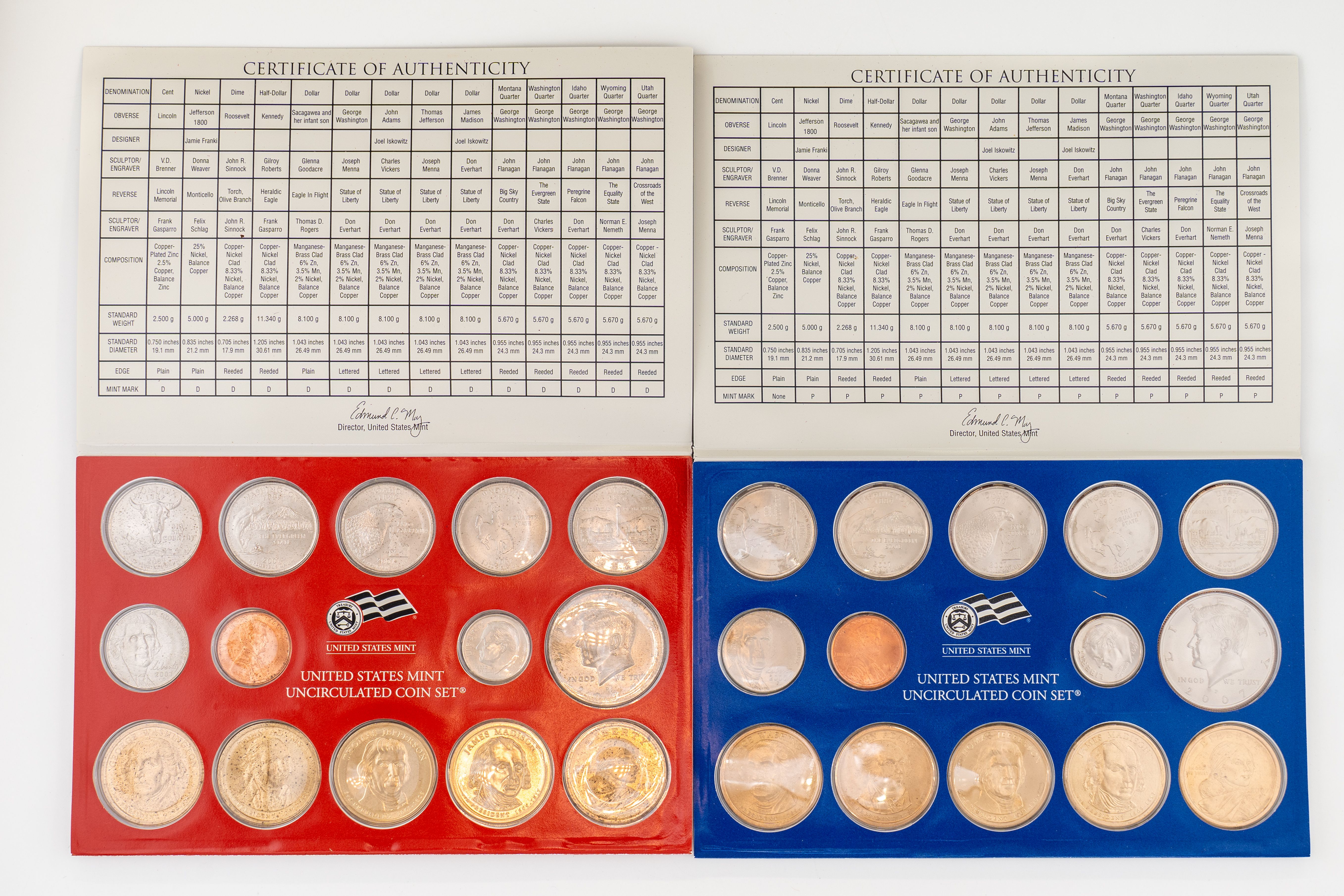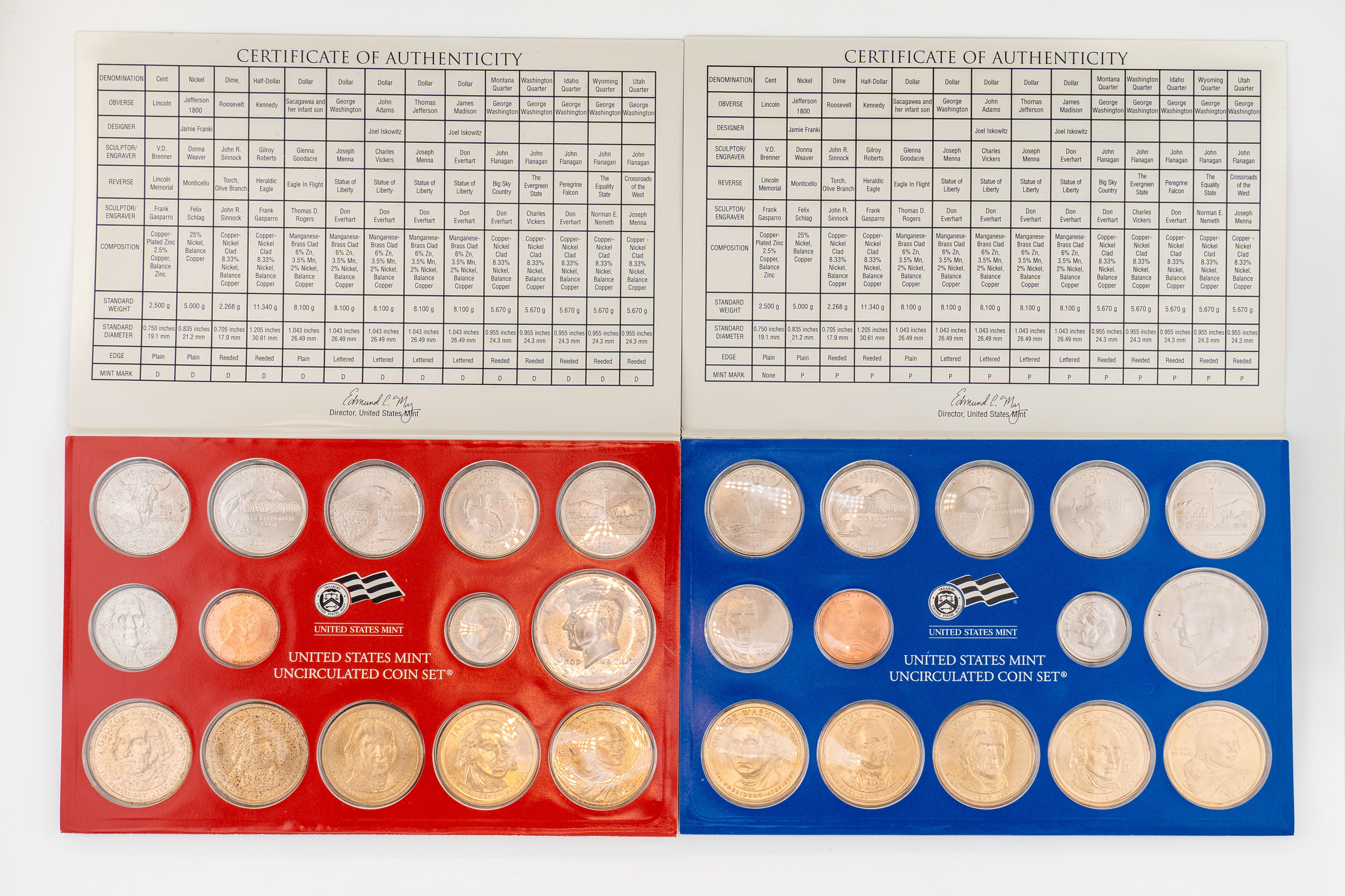 16 (6) Sets US Mint Uncirculated 2007 Coin Sets, Philadelphia and Denver Mints