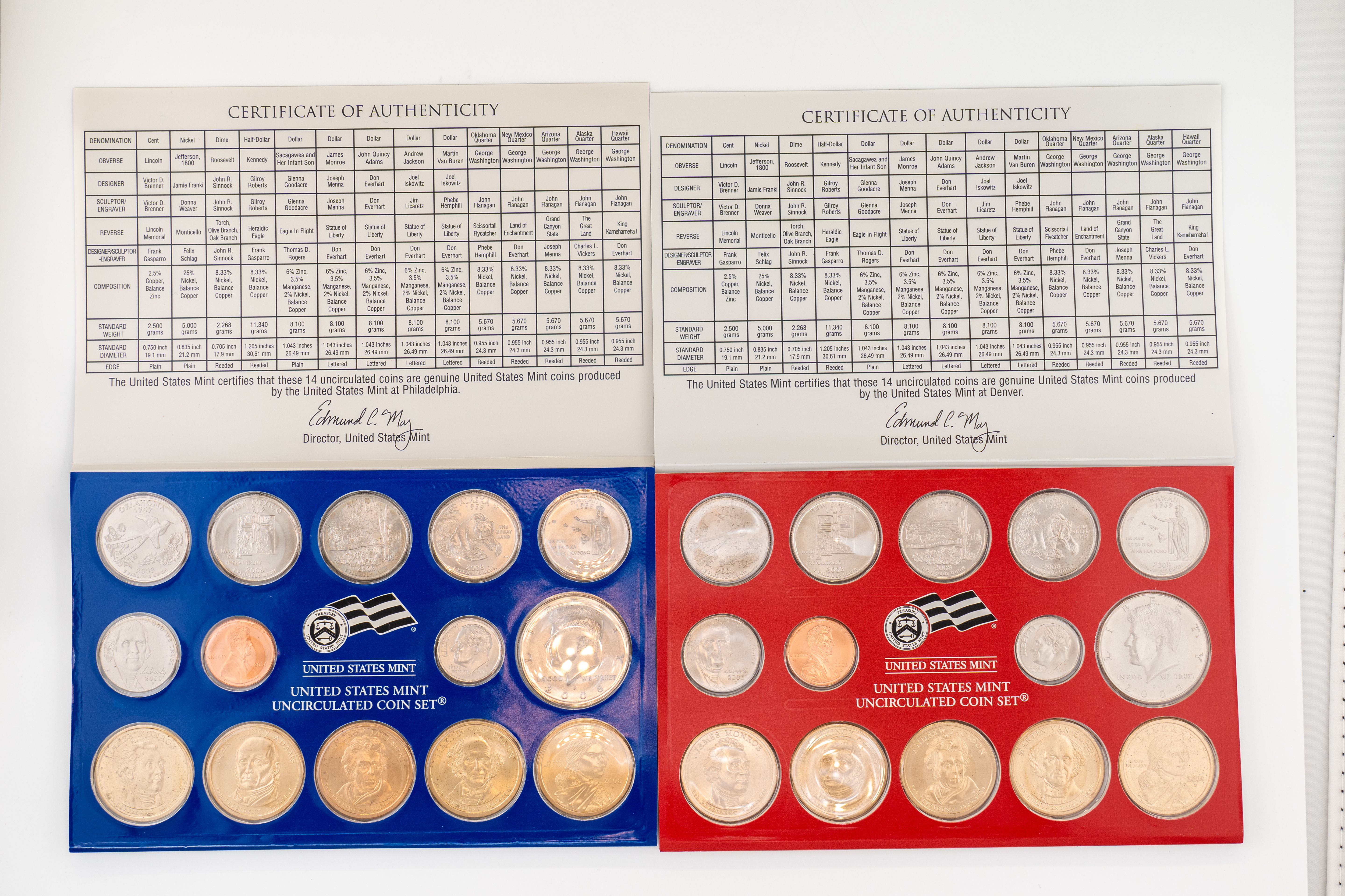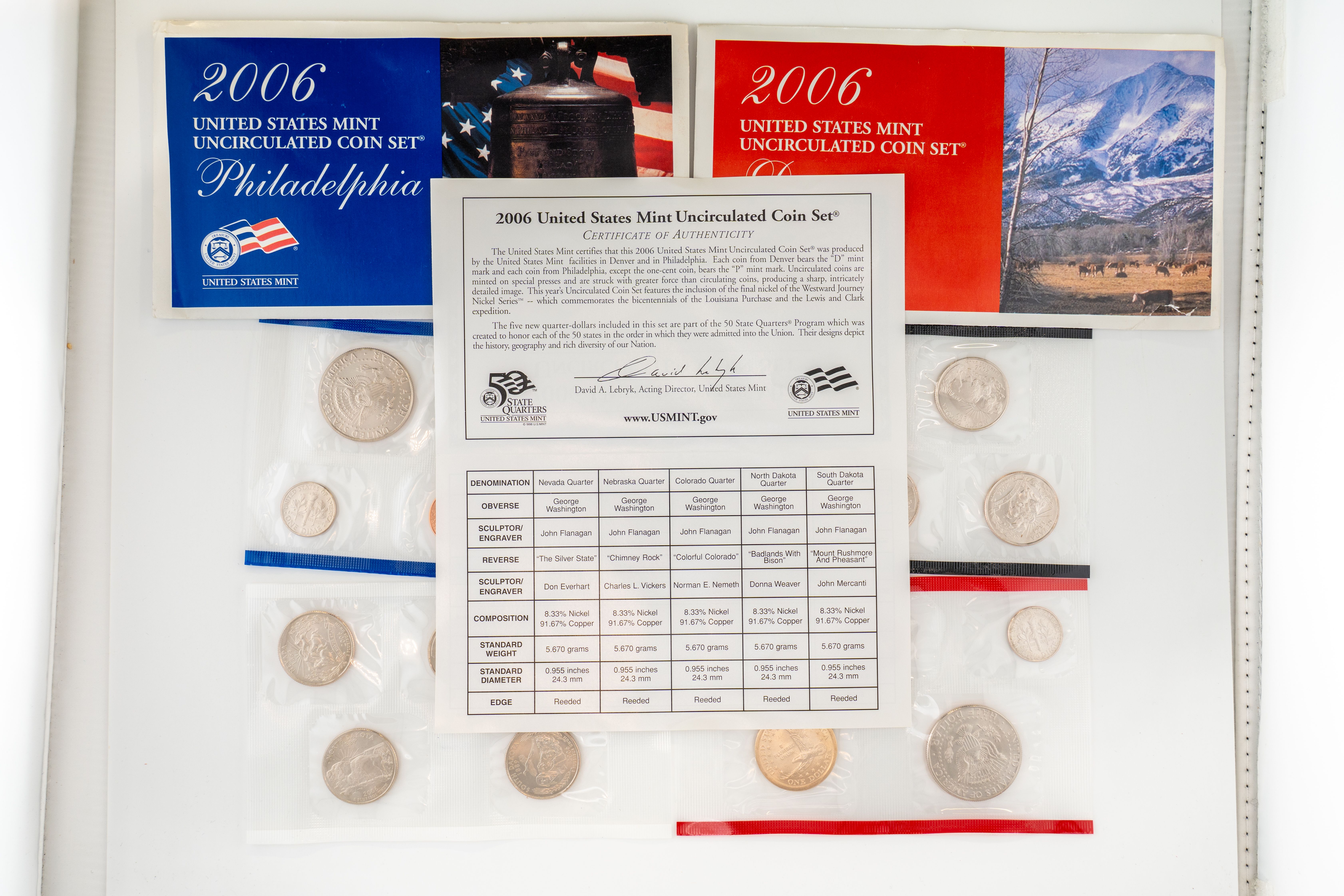 17 (6) Sets US Mint Uncirculated 2006 Coin Sets, Philadelphia and Denver Mints