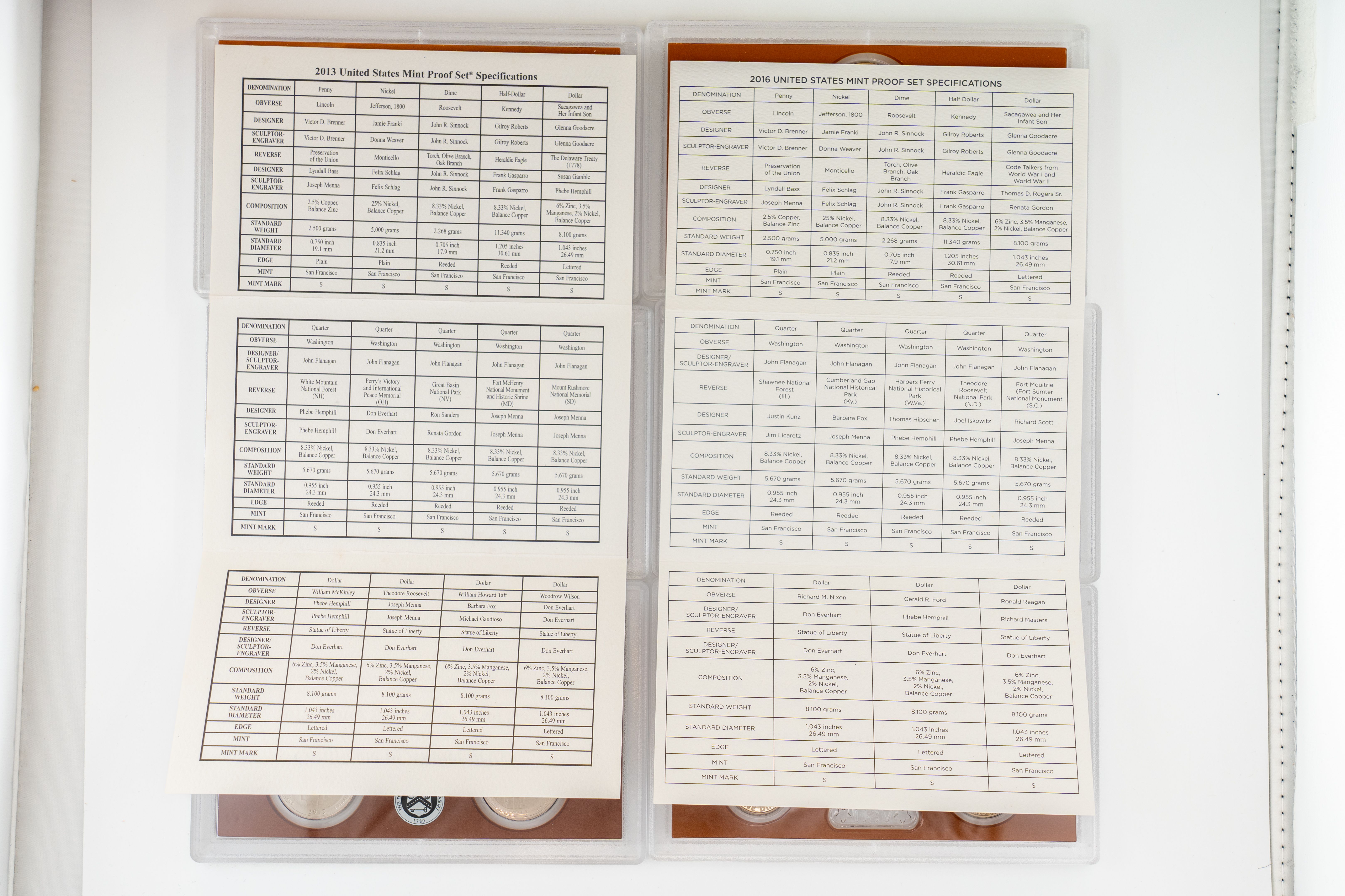19 (4) Sets US Mint Proof Sets, 2013-2016