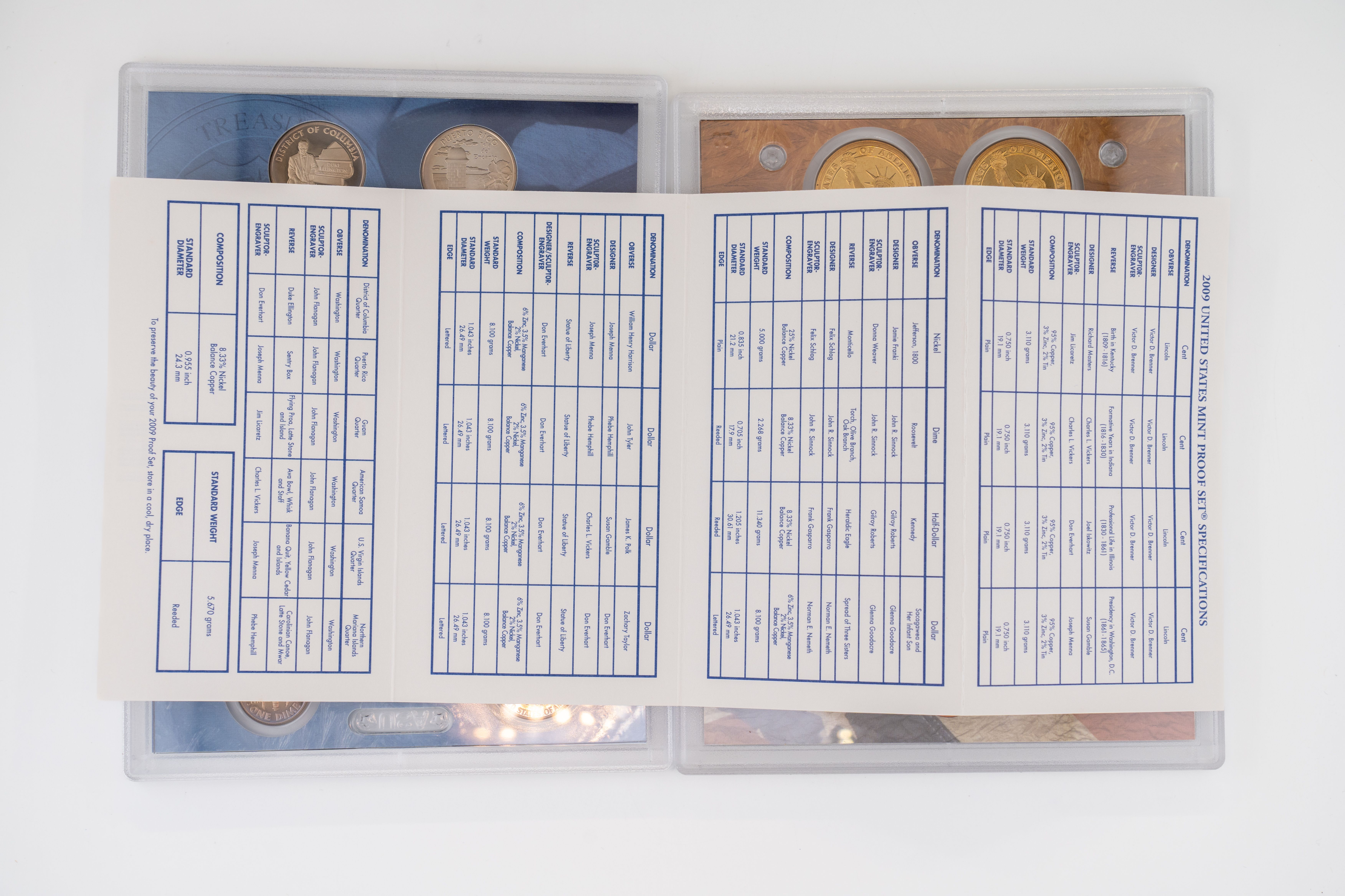 55 (2) Sets, Each 14 Coin Set Containing 99% Silver (5) Quarters, 1/2 Dollar, Dime. (5) $1 Coins. United States Silver Proof Sets, 2008, 2009-S