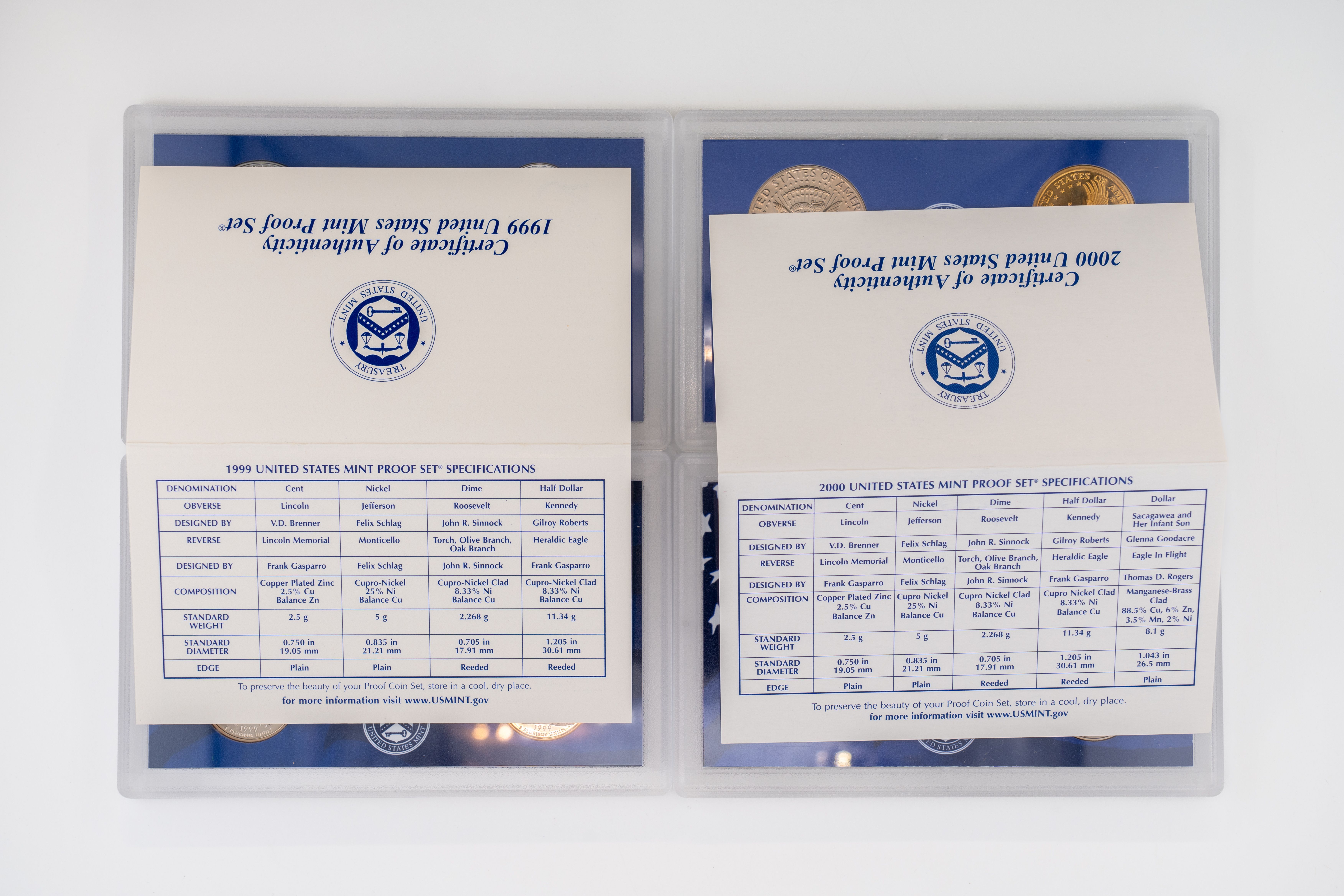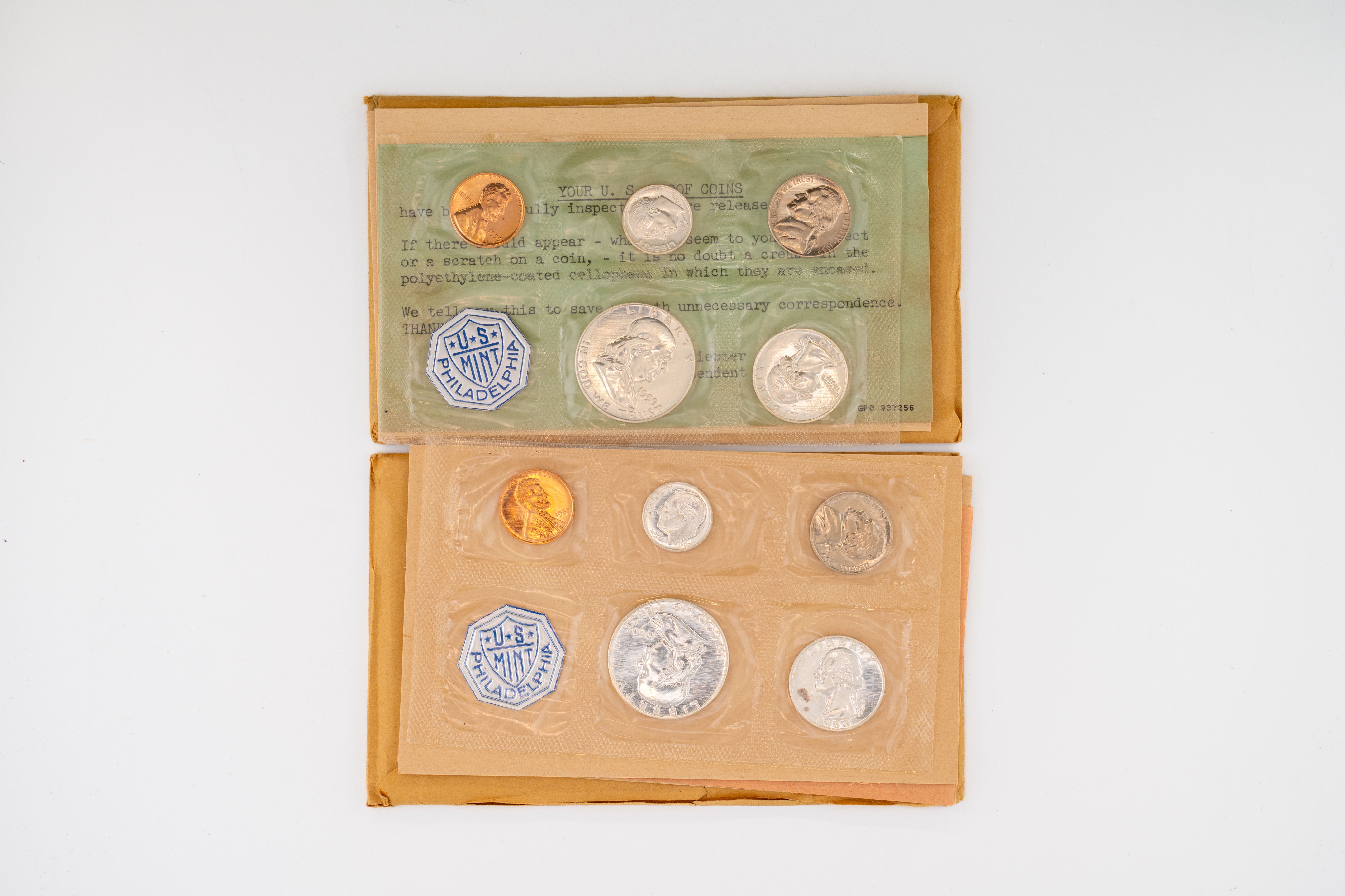 43 (2) US Mint Proof Sets 1960P, 1959P. Silver Half Dollar, Quarter, and Dime in Each