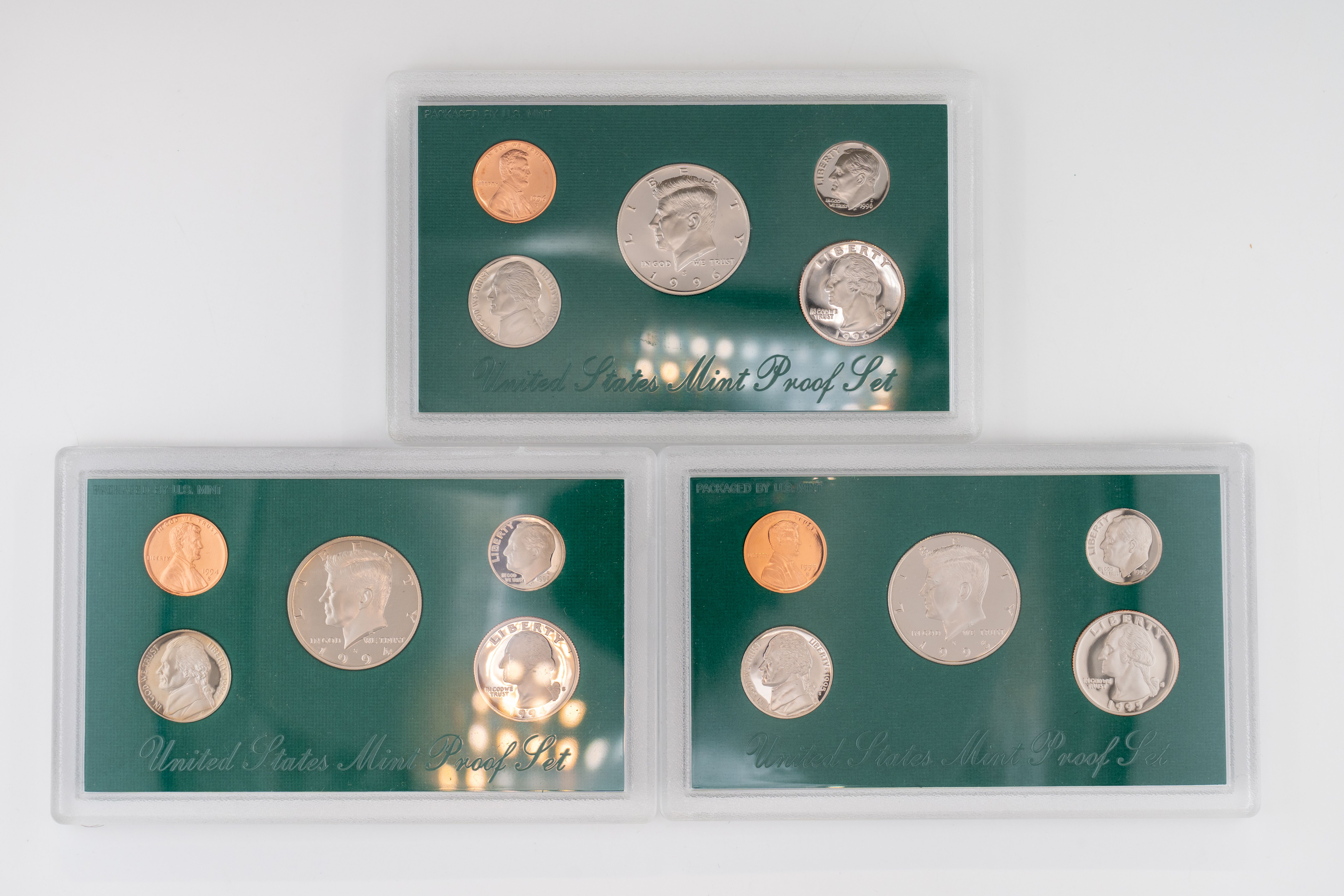 25 (5) Sets US Mint Proof Sets, 1994-1996, & (2) 1995 US Mint Uncirculated Coin Sets (D&P Mints)