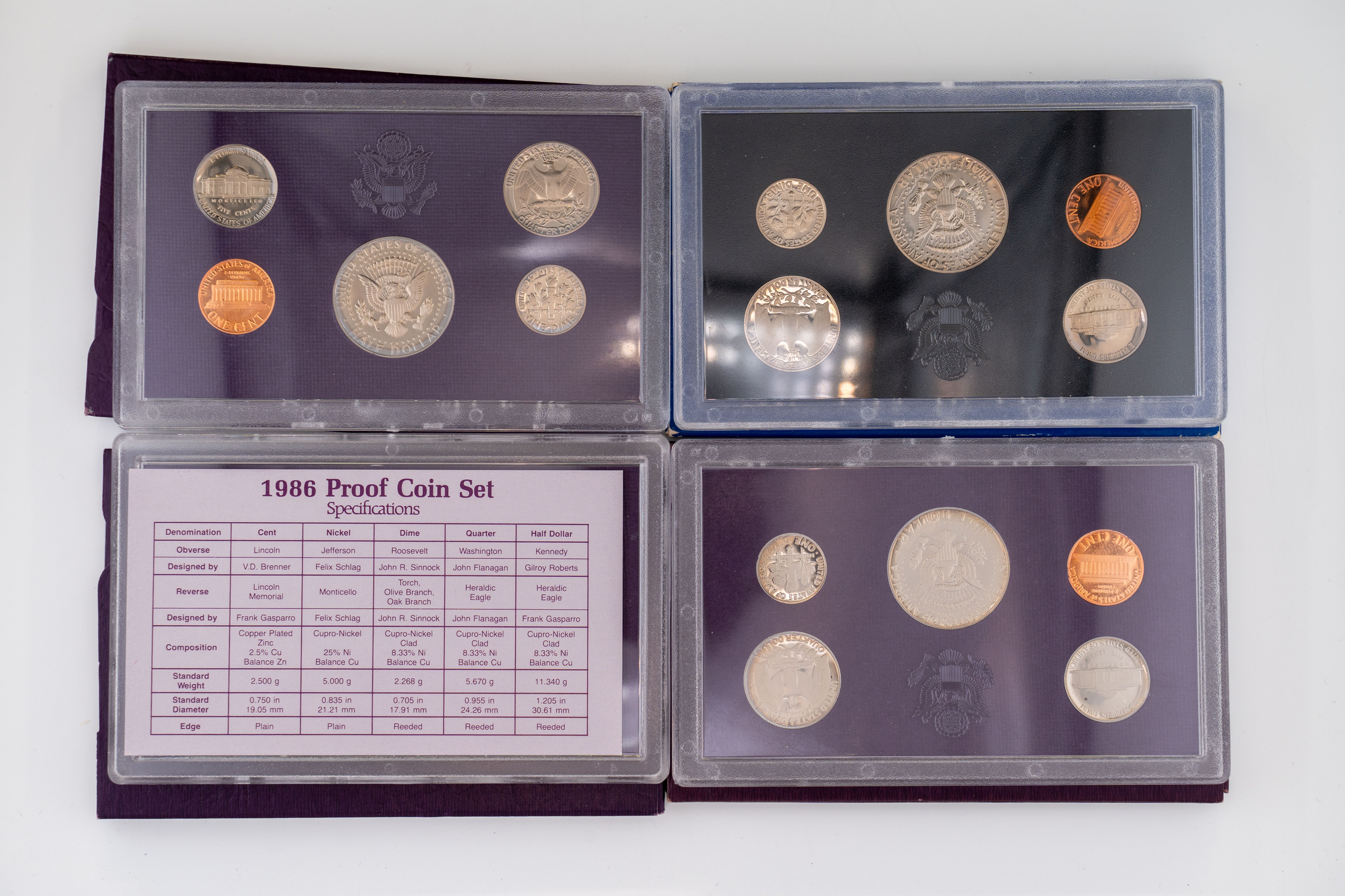 28 (4) Sets US Mint Proof Sets 1986-1989