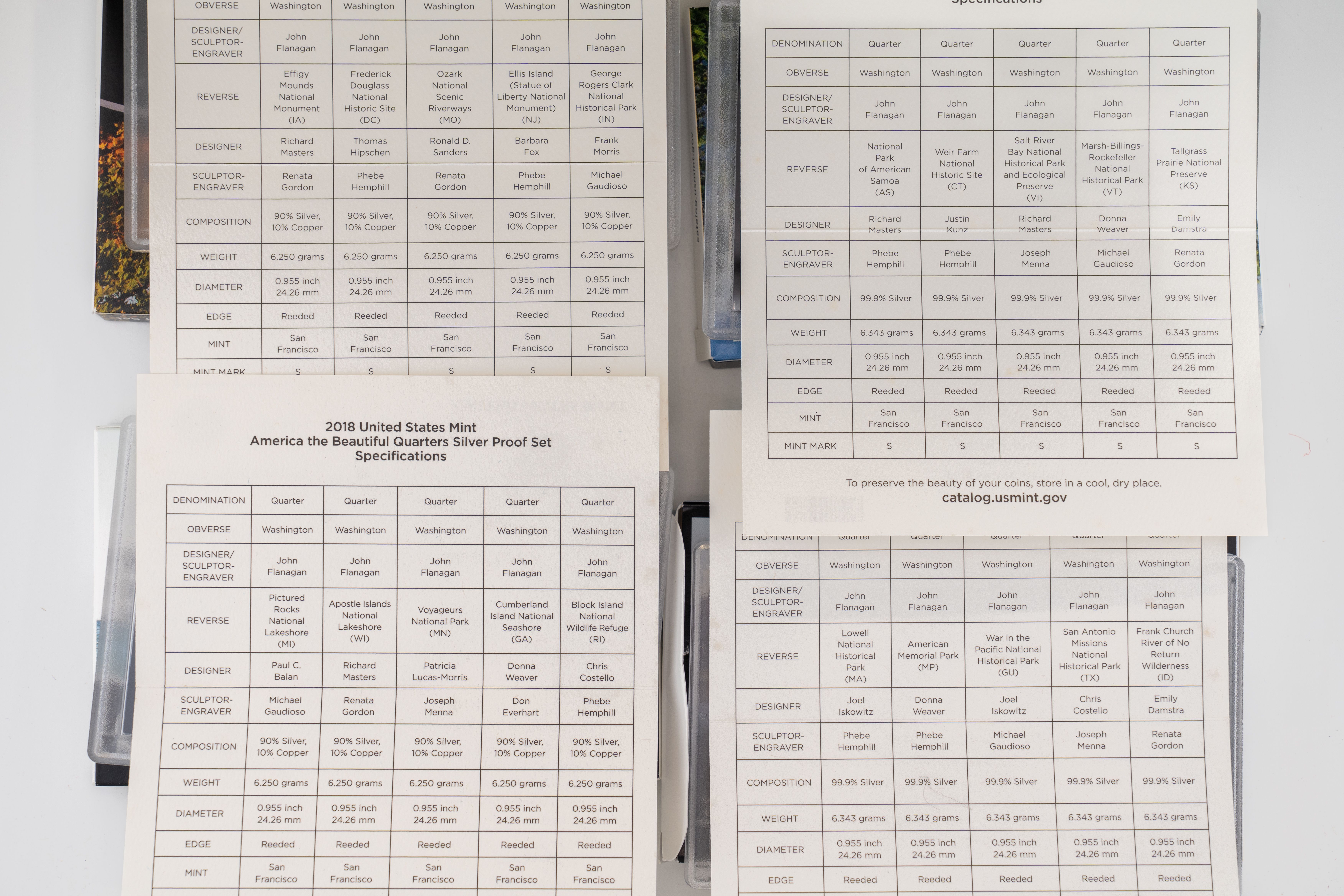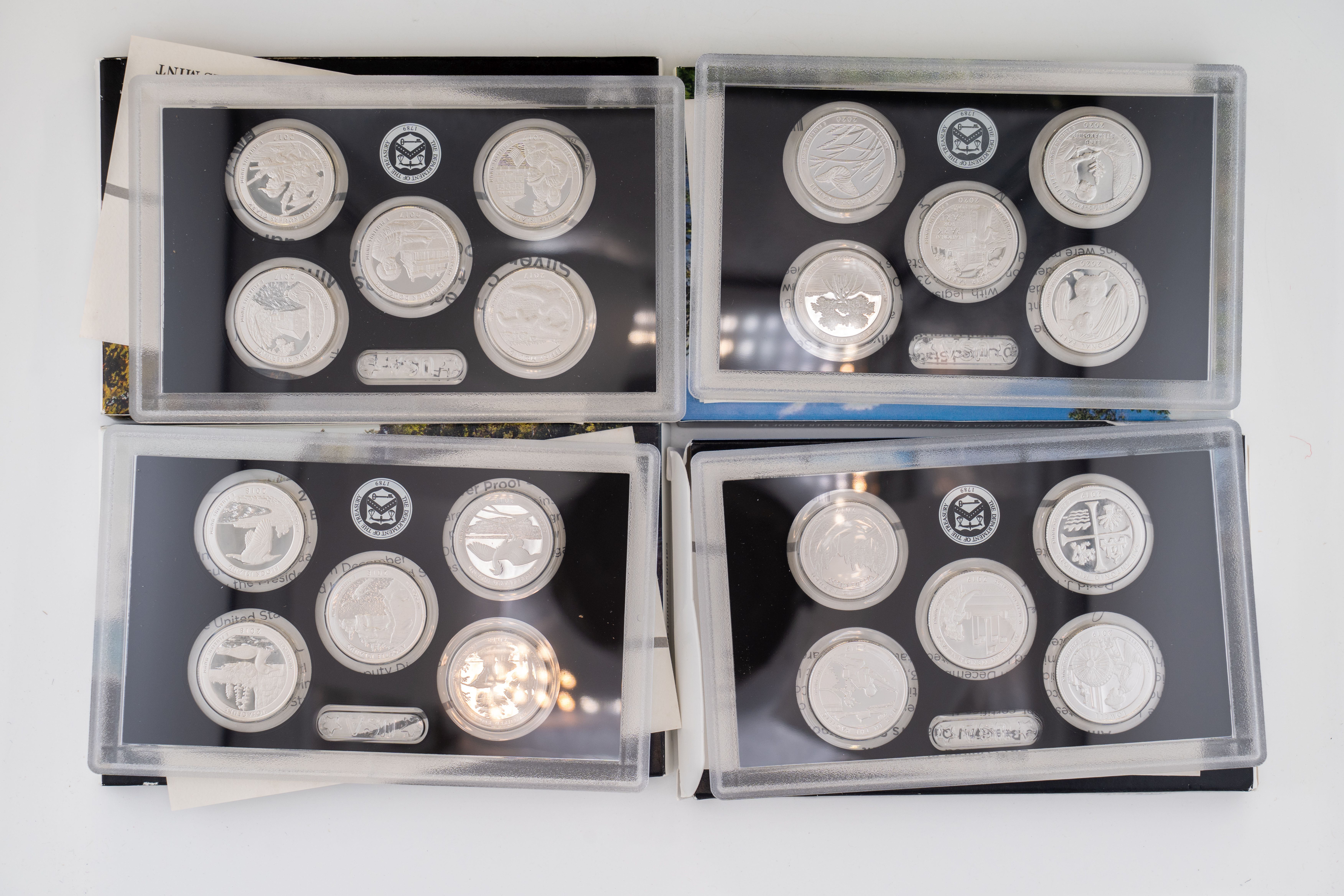 45 (4) Sets (20) 90% Silver Quarters ~ US Mint America The Beautiful SILVER Quarter Proof Sets, 2017-2020
