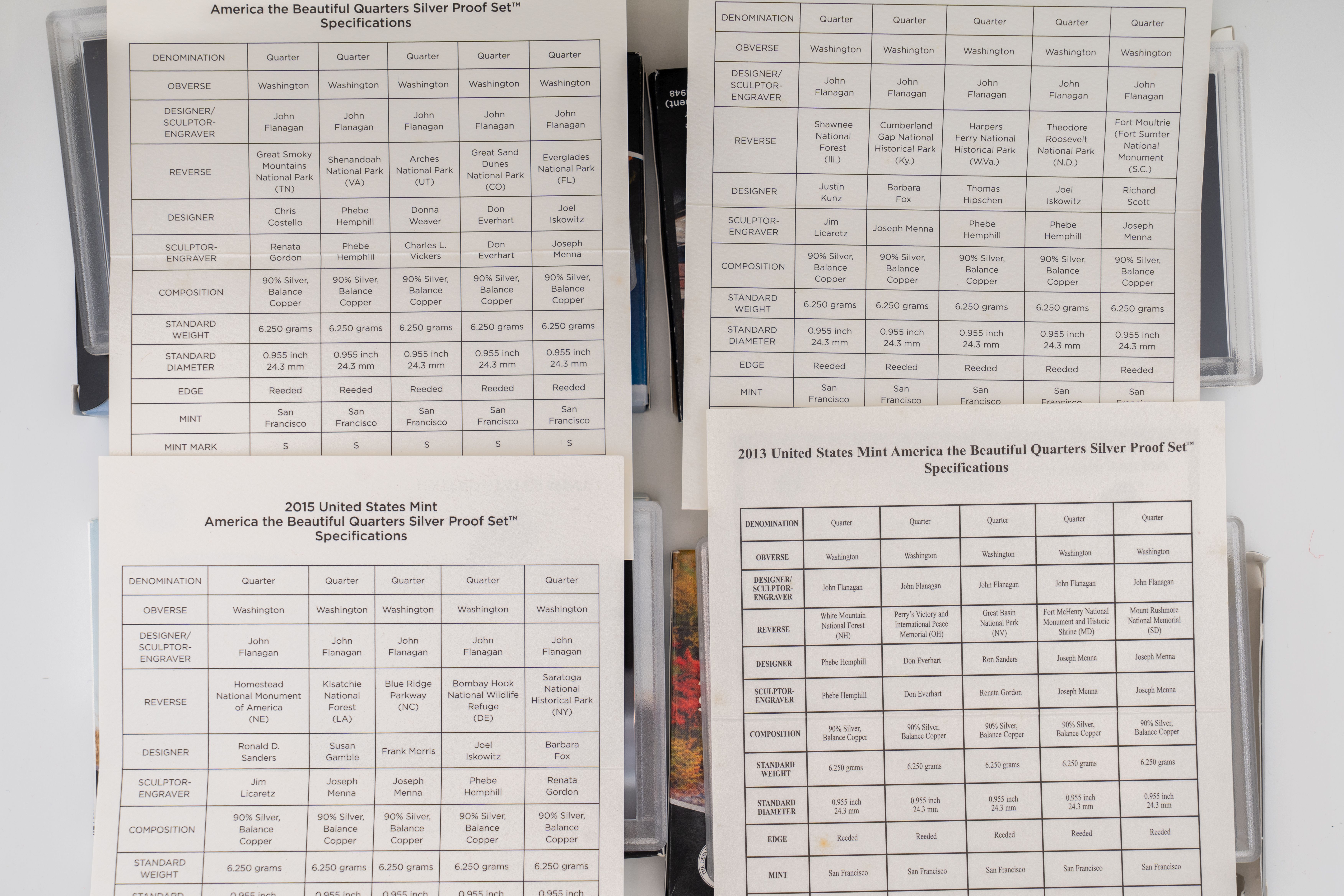 46 (4) Sets (20) 90% Silver Quarters ~ US Mint America The Beautiful SILVER Quarter Proof Sets, 2013-2016