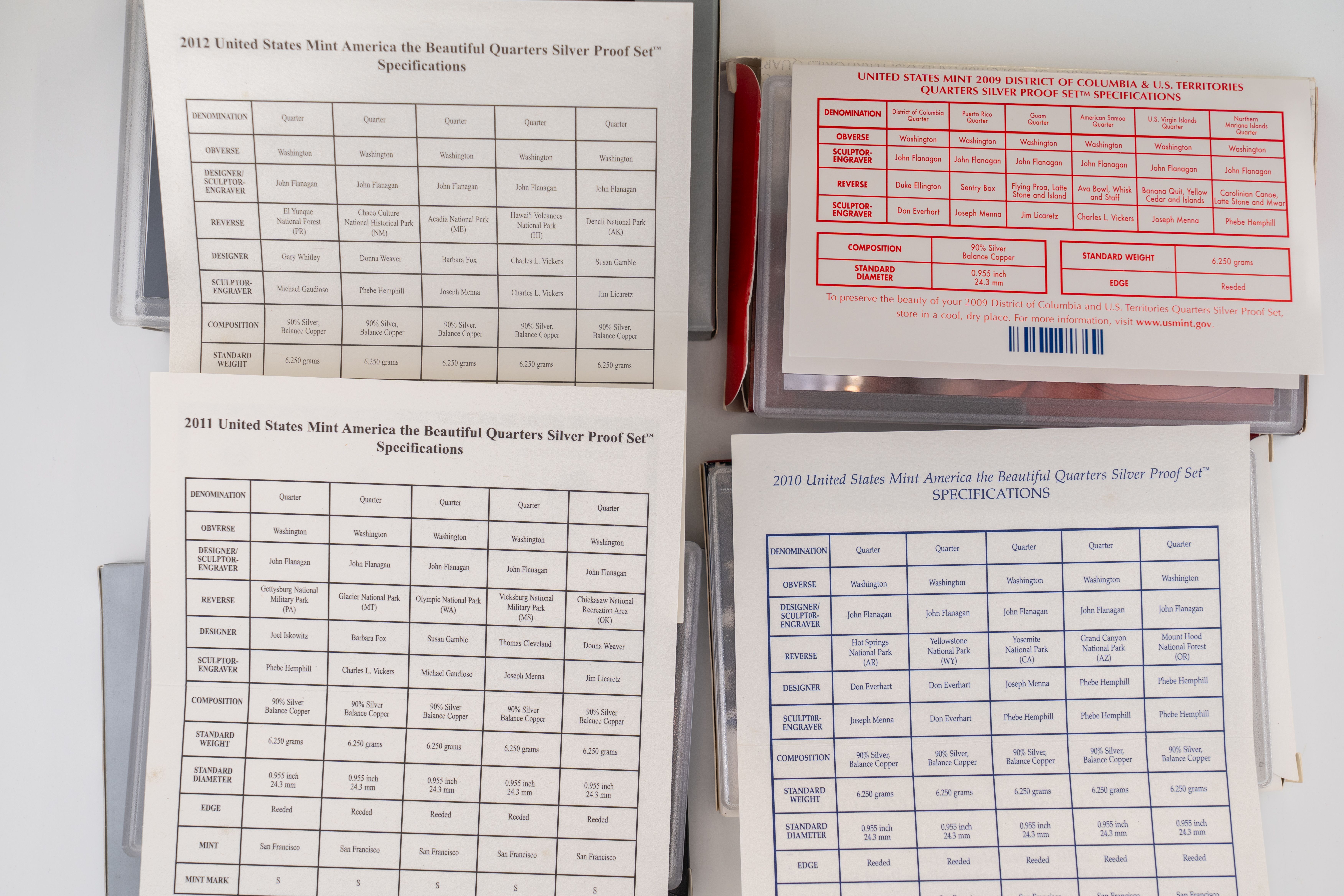 47 (4) Sets (20) 90% Silver Quarters ~ US Mint America The Beautiful SILVER Quarter Proof Sets, 2009-2012